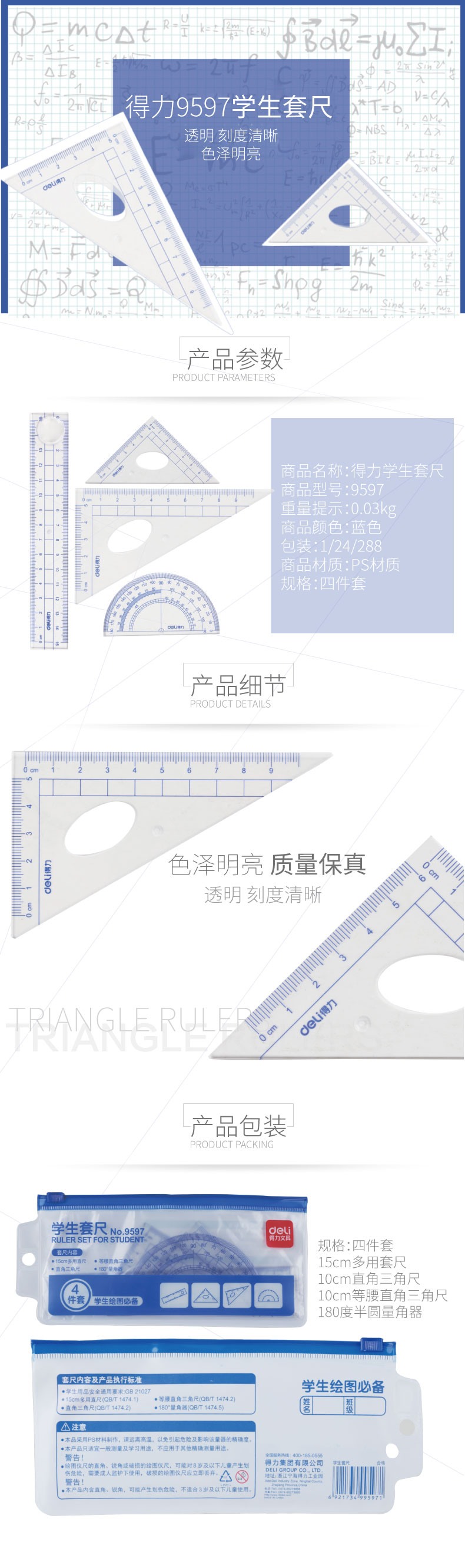 得力9597学生套尺(套)