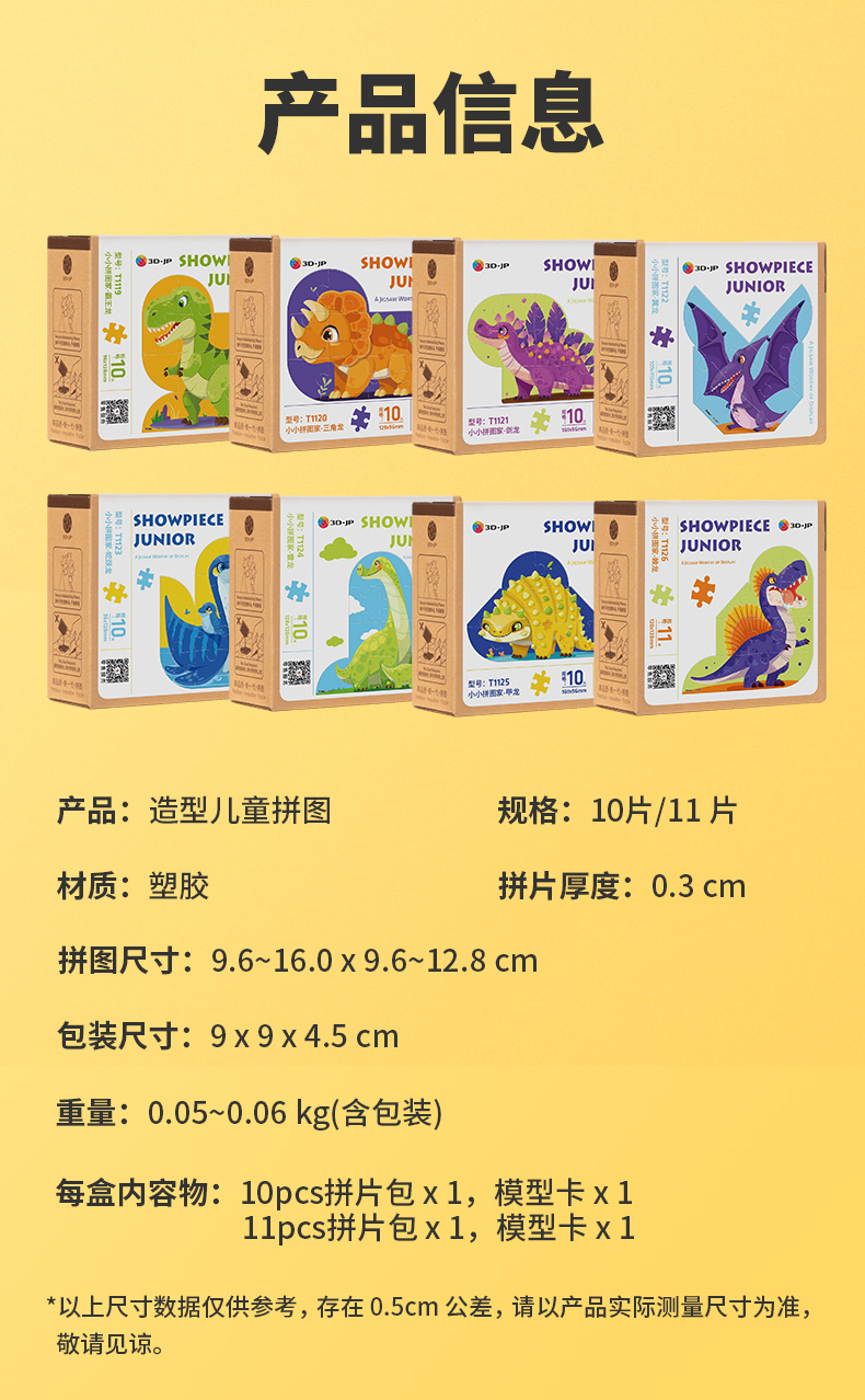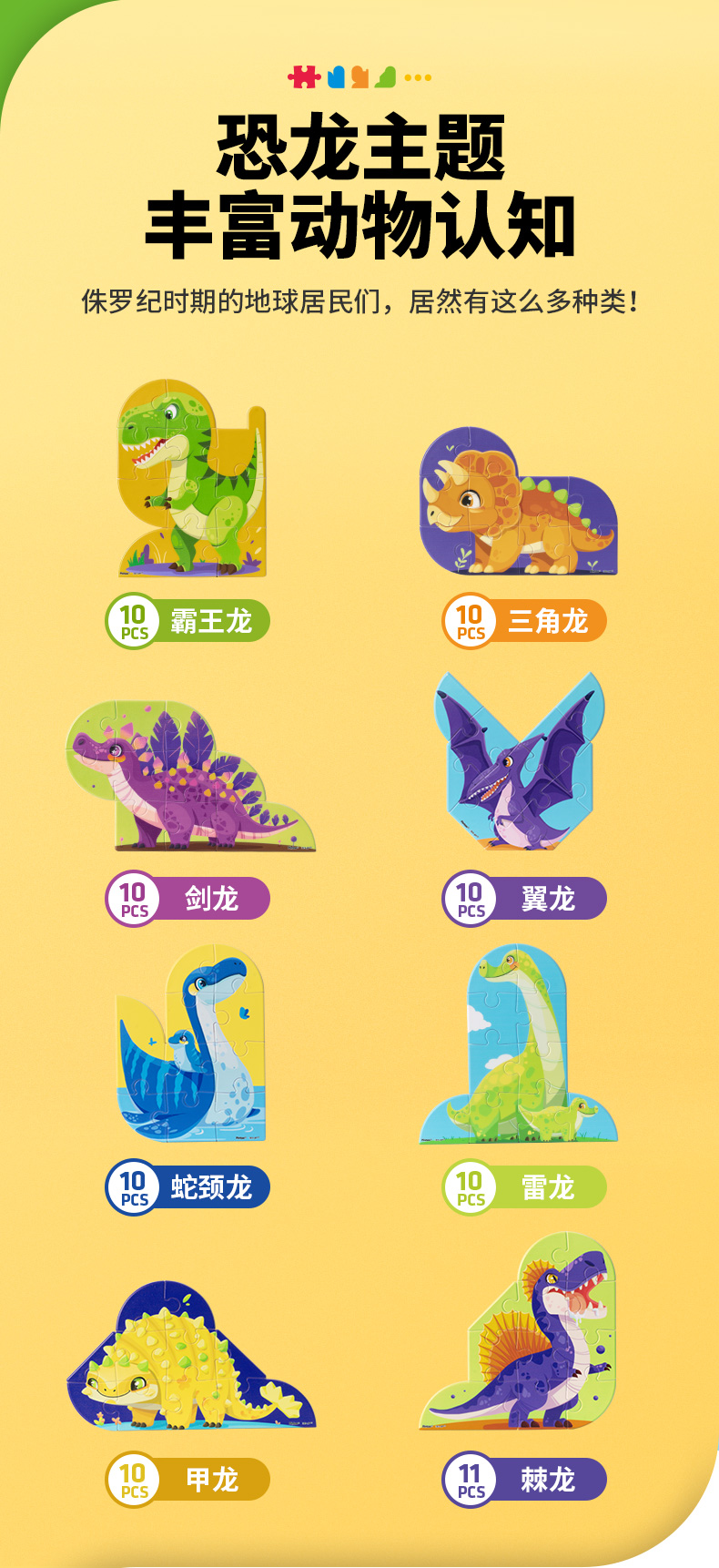 10-11片 单个造型儿童拼图 - 小小拼图家 恐龍系列