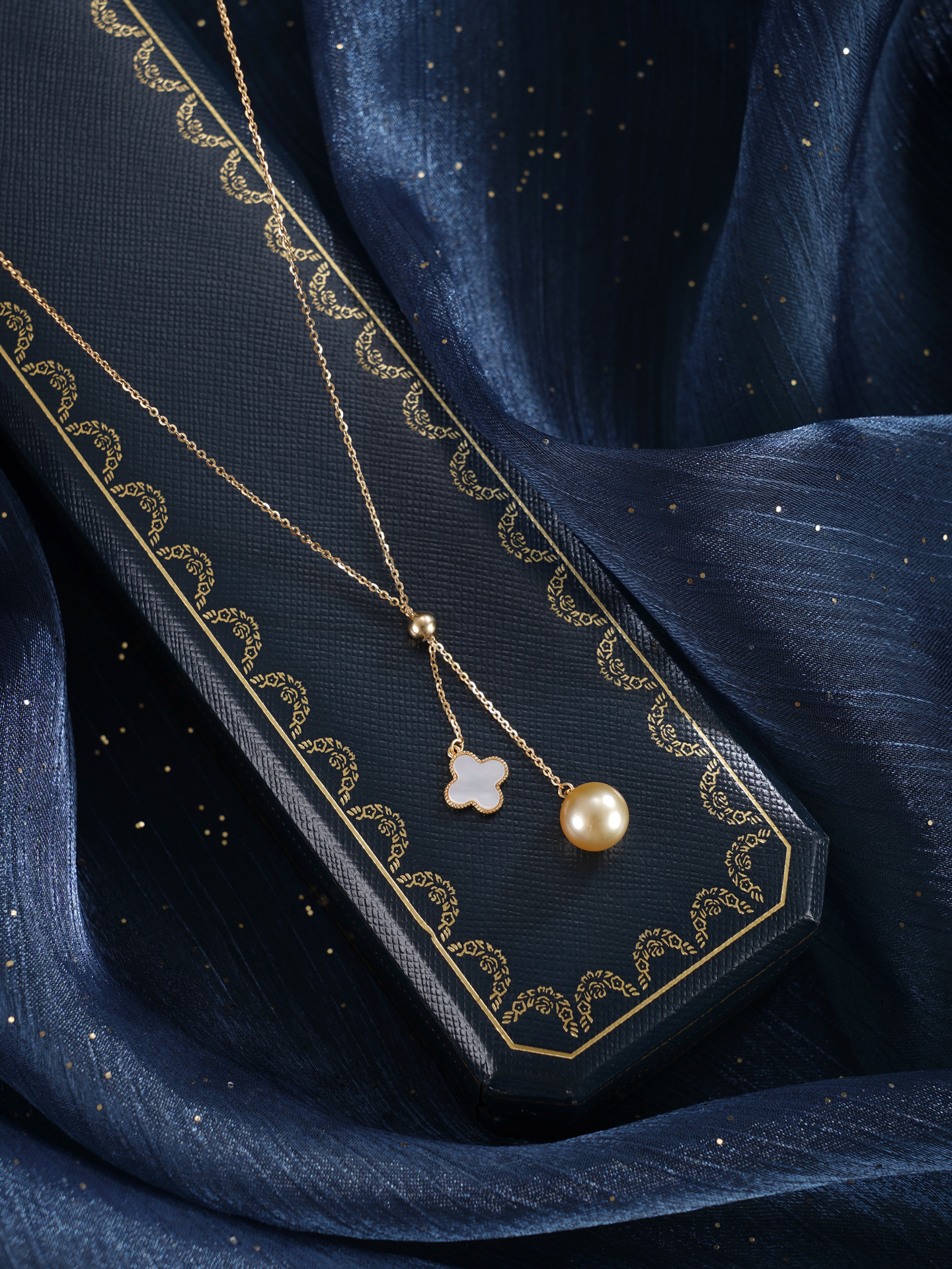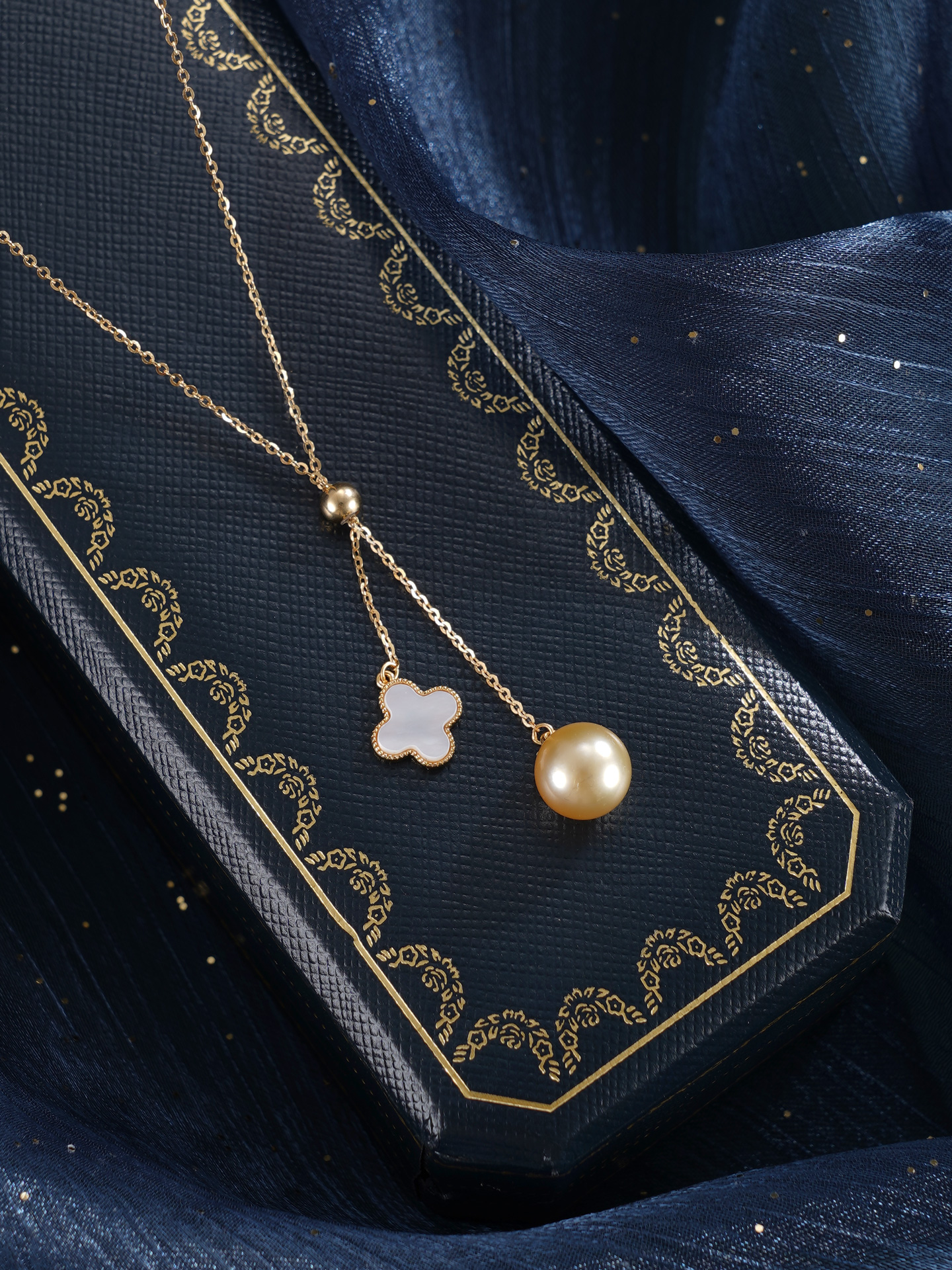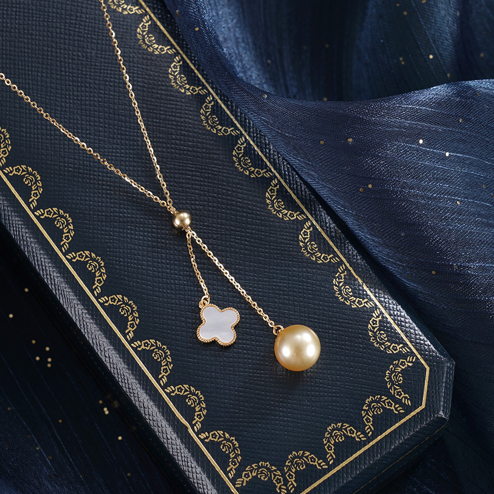 子佩集【四叶情缘】银S925珍珠惜王妃套链【YL0122A】9mm珠镀金吊球四叶草金色珠2601