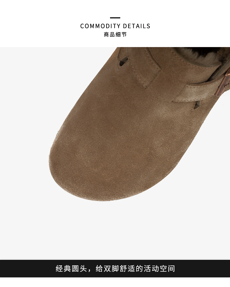 和诚行2025秋冬新款加绒毛毛鞋平底复古勃肯男式休闲鞋0551272