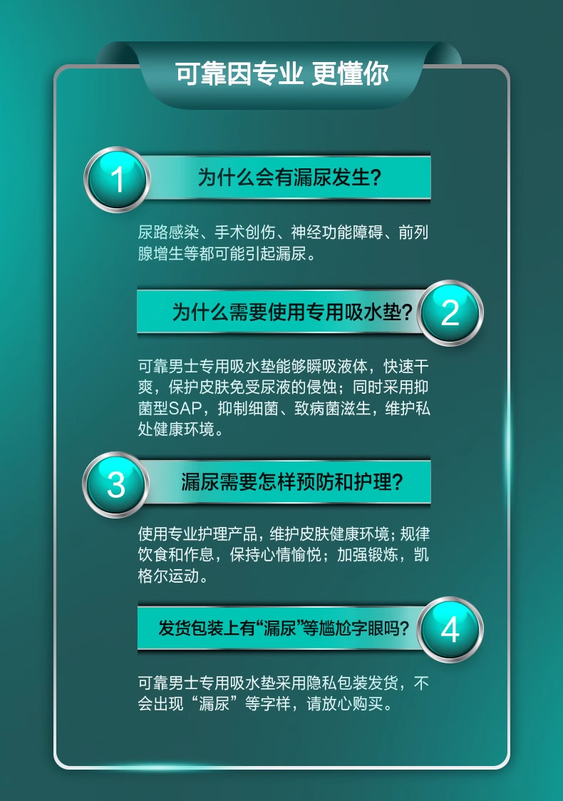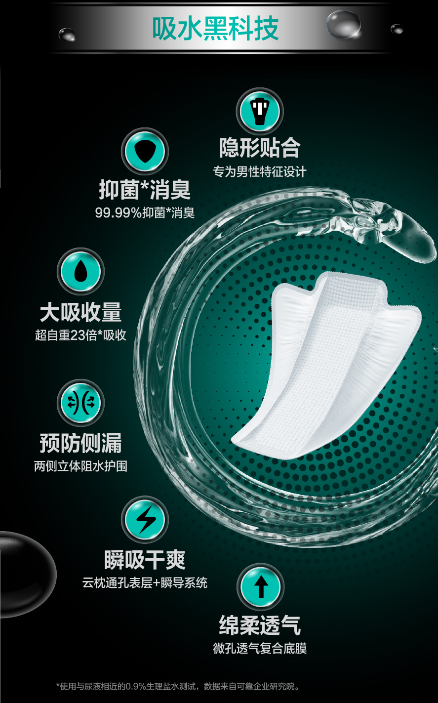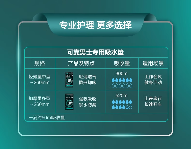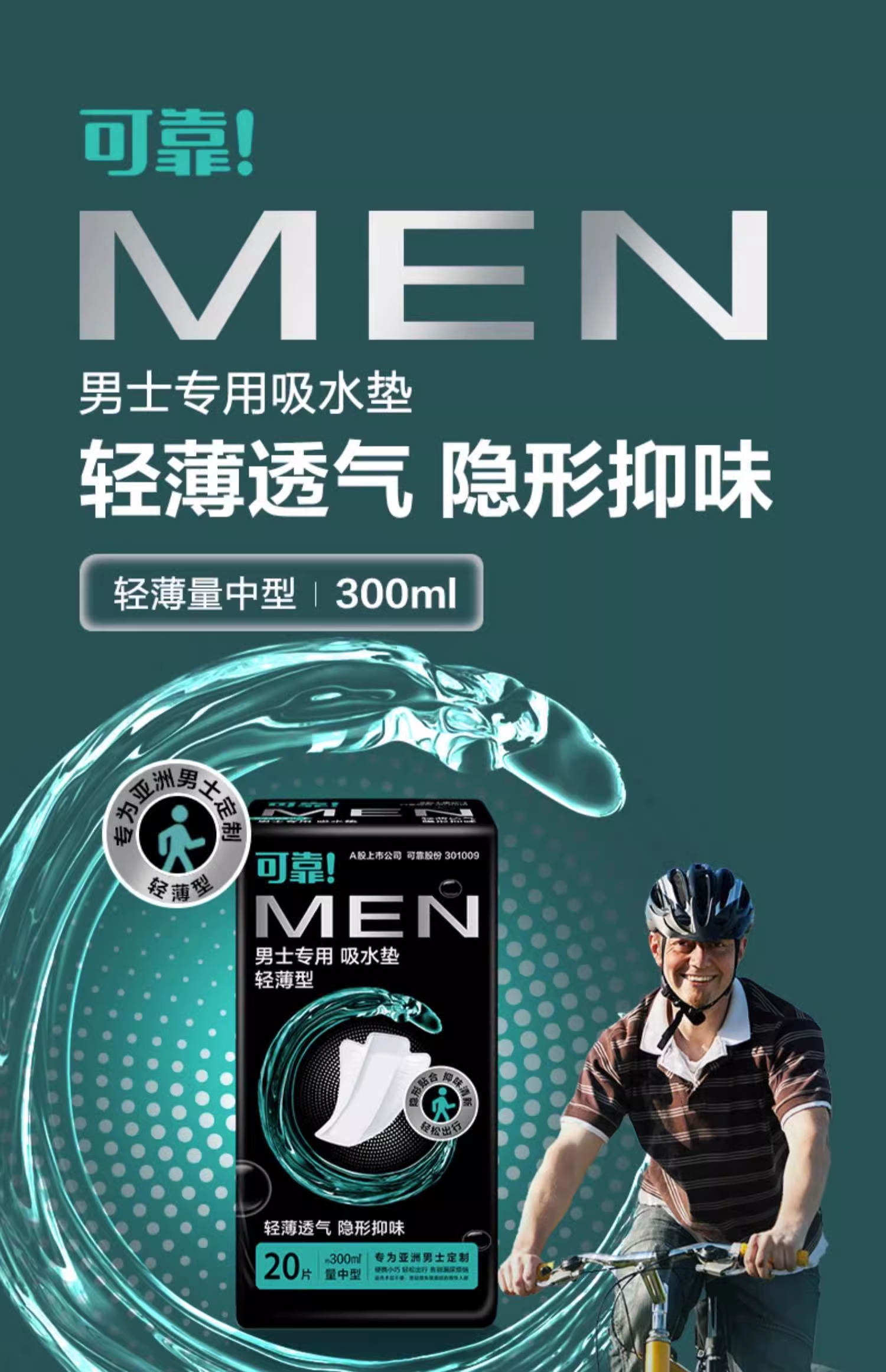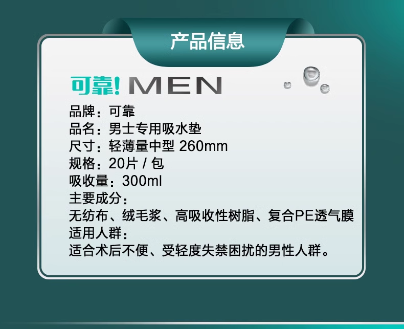 可靠 男士吸水垫男用卫生巾 轻薄量中型 260mm 20片【单包】