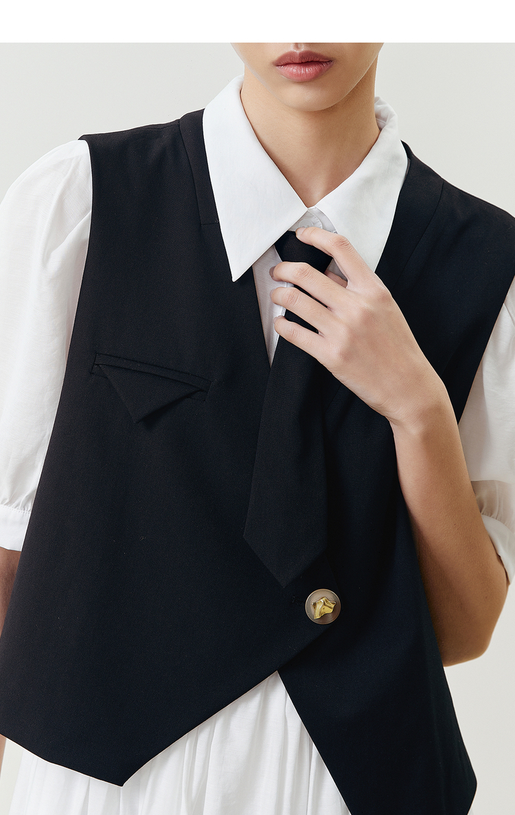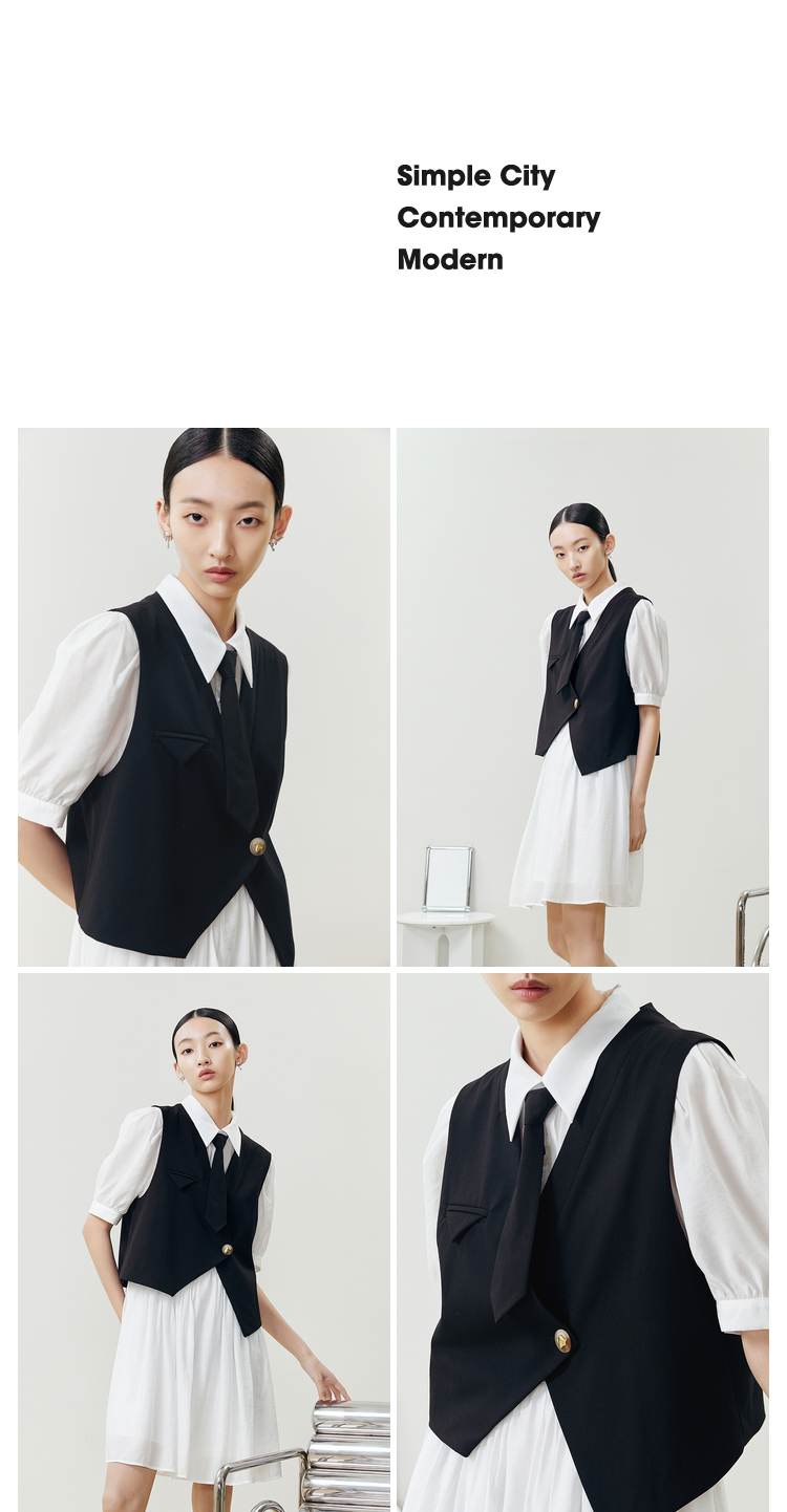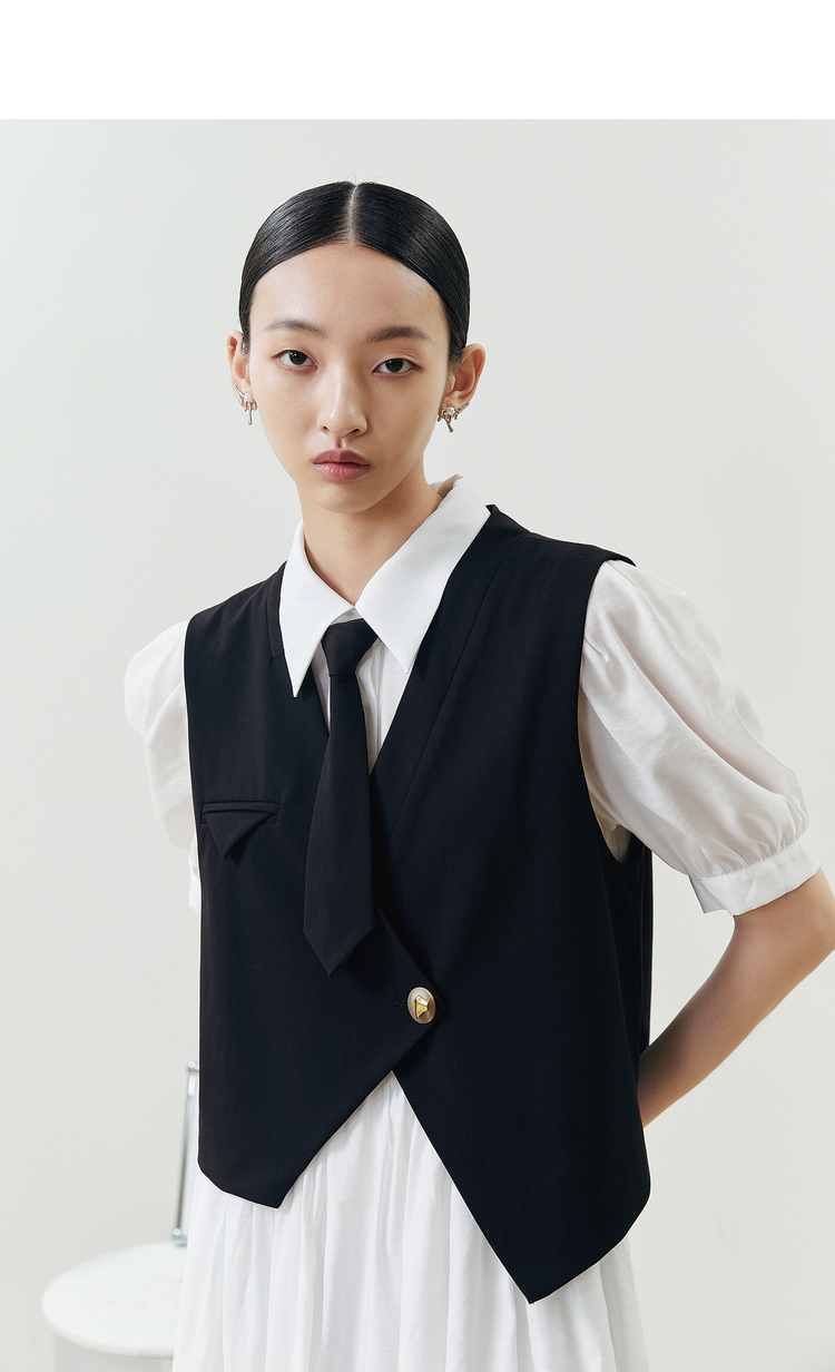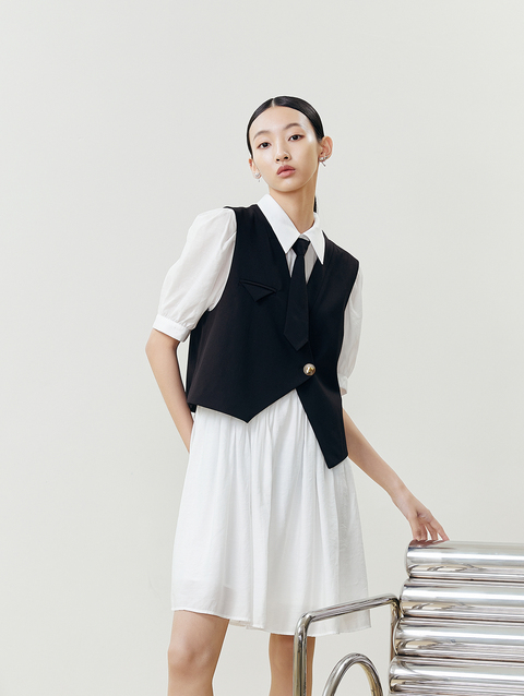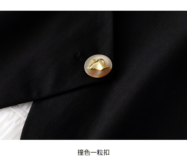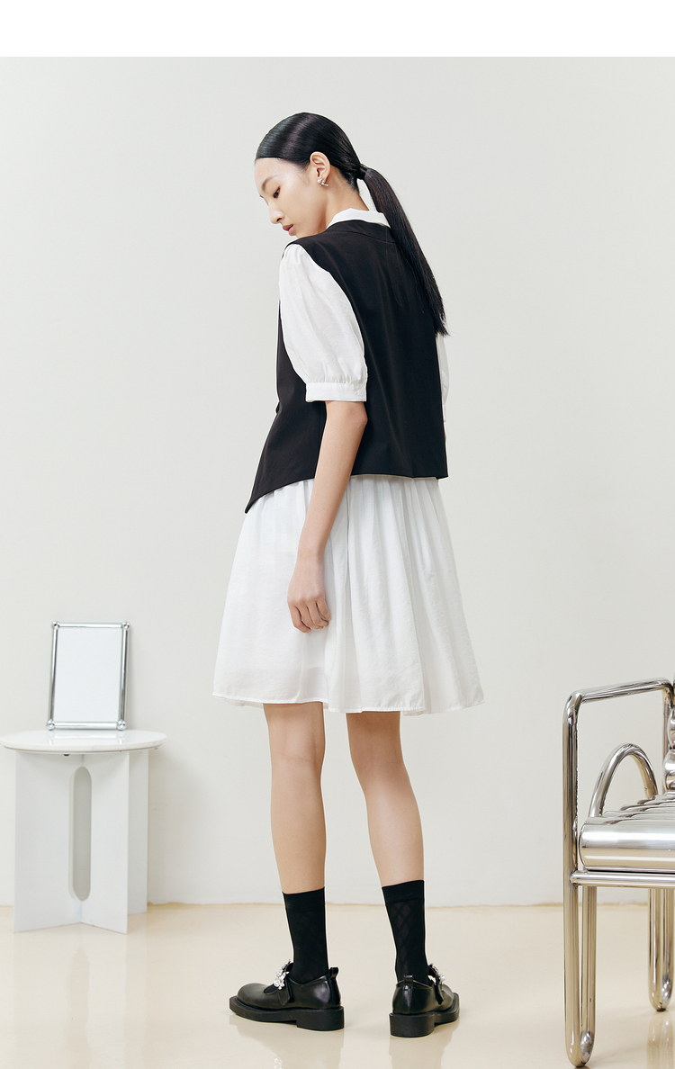 NEELLY纳俪假两件连衣裙女可脱卸领带衬衫式A字裙泡泡袖中长款N22041Y01018