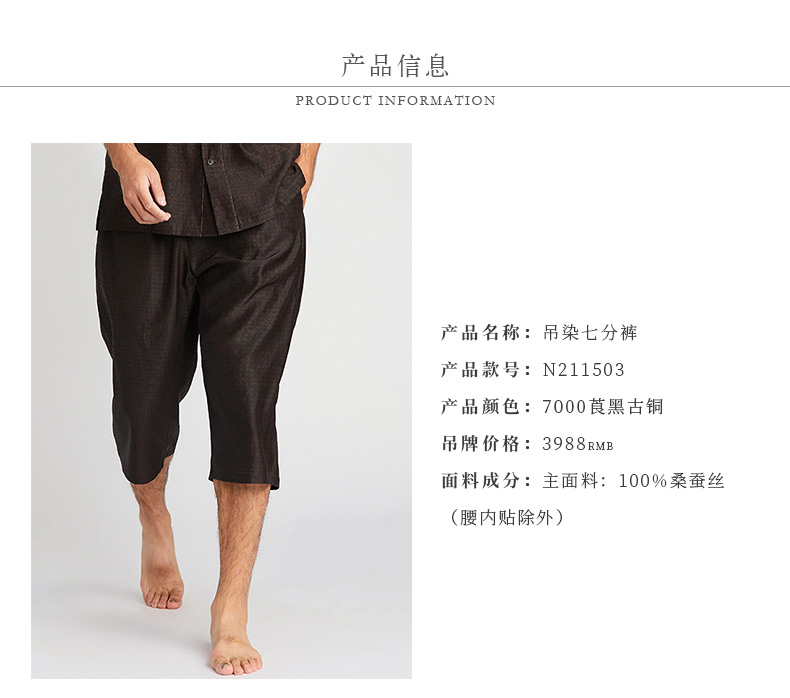 TANGY Collection/天意精品2021年春夏新品素绉缎莨七分休闲裤男