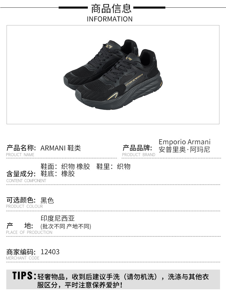 【超惠秒】Armani EA7 男士软弹轻便百搭运动休闲鞋12403