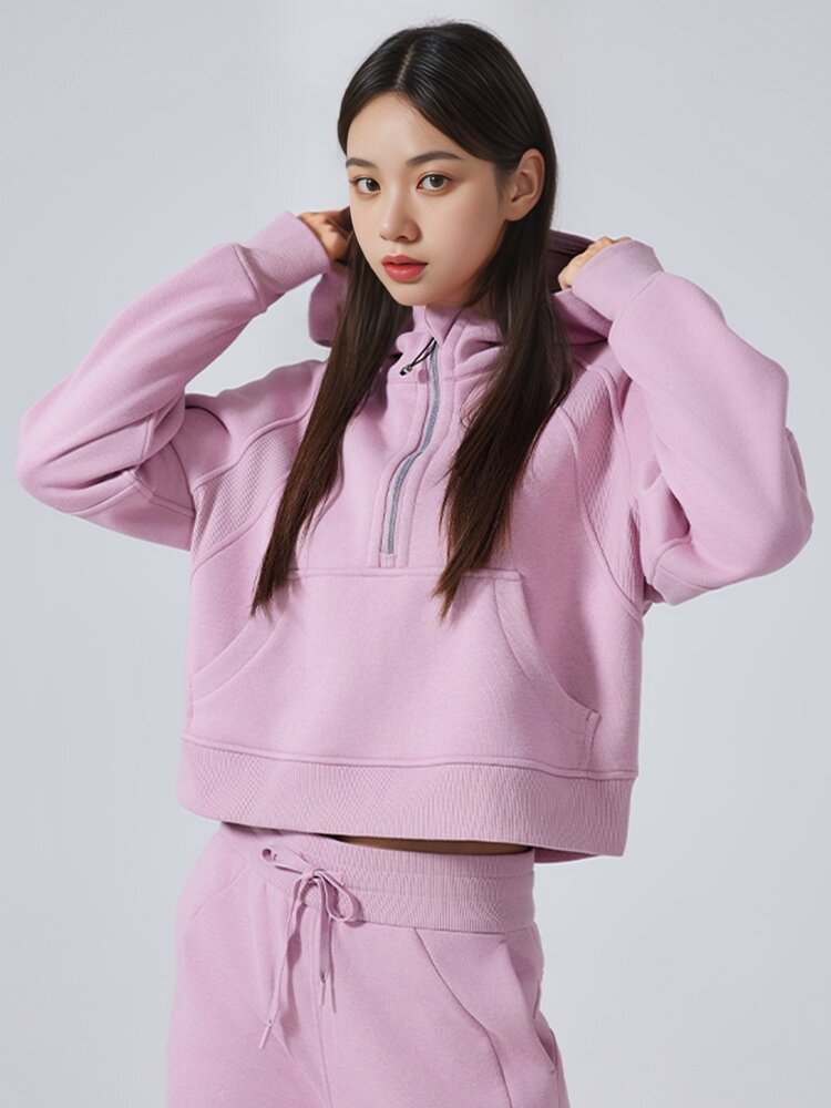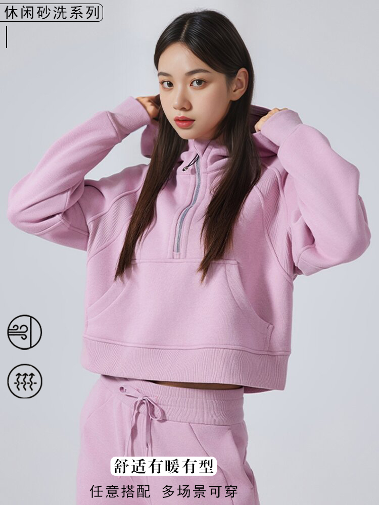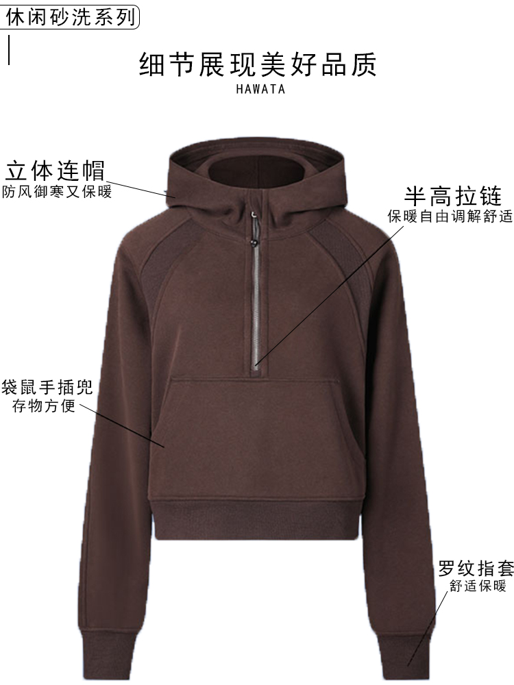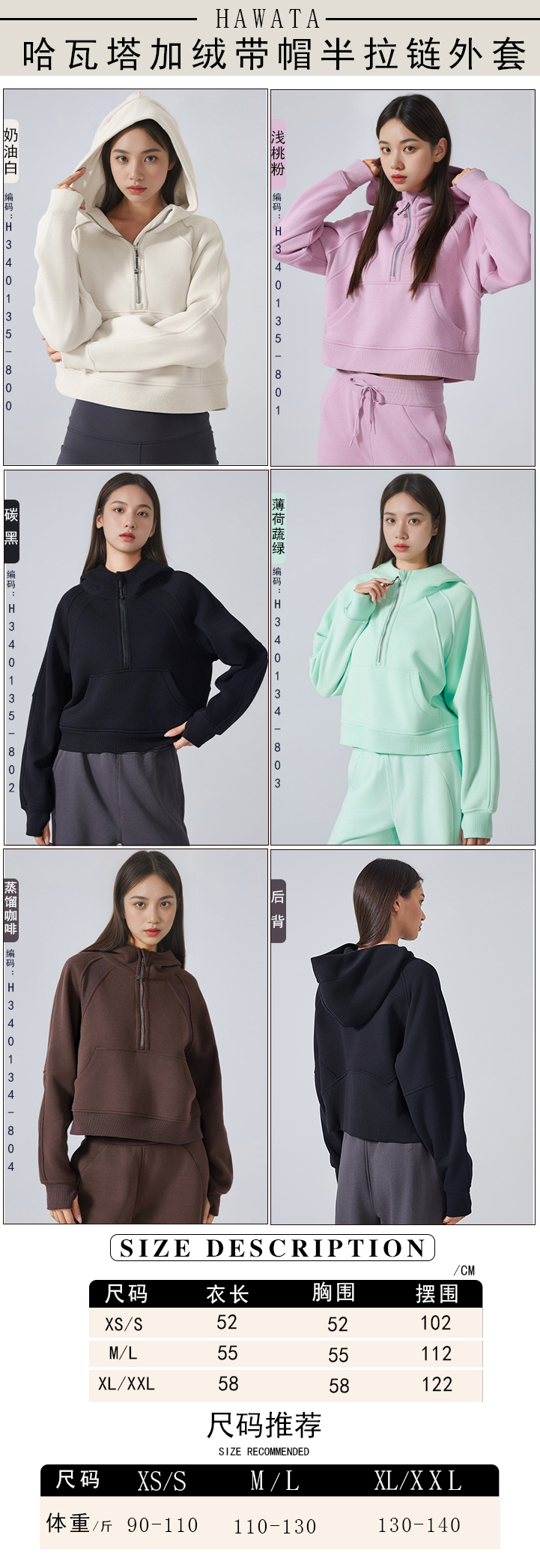 哈瓦塔加绒保暖半拉链连帽运动外套H340183