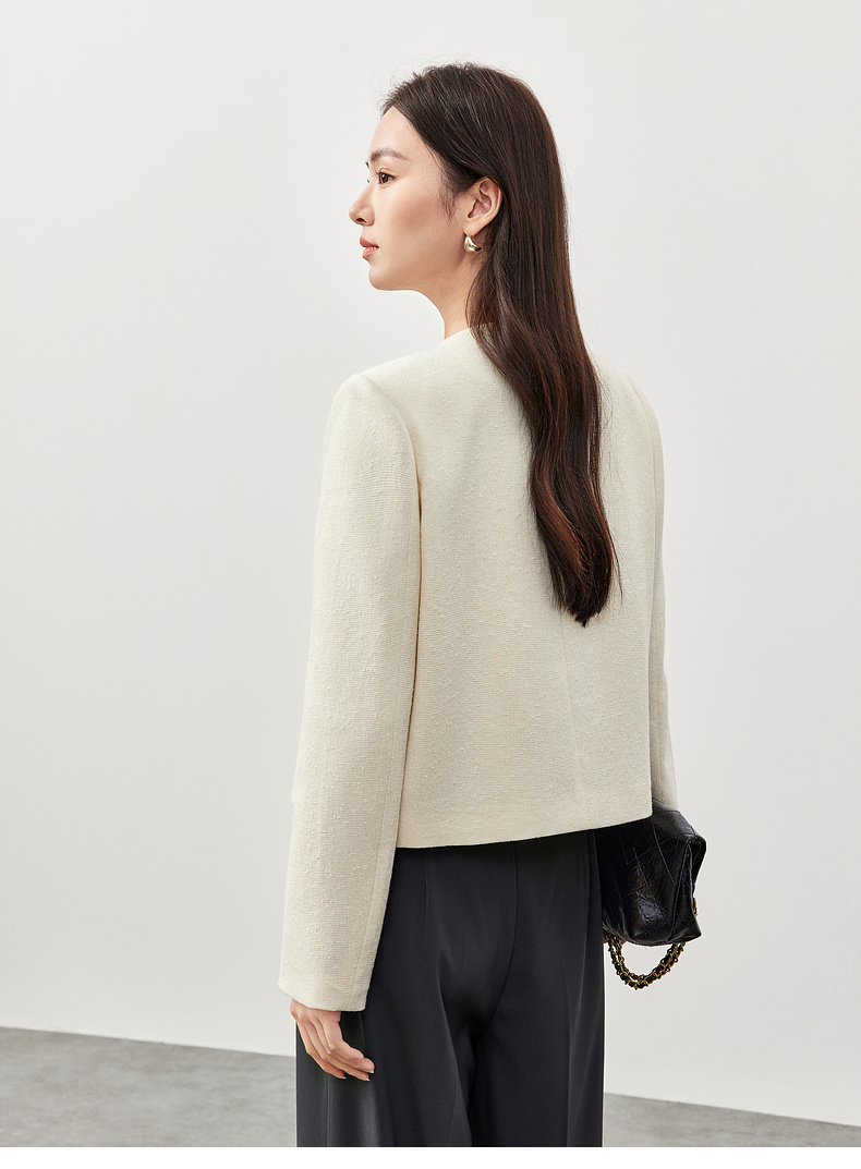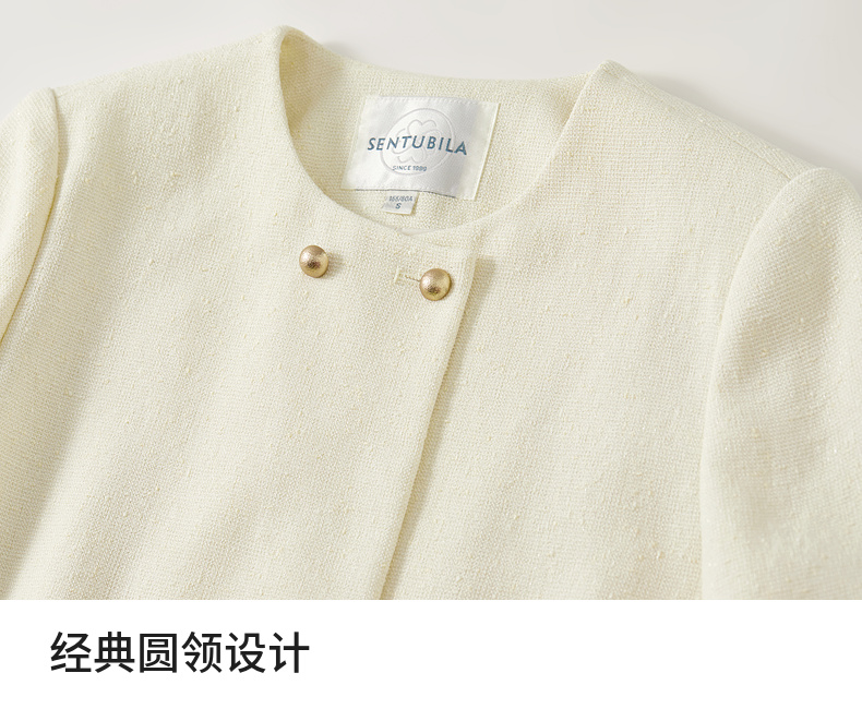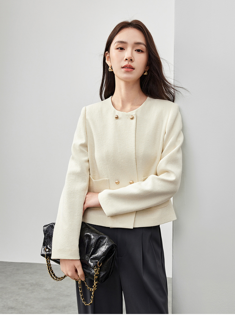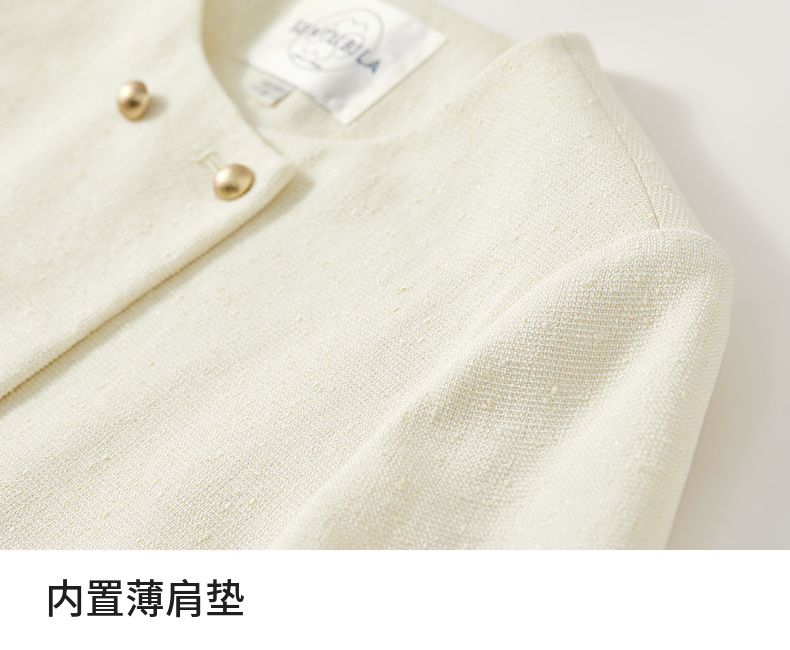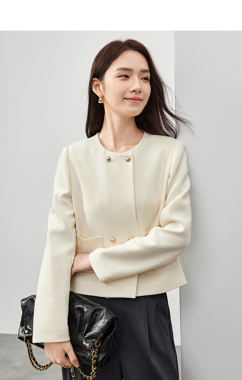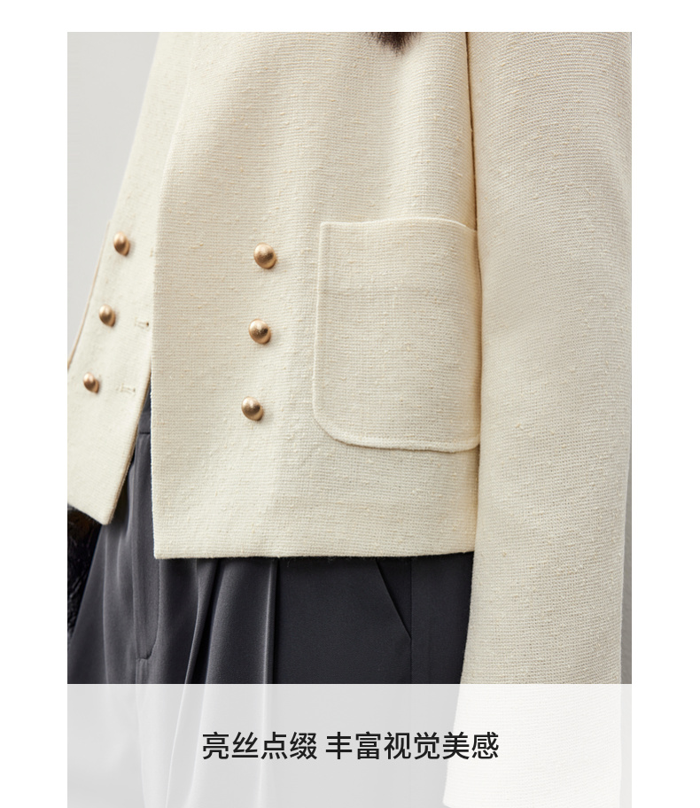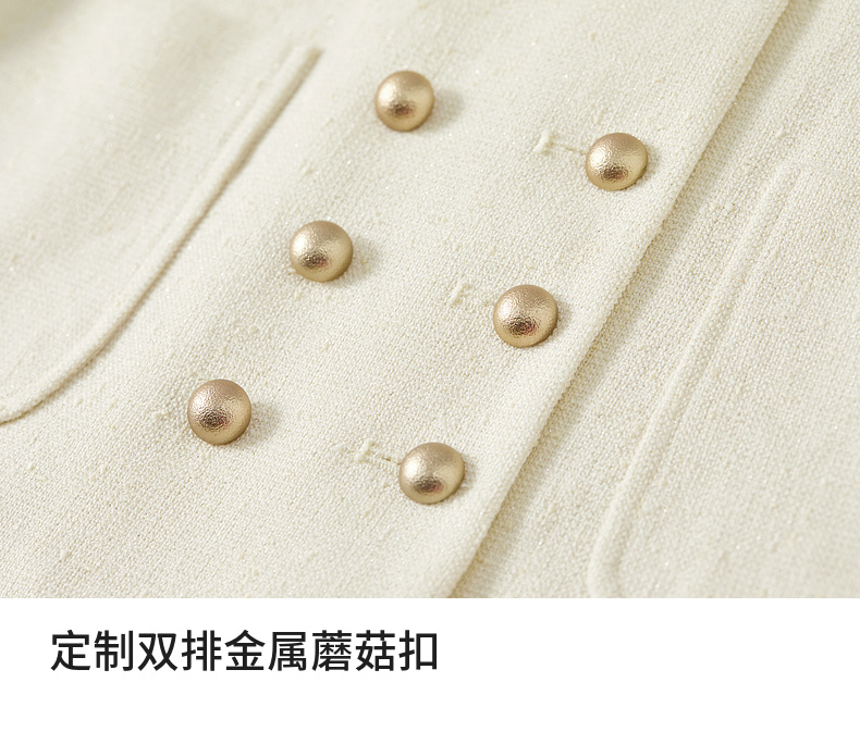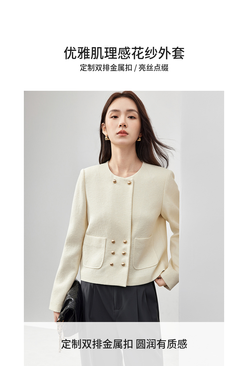 【内购】亮丝花纱聚会优雅气质圆领定制双排金属扣垫肩长袖肌理感外套-151W58655