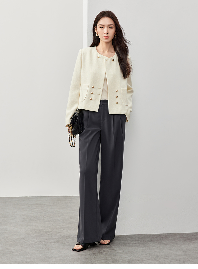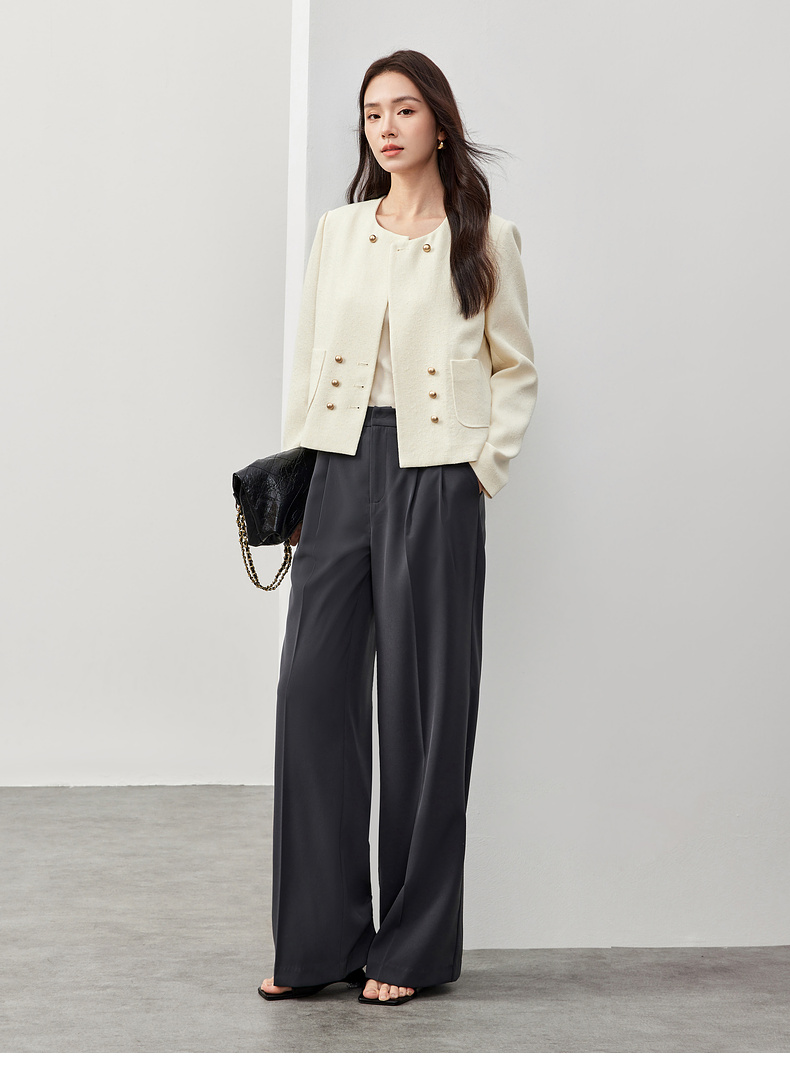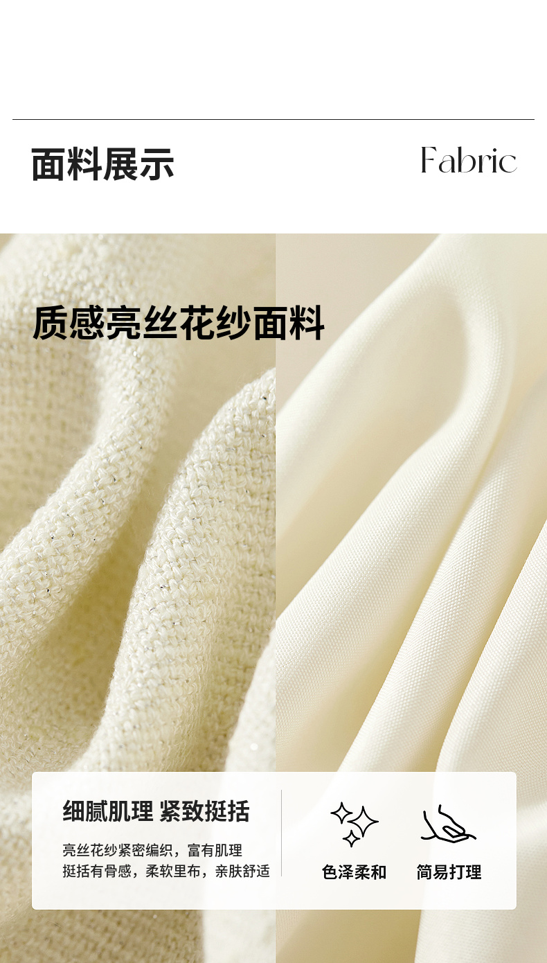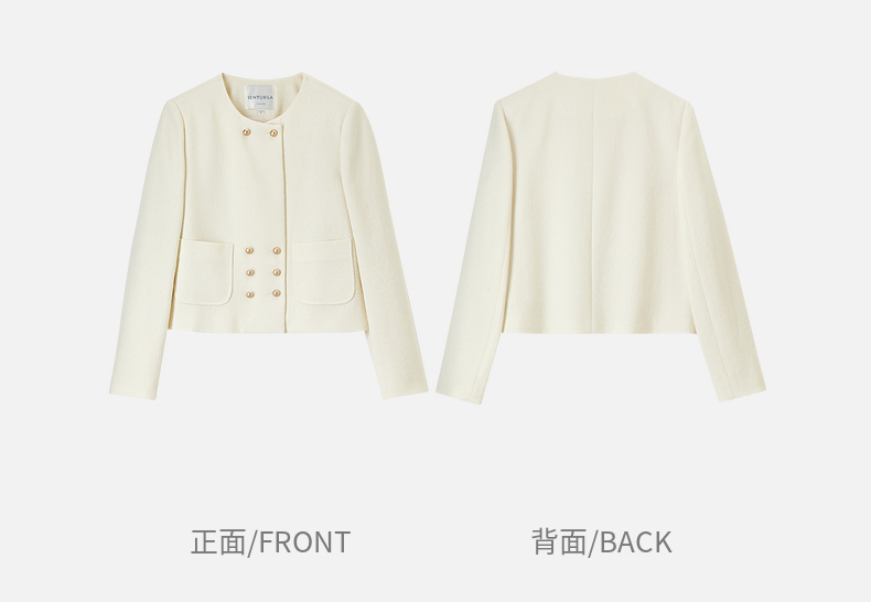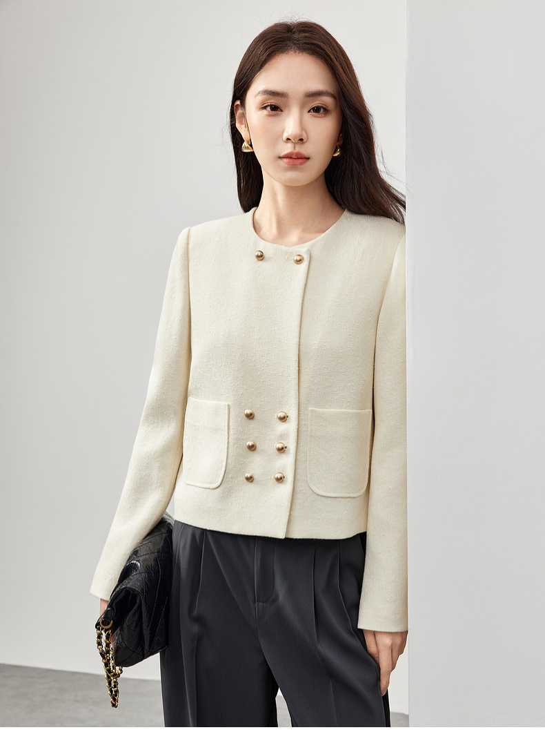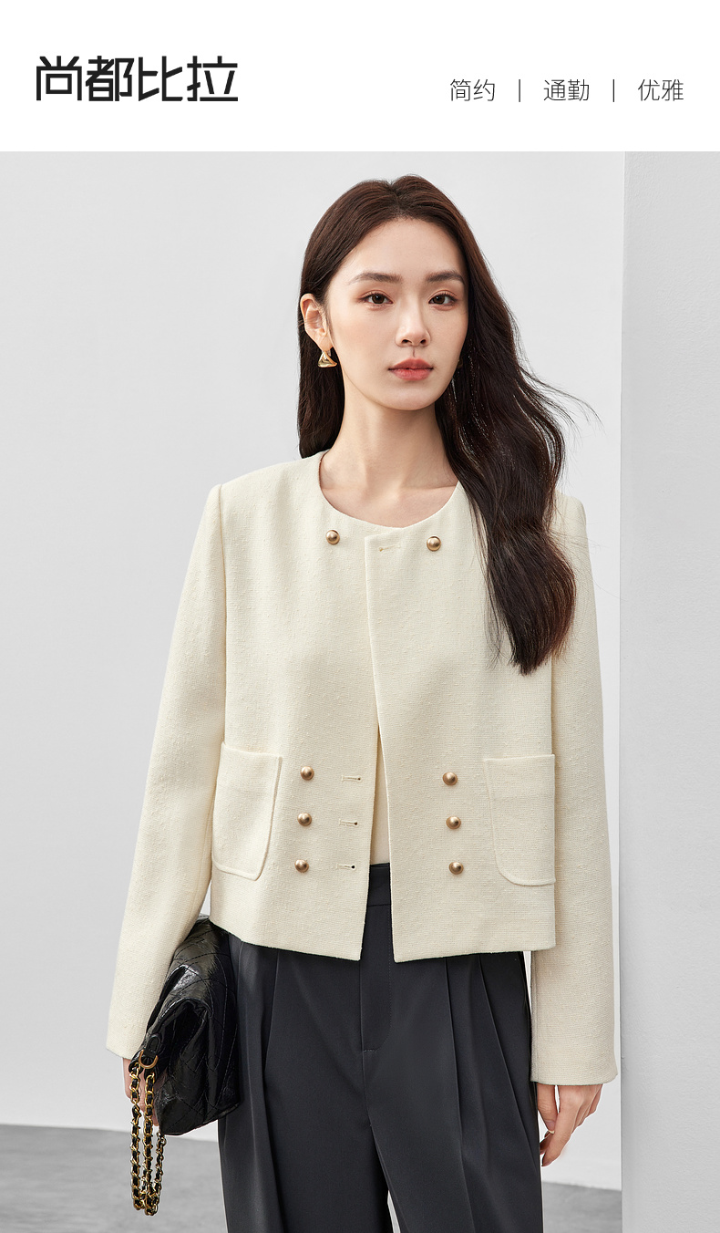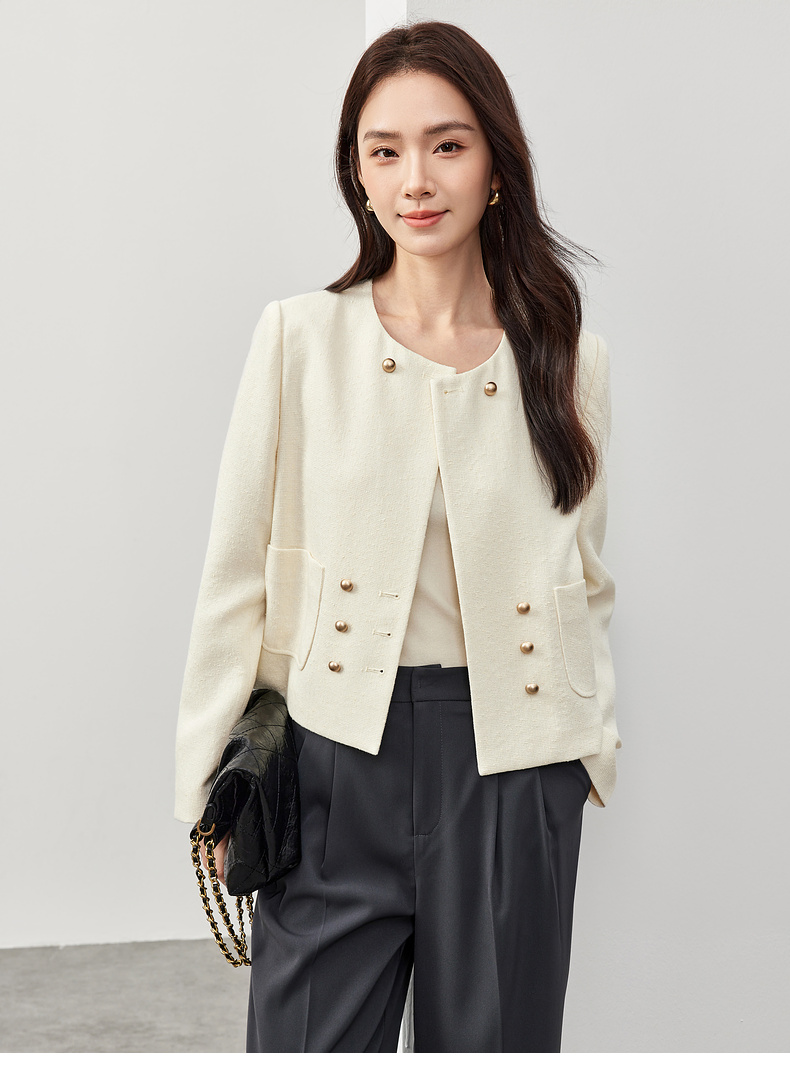 【内购】亮丝花纱聚会优雅气质圆领定制双排金属扣垫肩长袖肌理感外套-151W58655