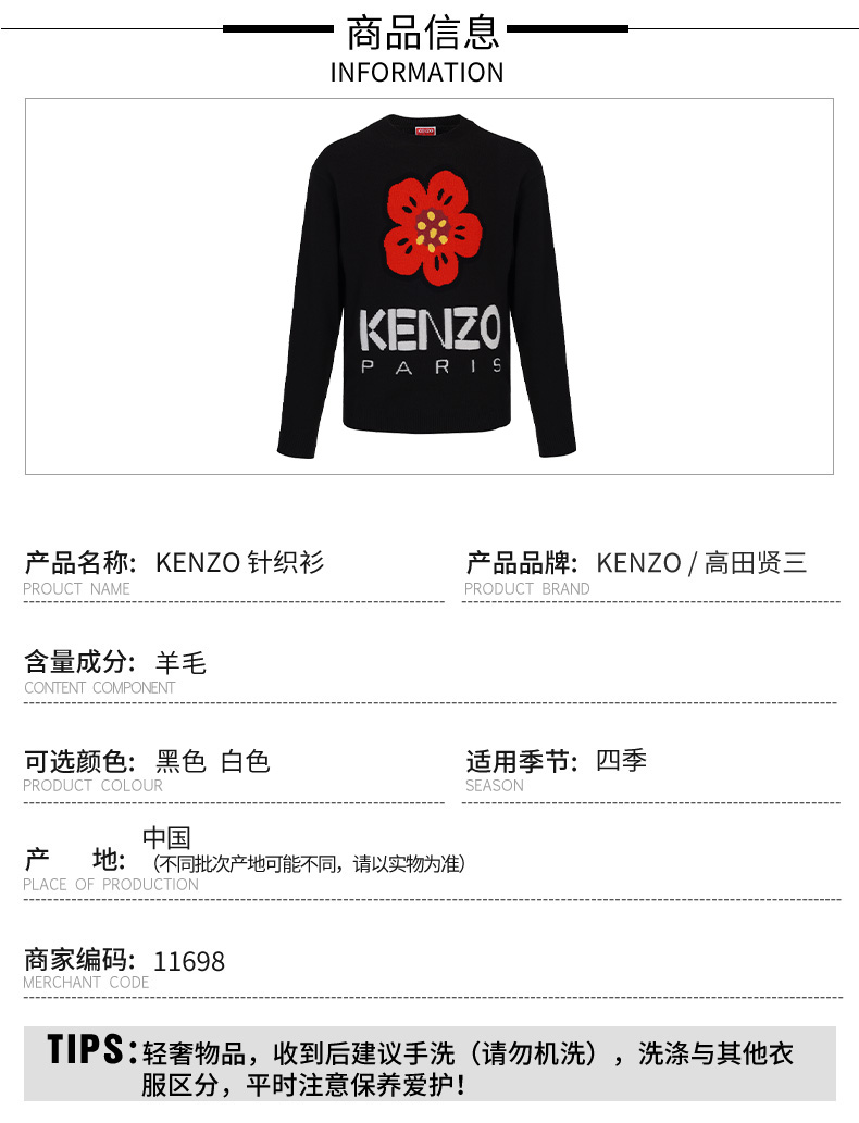 【超惠秒】Kenzo 高田贤三 男女通款 全羊毛刺绣海棠花logo百搭针织衫/毛衣/外套11698