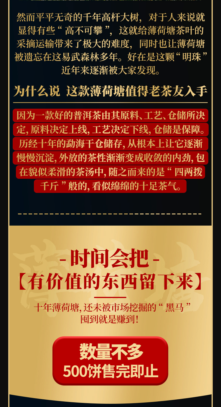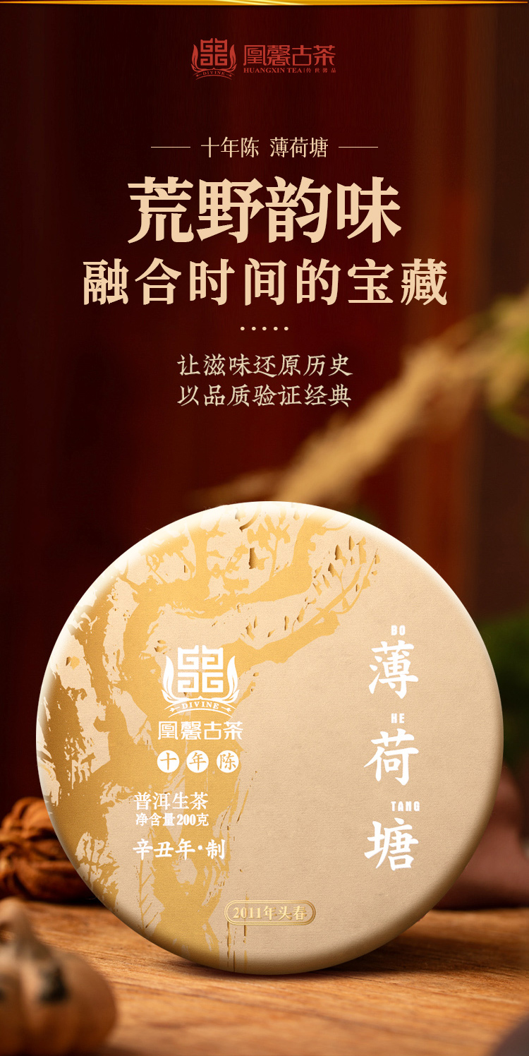 凰馨古茶【薄荷塘·十年陈】2021年普洱茶生茶云南易武饼茶200g