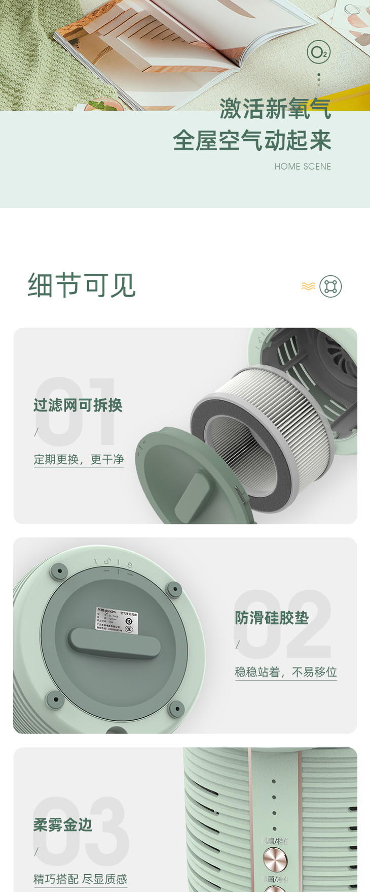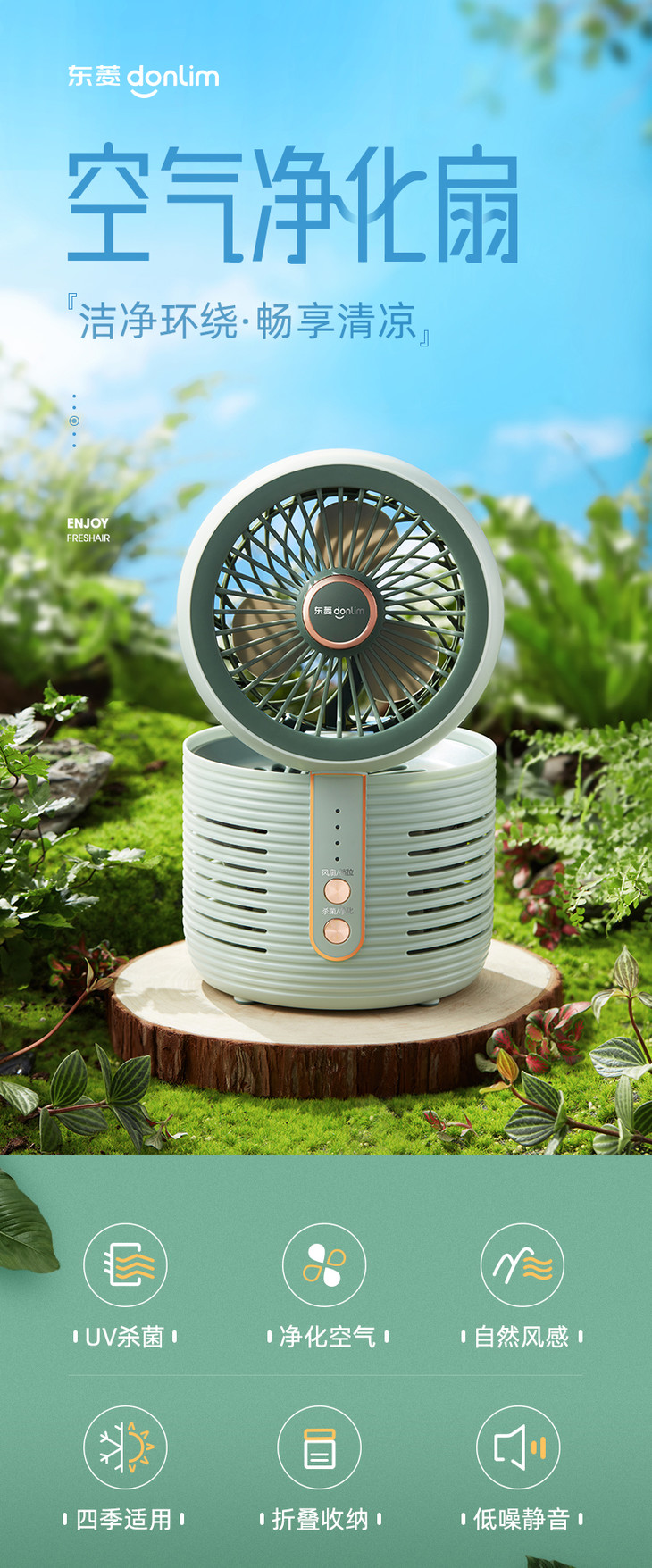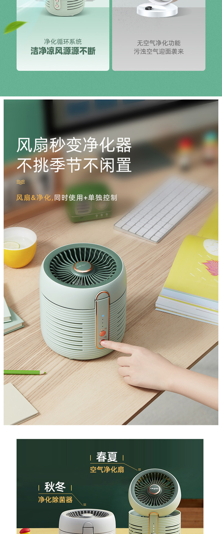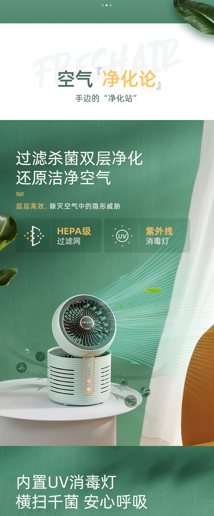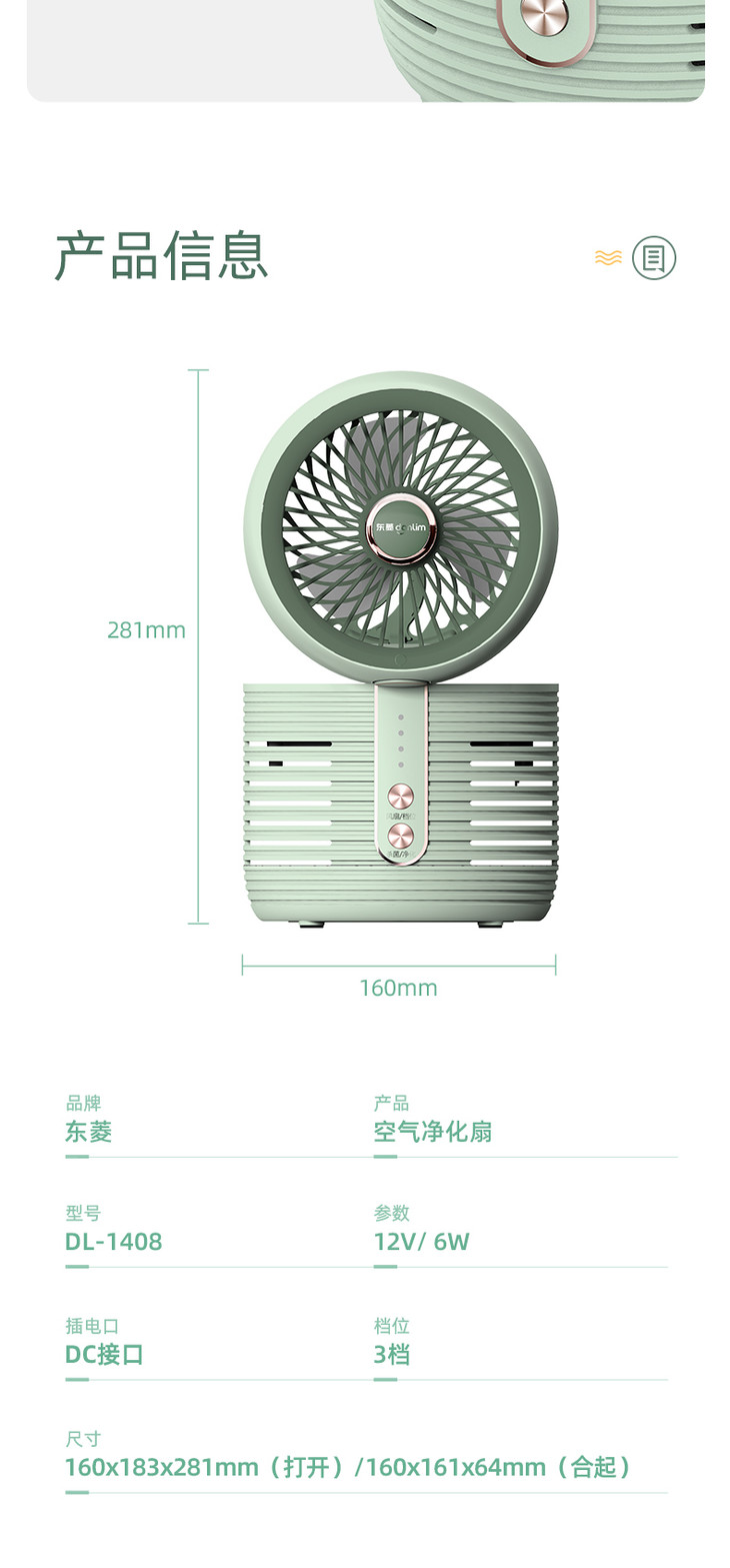【东菱】东菱空气净化扇DL-1408家用台式静音电风扇小型空气循环扇空气净化器