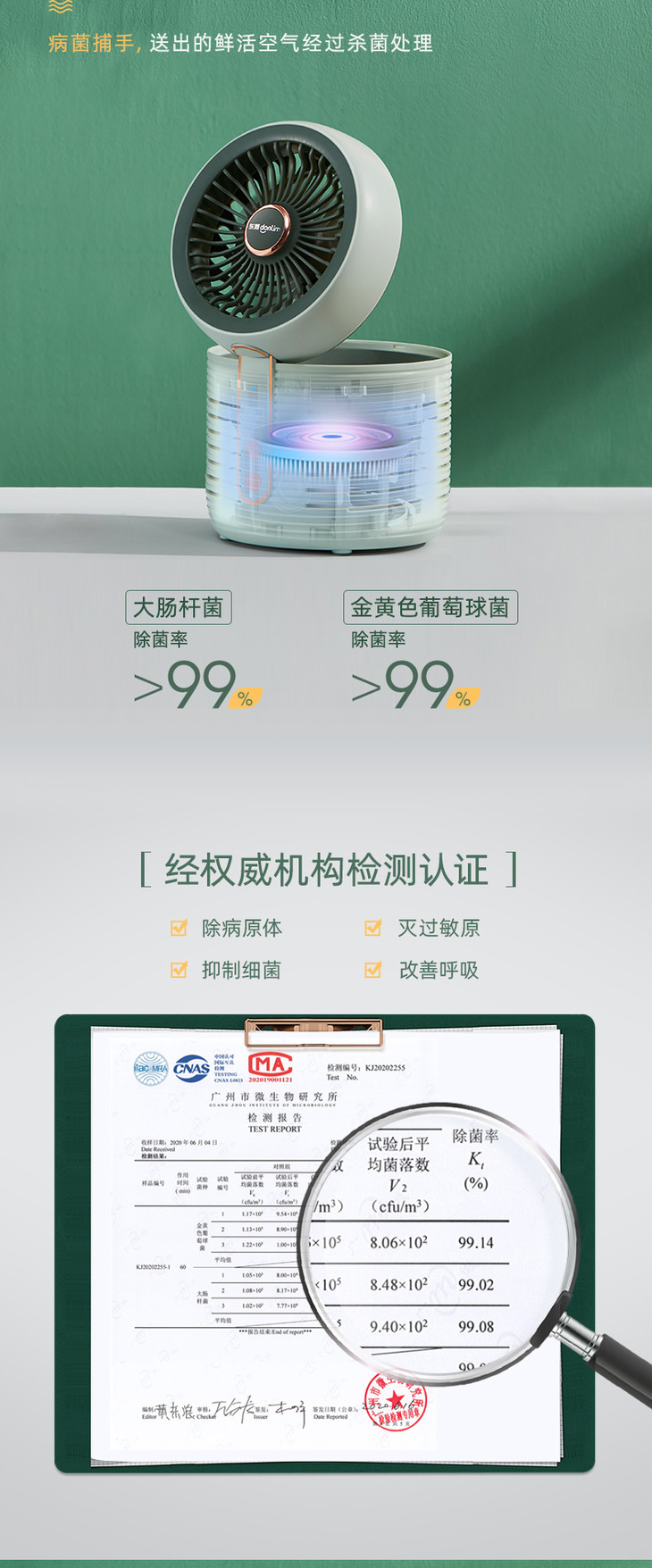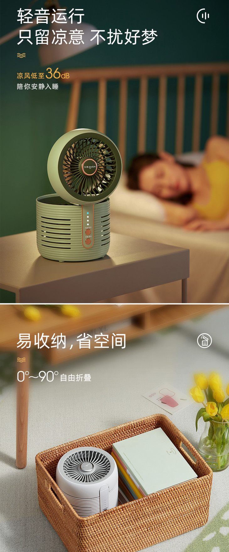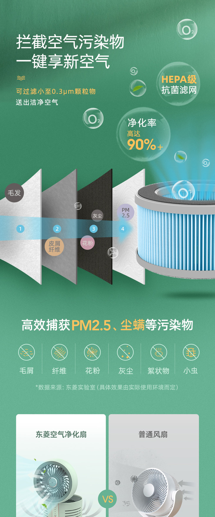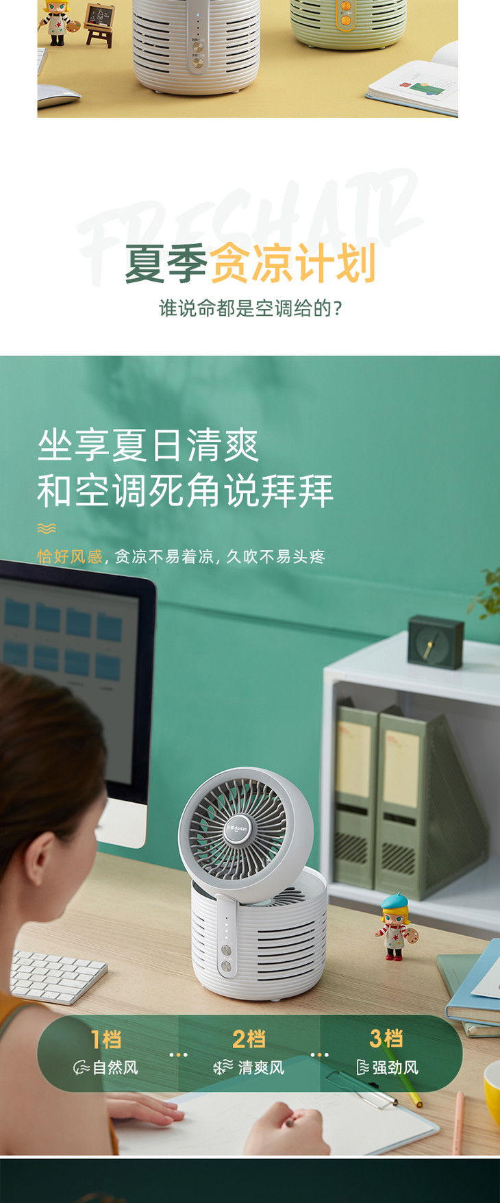 【东菱】东菱空气净化扇DL-1408家用台式静音电风扇小型空气循环扇空气净化器