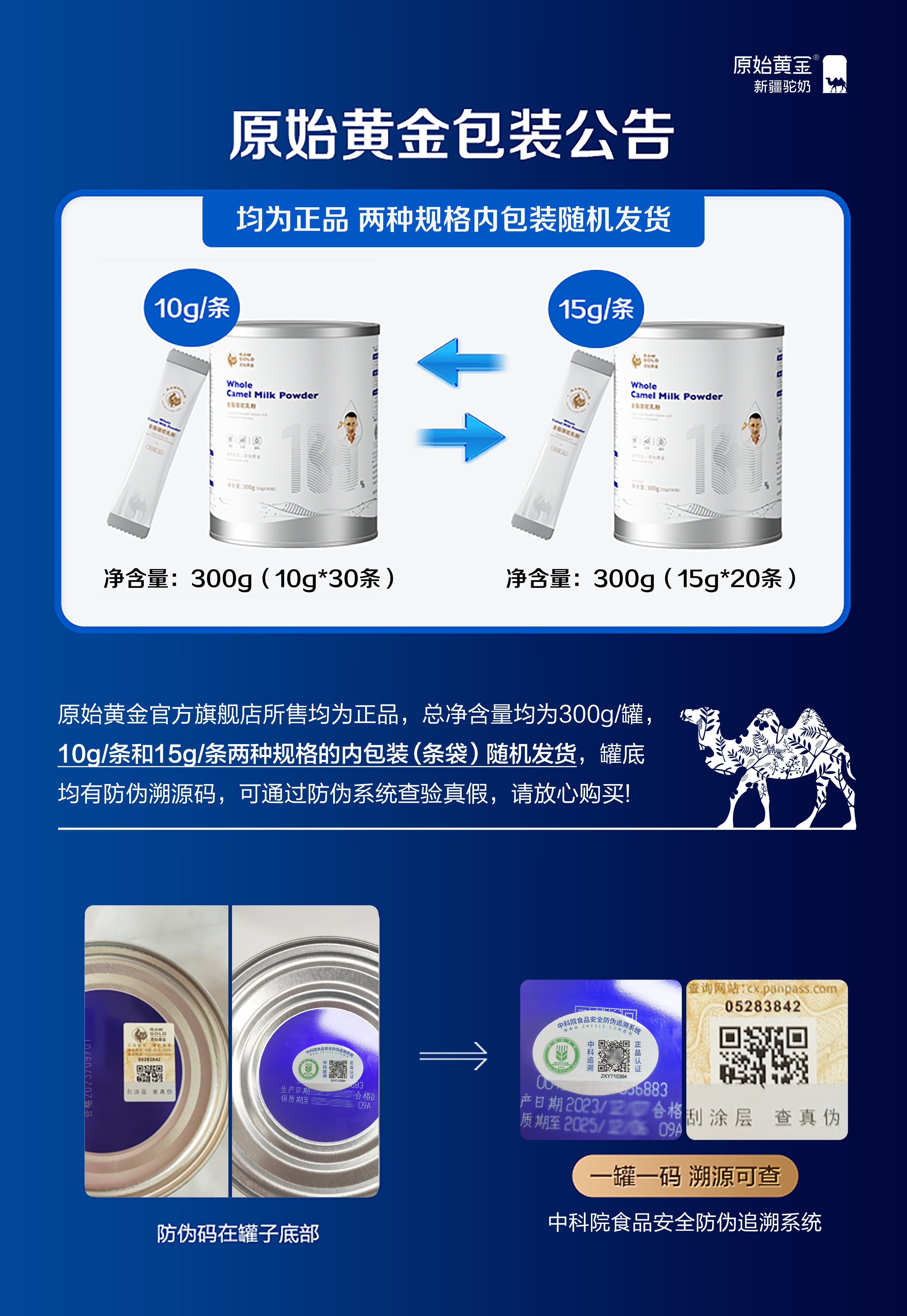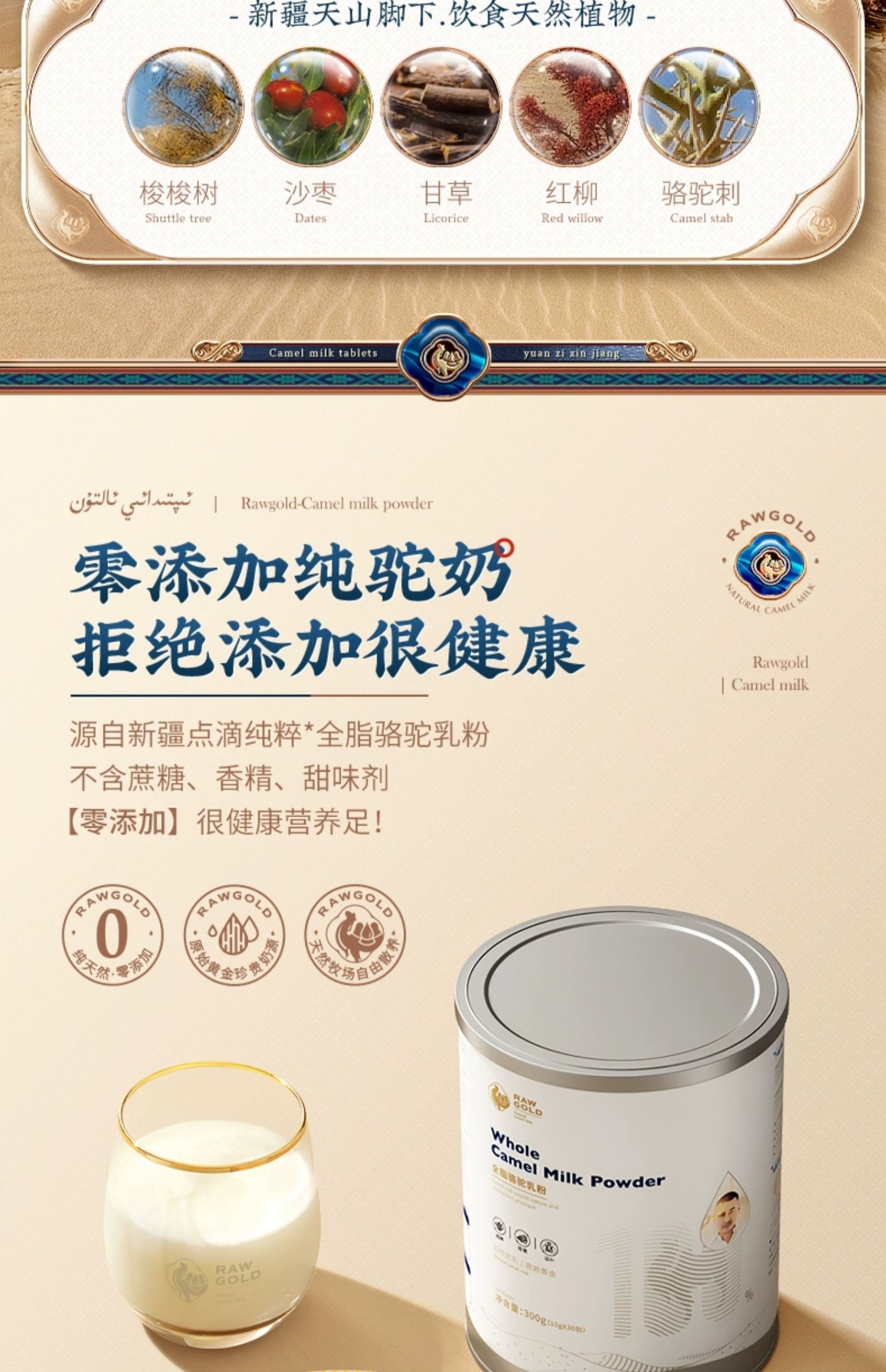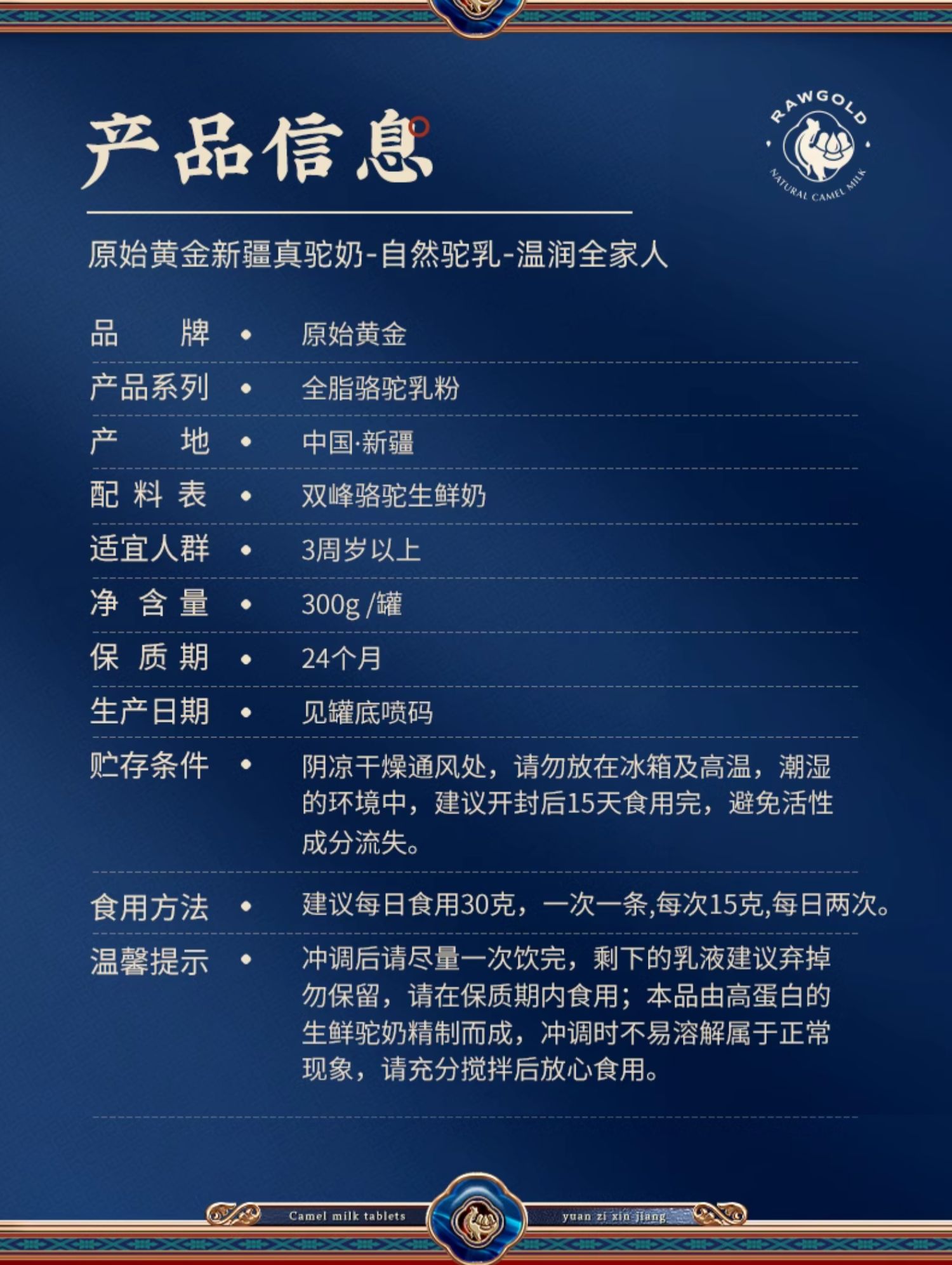 原始黄金纯驼奶粉正宗新鲜全脂骆驼奶粉300g*12罐 TZ