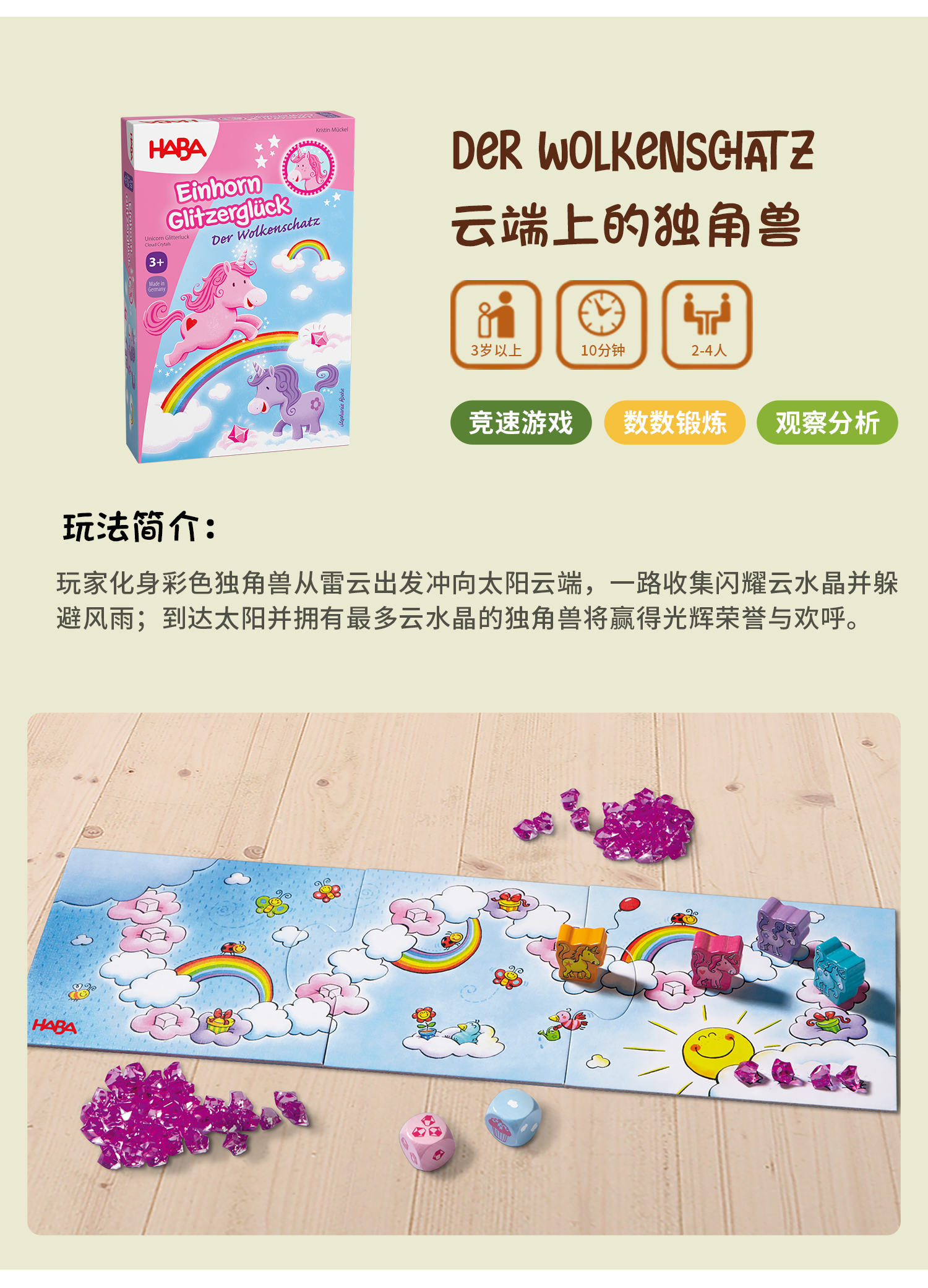 HABA 云端上的独角兽 桌游 适合3岁 锻炼数数 竞速 德国品牌-2012230001