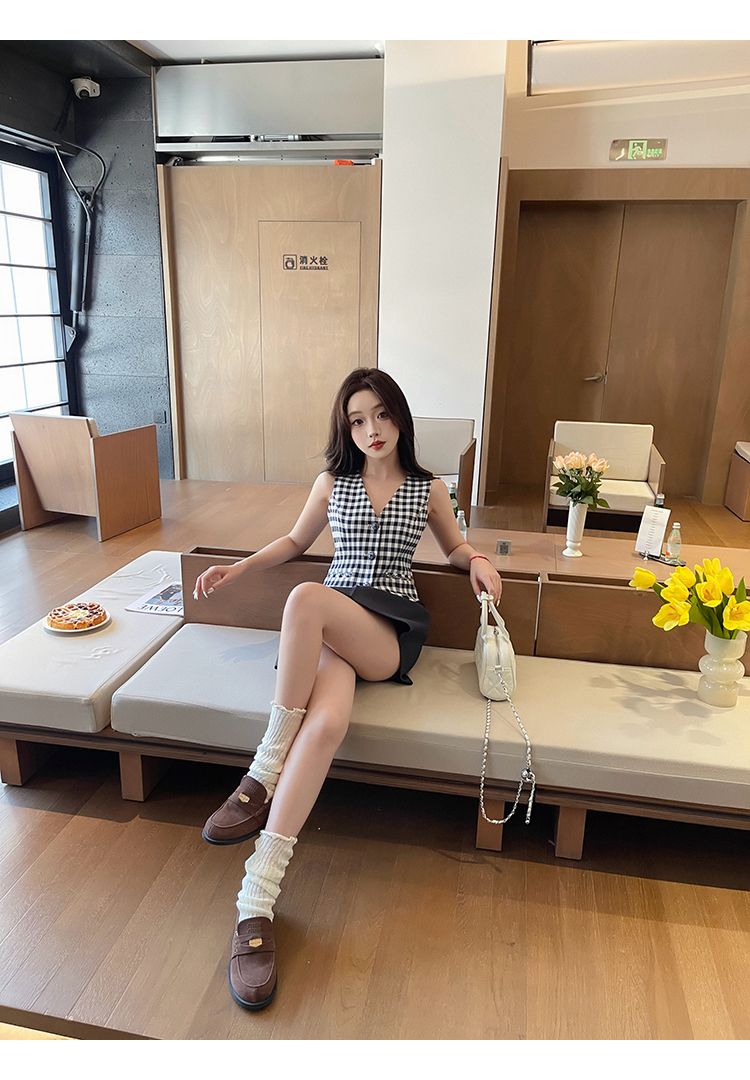 清仓捡漏 LINCHAOZHANG【落跑甜心】LW240394 格子马甲 LQ240345H半裙时尚套装