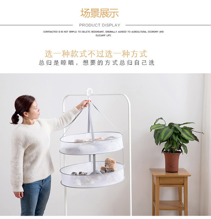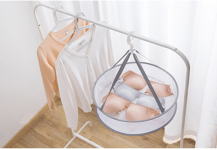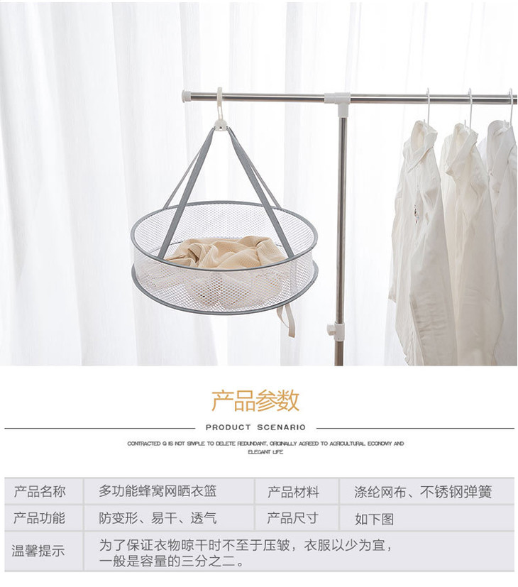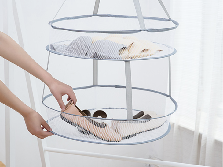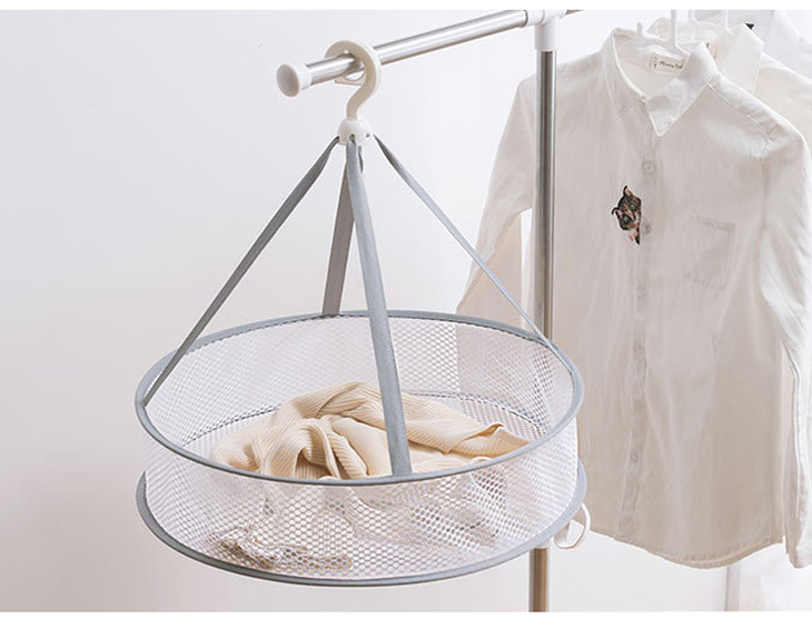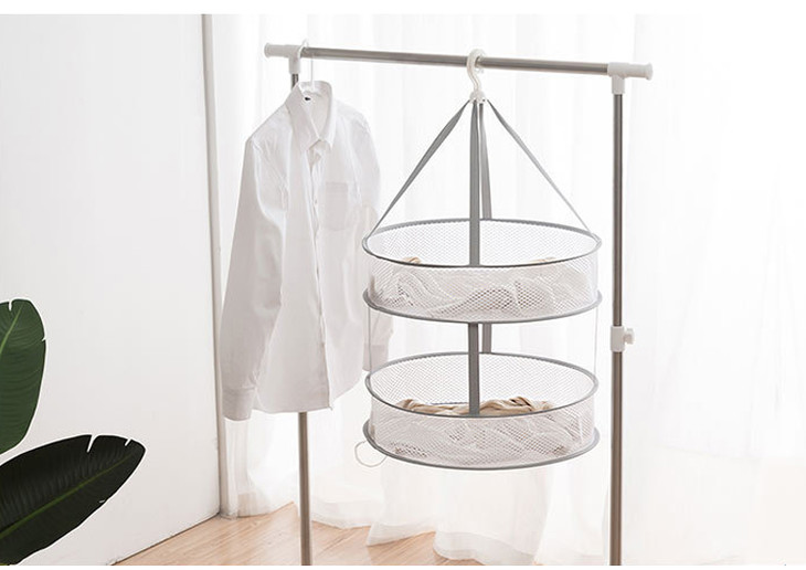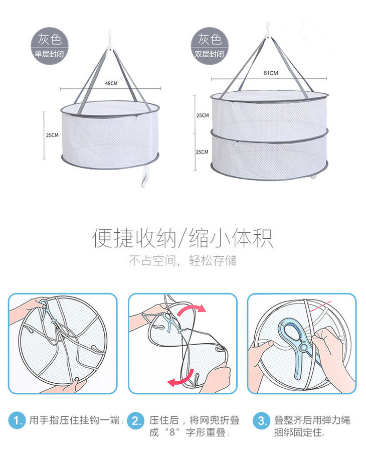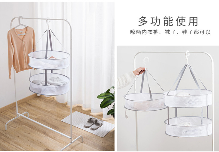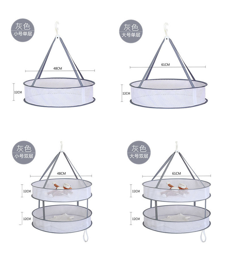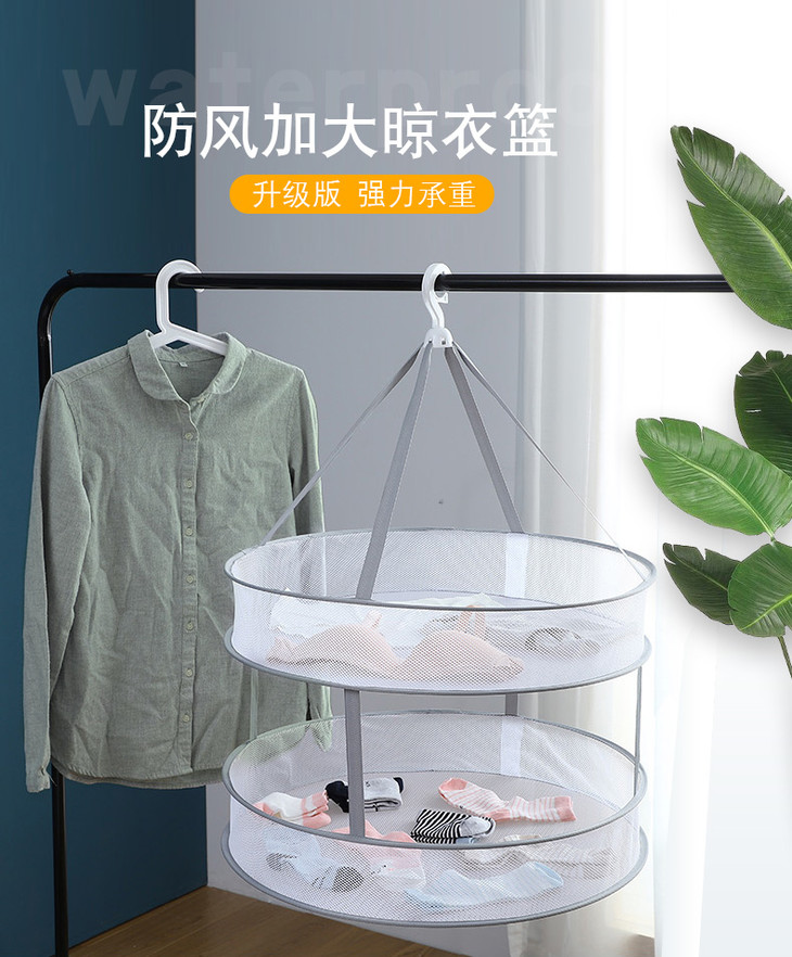 心选丨升级款加大灰包边晒衣篮 双层折叠大号晾衣网防风晒衣架