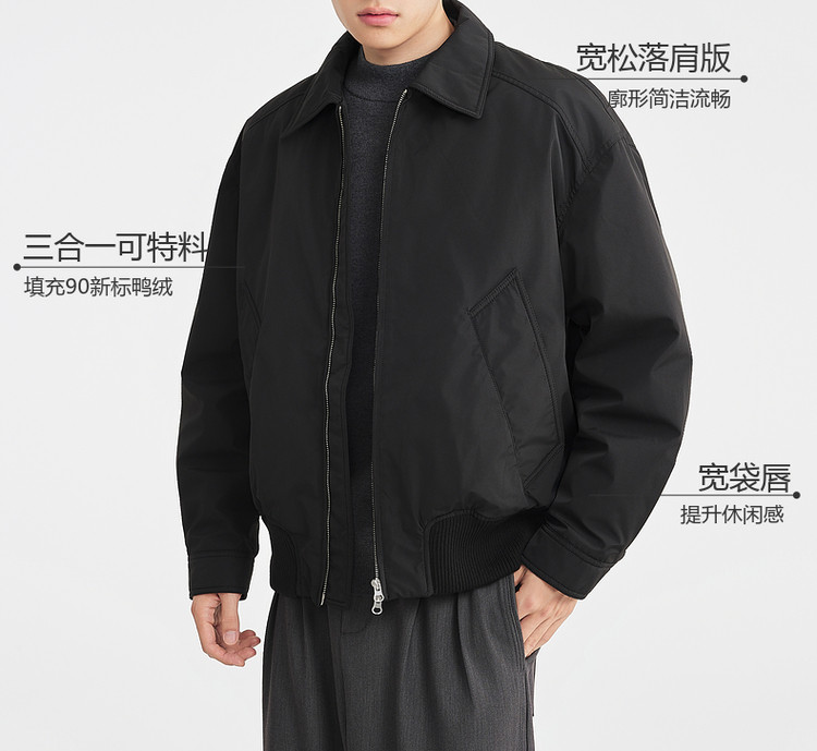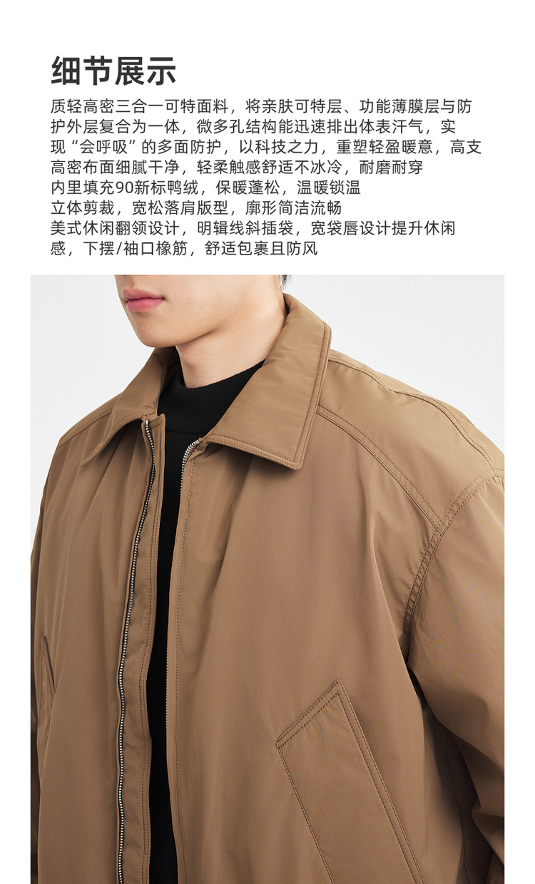 墨麦客男装2025年冬季美式休闲翻领羽绒服男士加厚宽松落肩外套男