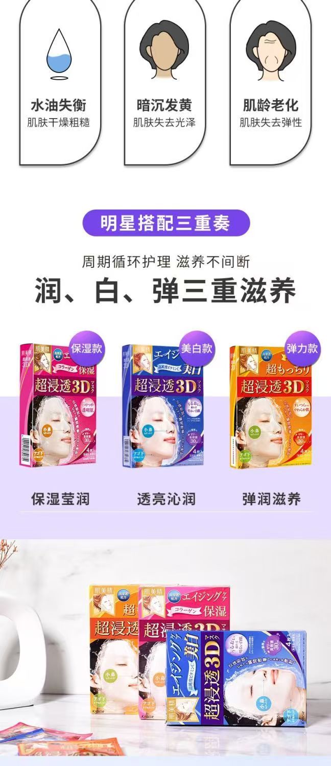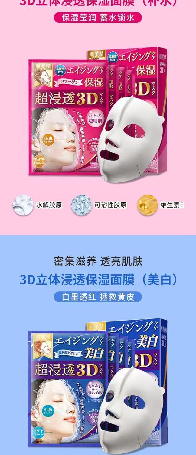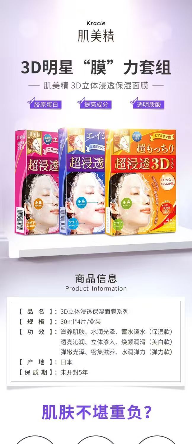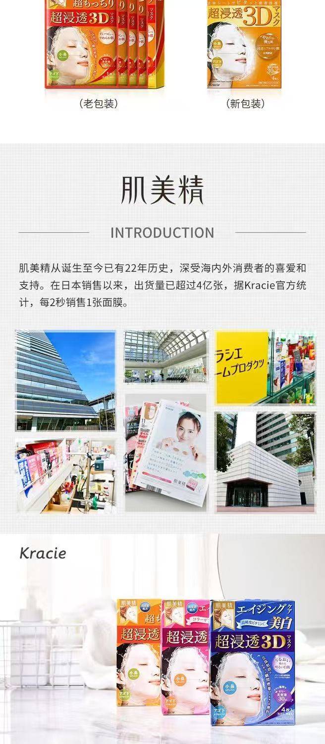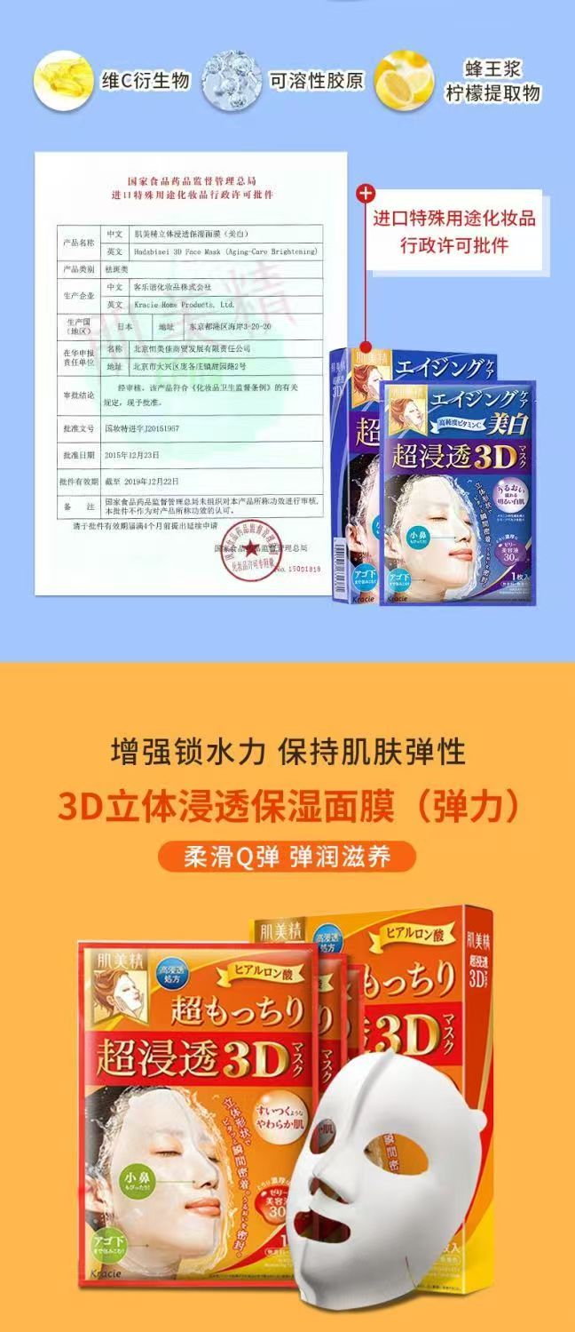 【现货】kracie 肌美精面膜立体3D浸透玻尿酸保湿30ml美容液(新旧版随机发)