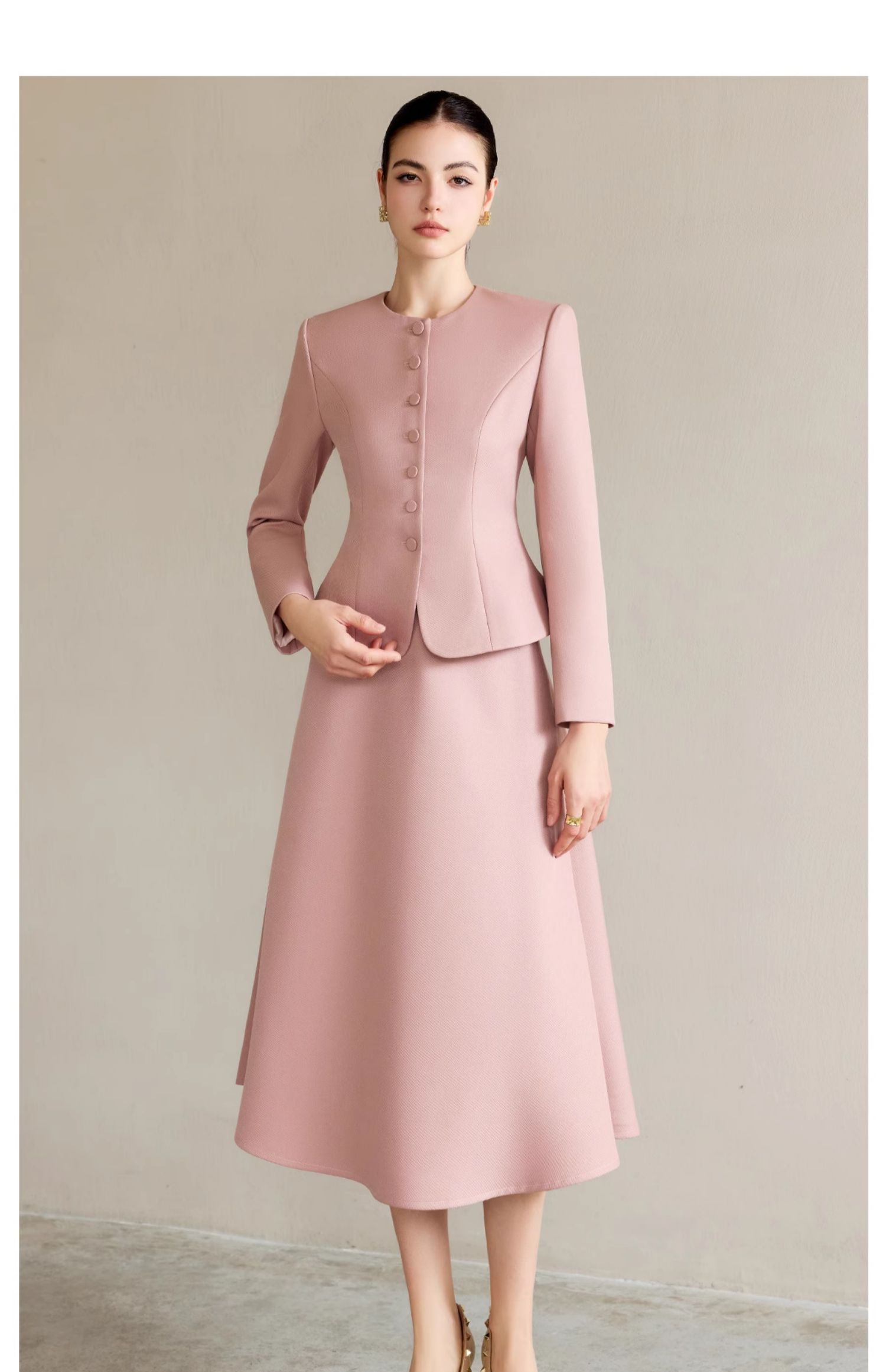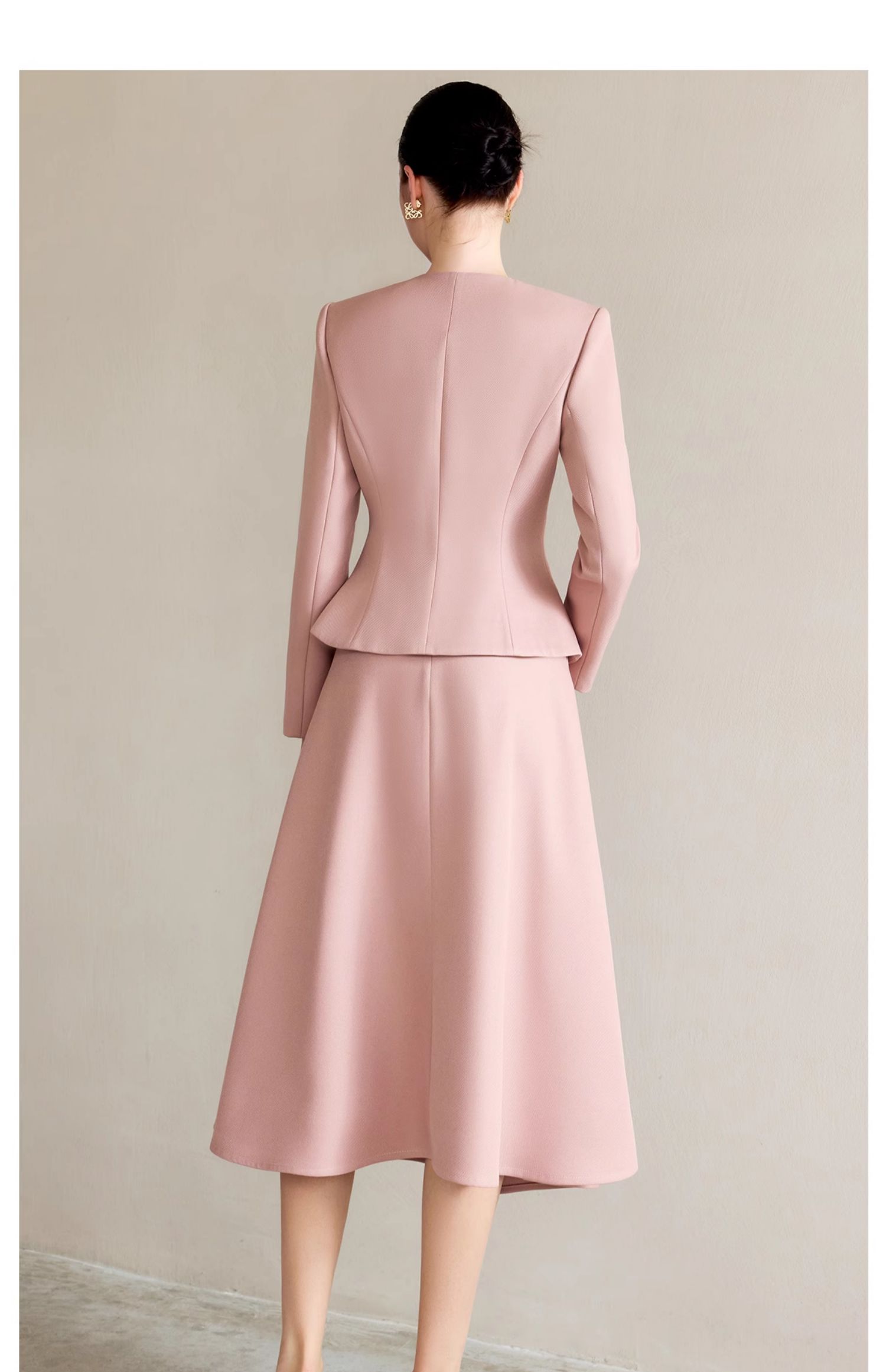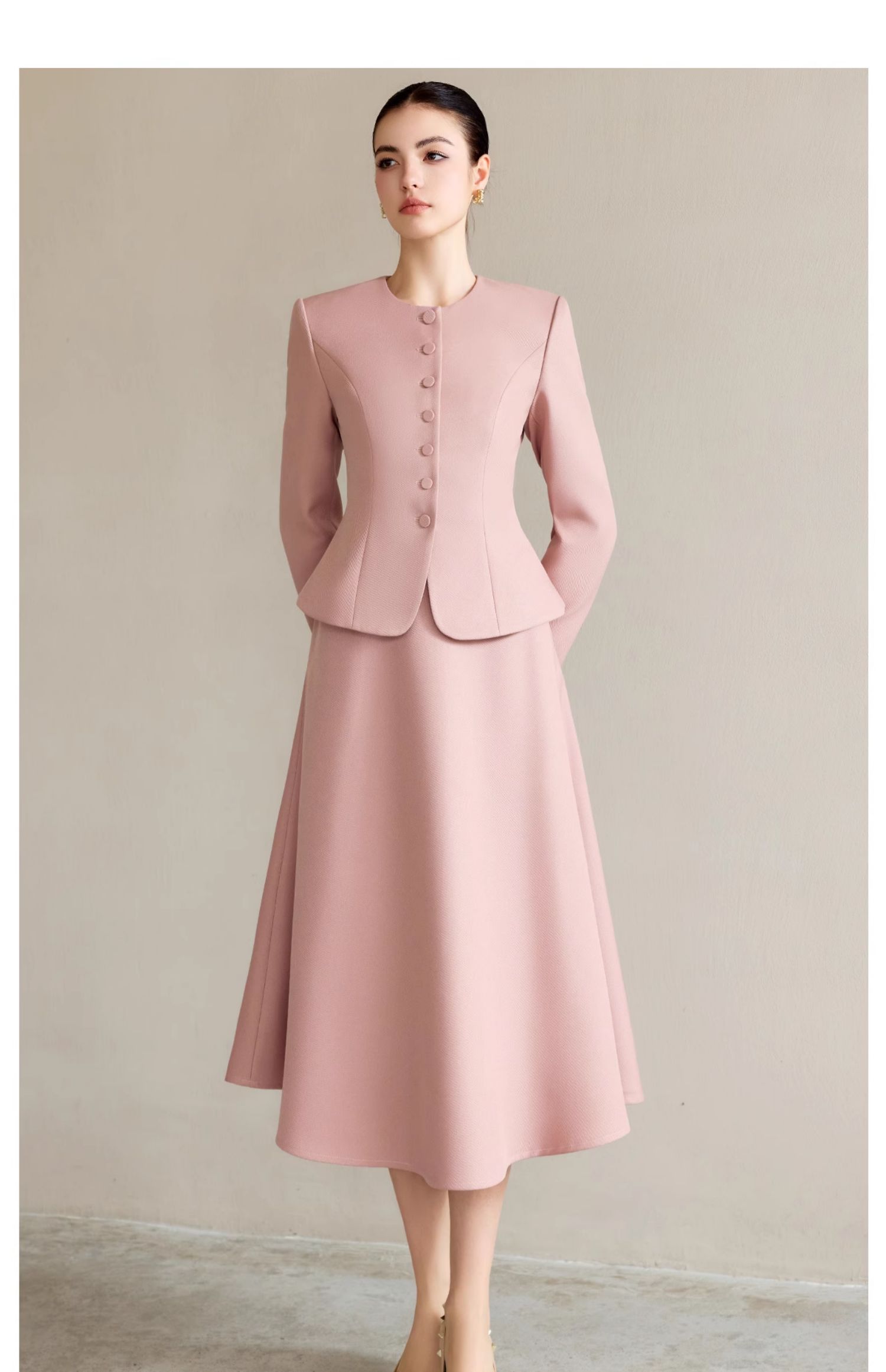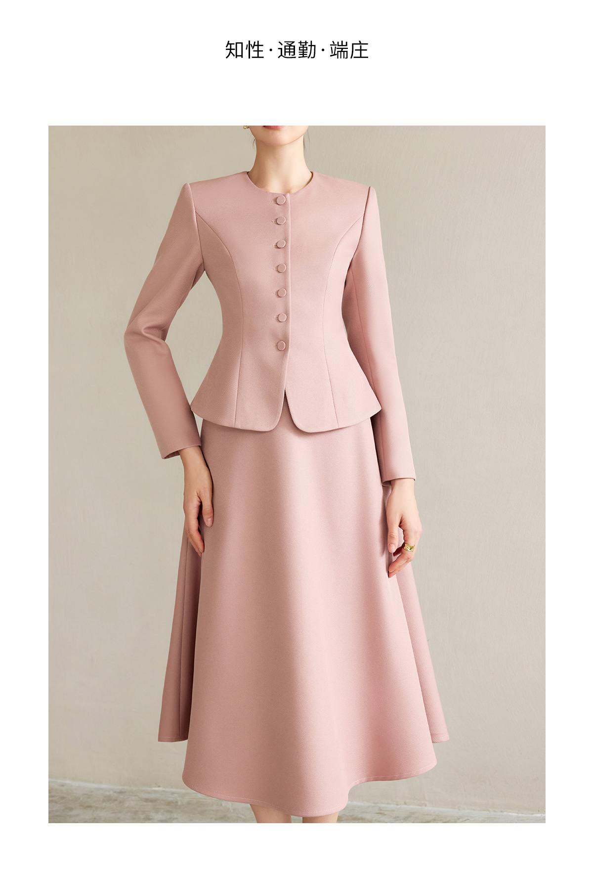 IWY/粉色温柔风西装套裙女秋季新款气质通勤职业装伞裙两件套时尚通勤职业装C2103+S2112