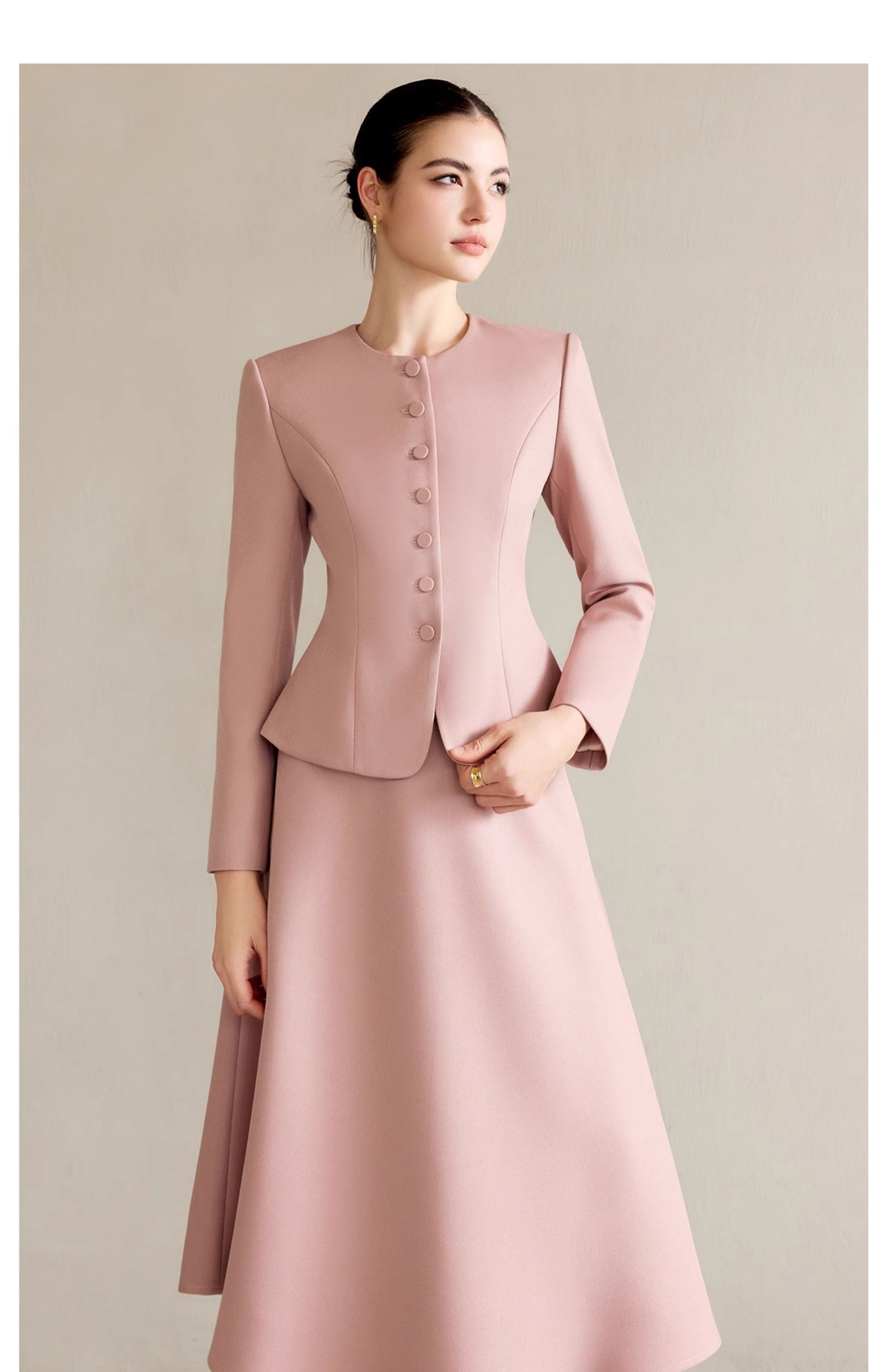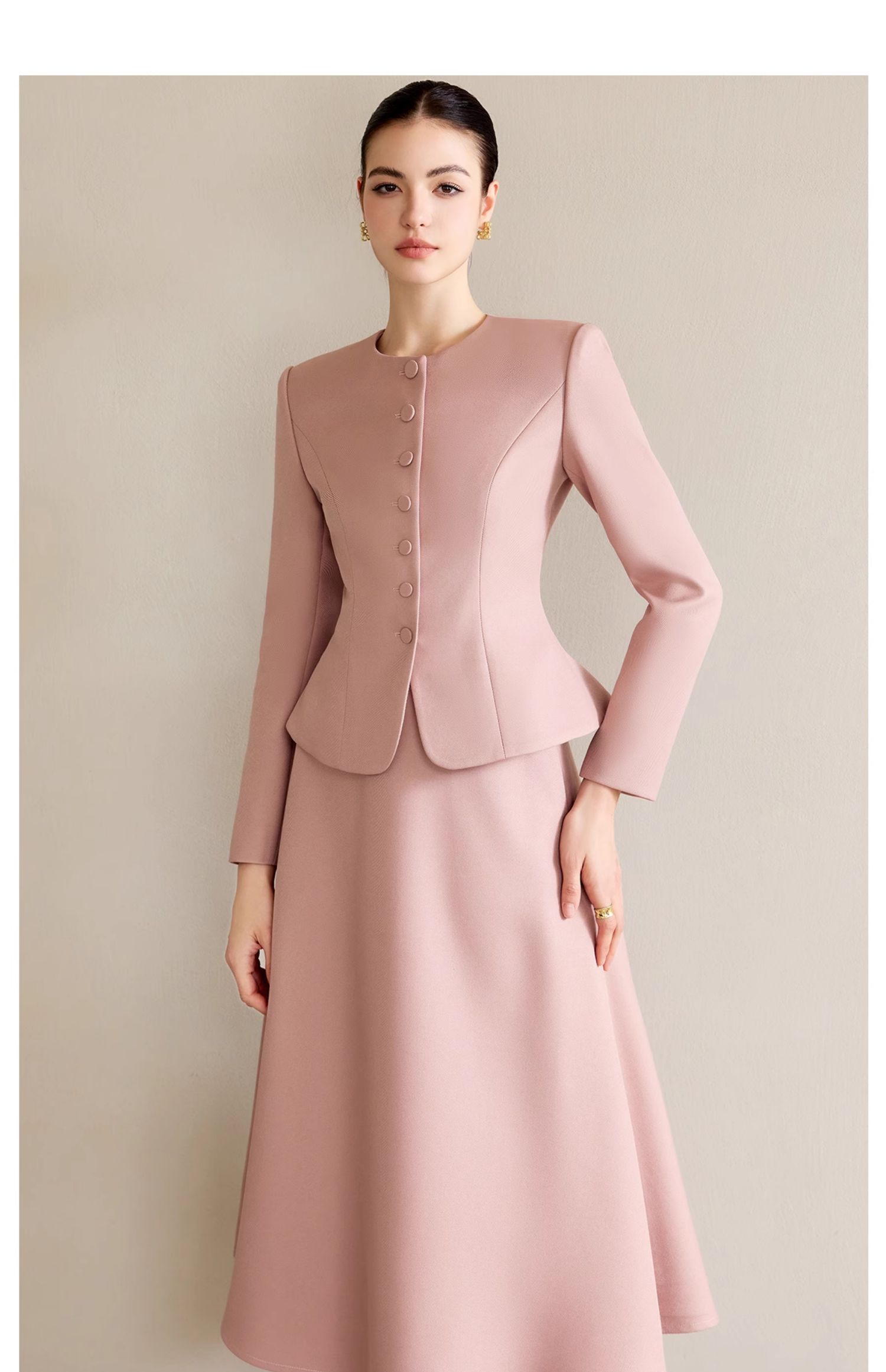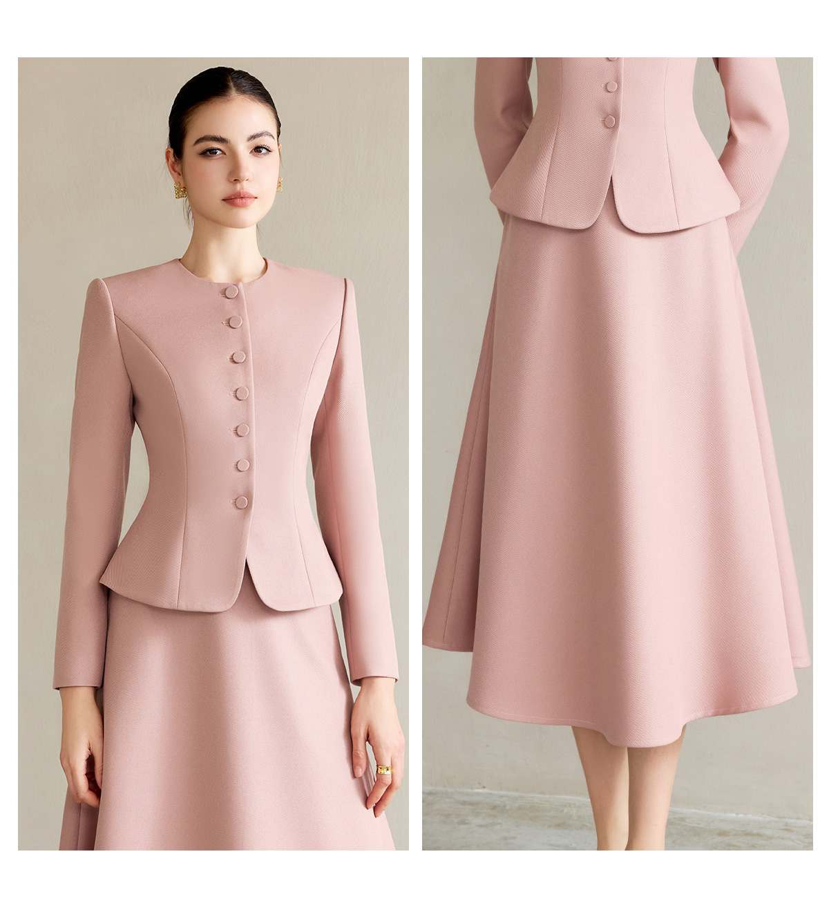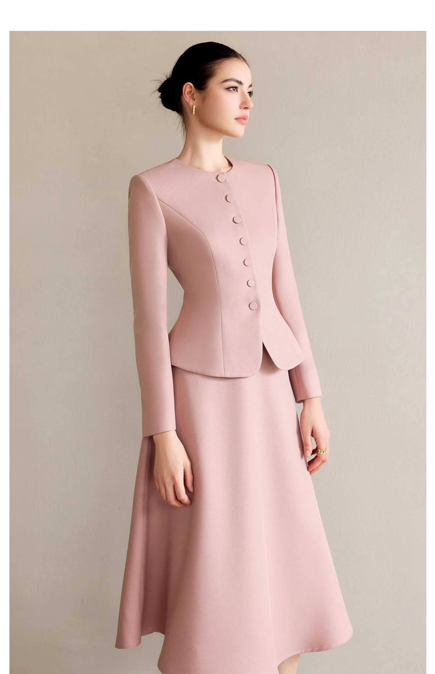 IWY/粉色温柔风西装套裙女秋季新款气质通勤职业装伞裙两件套时尚通勤职业装C2103+S2112