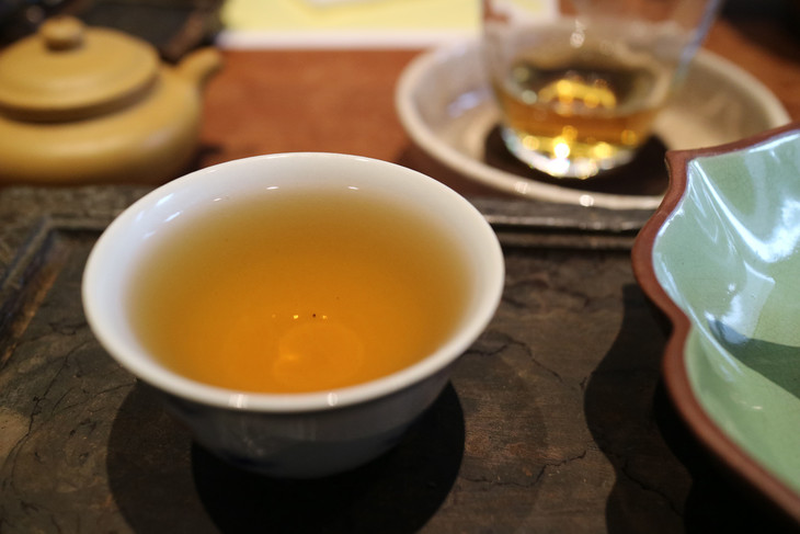 这种干仓老白茶,茶汤是金黄色,稍微坐杯是金黄略带橙红,不要追求红浓汤色,一般也是注水后几秒出汤就可以了。老白茶香气纯净的很少,有些即使是干仓,也会有灰尘杂味,这款茶完全没有,开汤就是纯净的花香、毫香、果香、木香。带有一点老白茶特有的谷物香气。甜润甘香。这四个字拆开来看,甜润和甘香达到一个容易,湿度上来就甜润,湿度很低就甘香。两个都有很难,只有干仓且转化充分才能兼得。茶汤包裹度好,厚重醇滑,这个只有经历转化的优质春茶才能达到。难得二十年还是一股清气,饮后清气上行,喉部清凉,而且清凉有入心肺之感。当然要体验这个感觉不能重闷,重闷是另外的感觉了。韵味悠长,回甘生津都明显,清凉感和甜润感饮后持久,这样的老白茶非常难得。最后提示一下煮茶,老白茶光泡不煮可惜了。这个茶煮出来是枣香为主的复合香。老寿眉老贡眉煮出枣香并不难,但煮出高级感不容易。这个茶内含物质丰厚,枣香的同时还带有其他果香,同时甜润深透,是非常高级的享受。