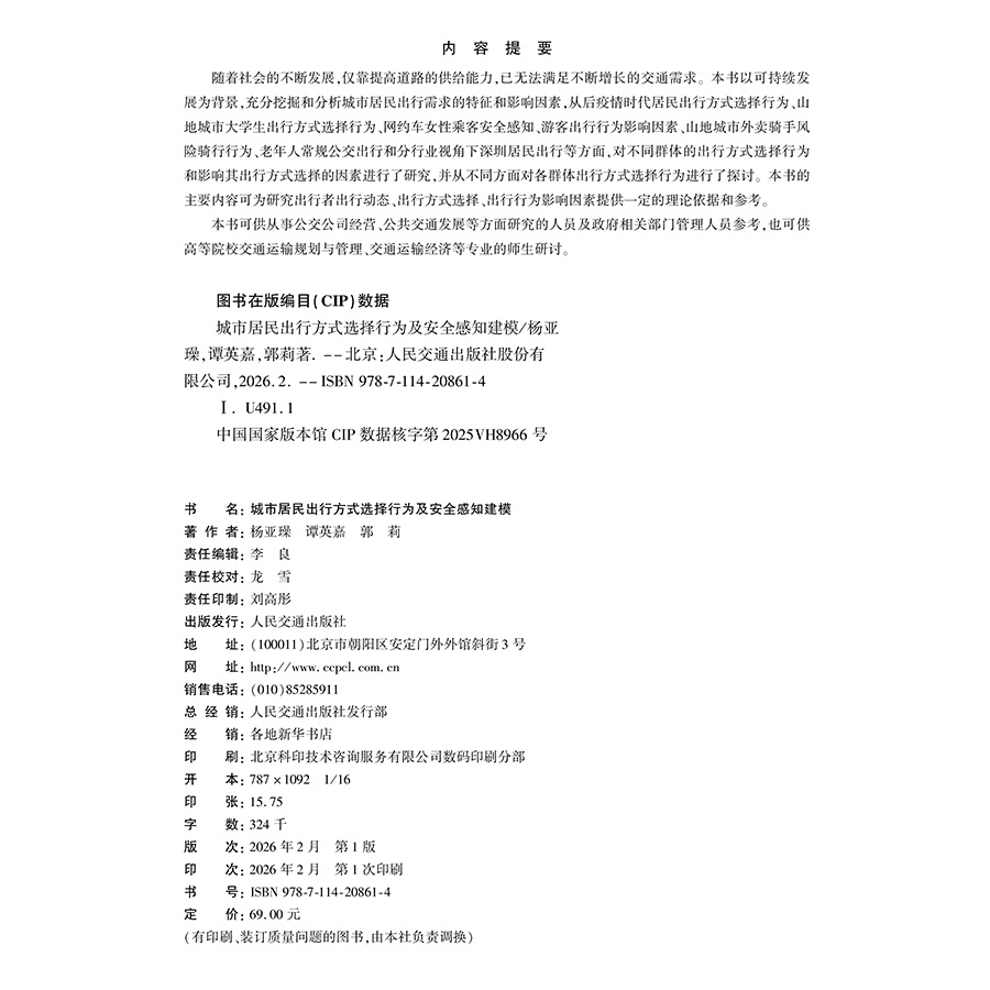 书名:城市居民出行方式选择行为及安全感知建模