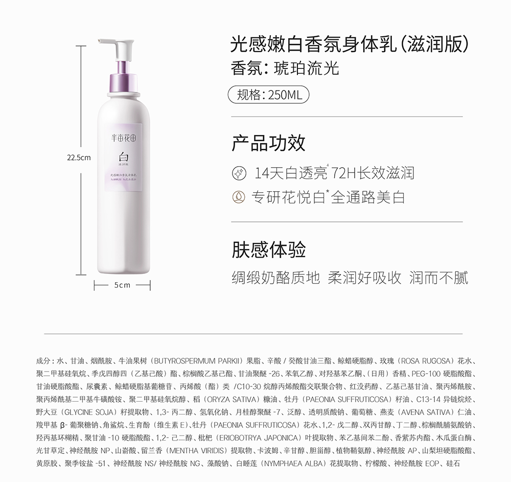 【官方直营】【美白保湿】【老客内购专属】热巴同款半亩花田养白瓶烟酰胺美白身体乳 保湿滋润润肤乳官方正品