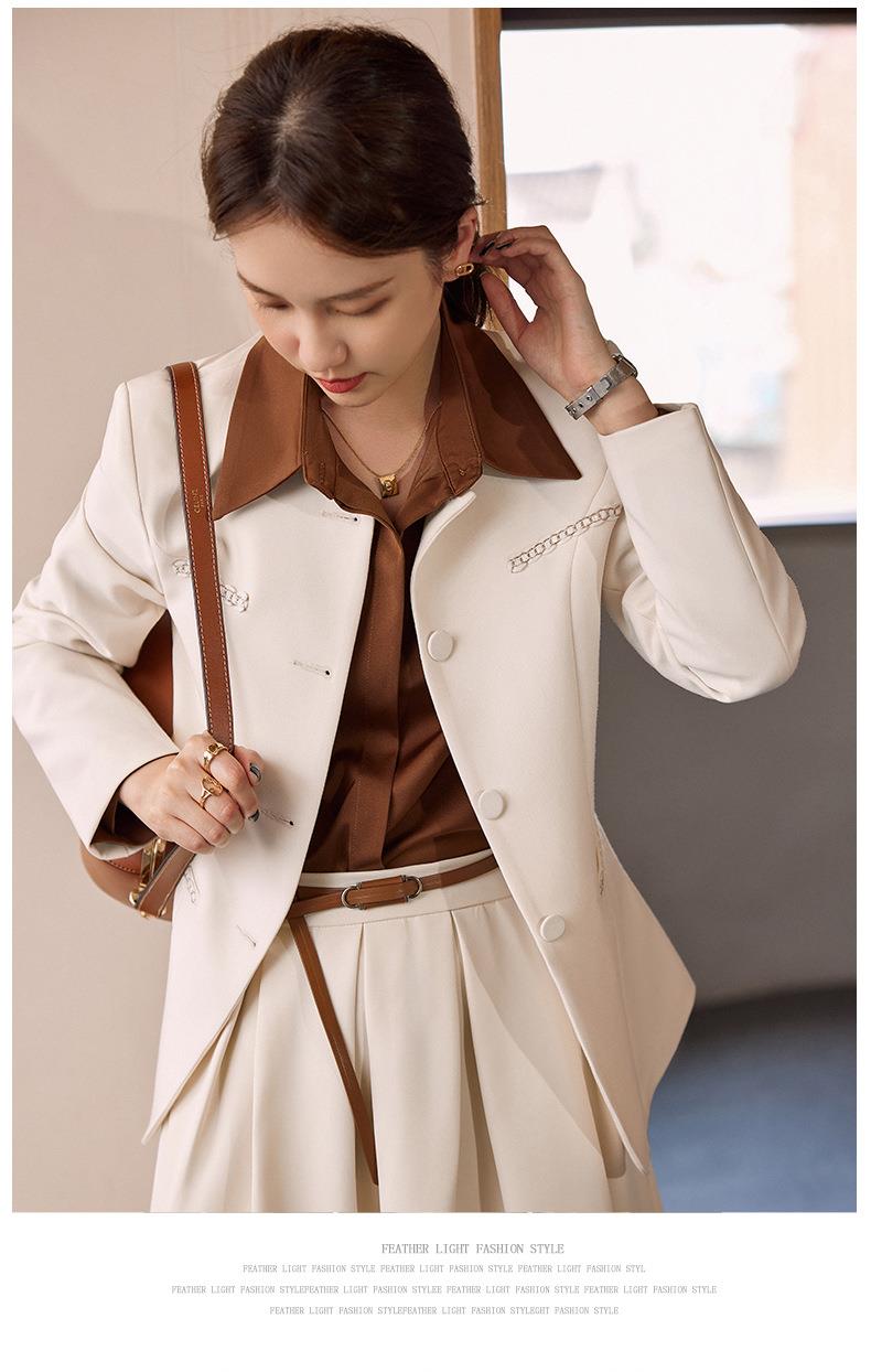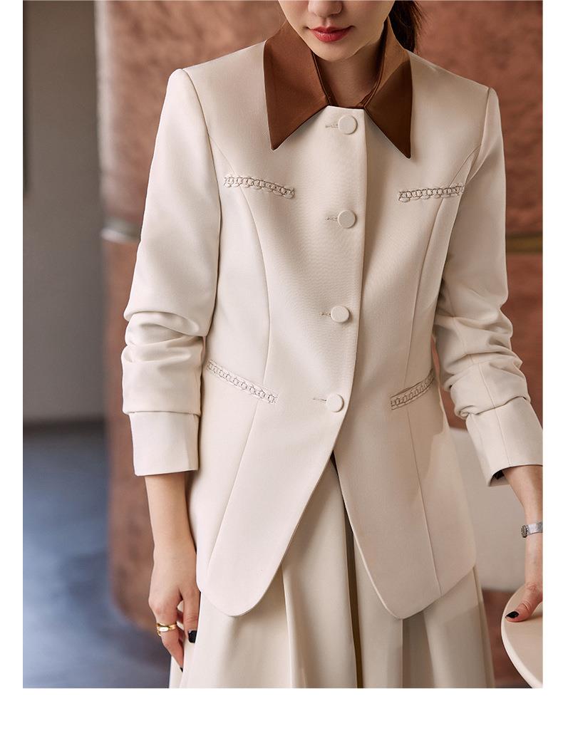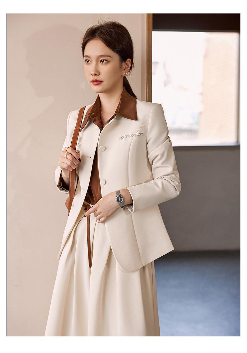 娜璐多 米白色法式套装裙女2023秋季新款轻奢小香风外套中长半身裙两件套