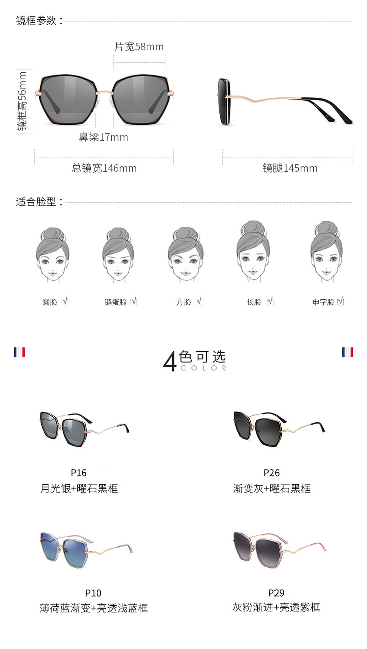 海俪恩新款偏光太阳镜女防紫外线眼镜开车大脸墨镜女N6723