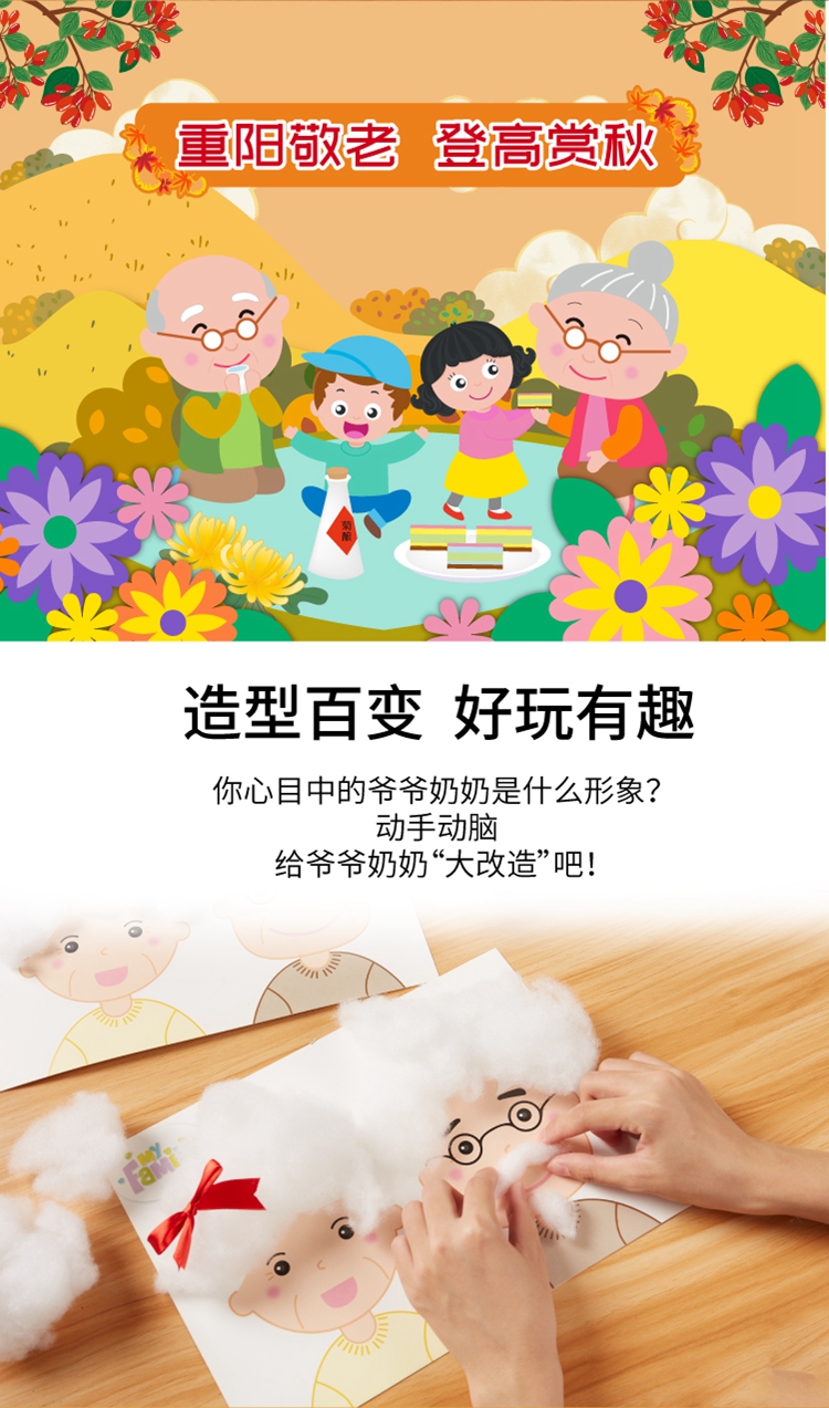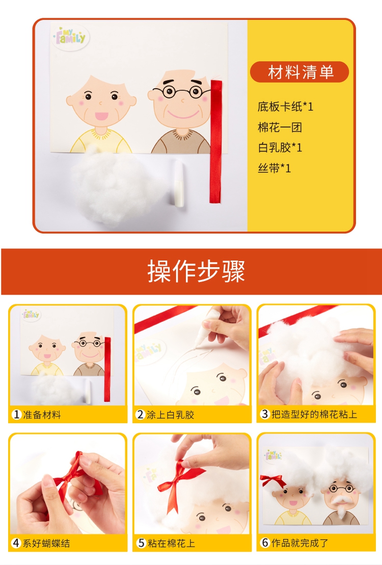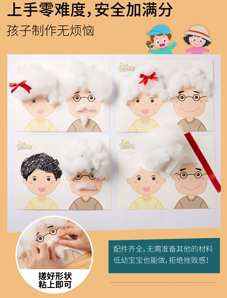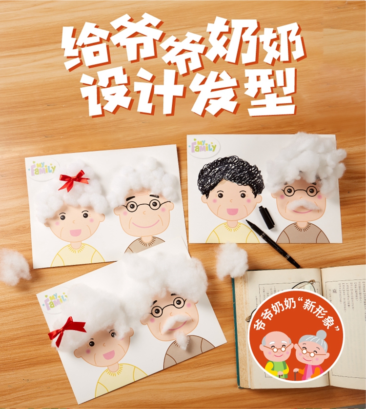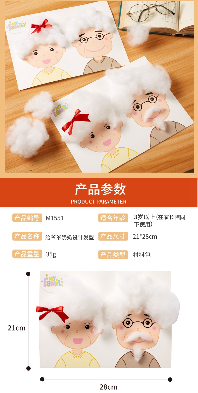 重阳节手工diy幼儿园儿童给爷爷奶奶设计发型制作材料包活动装饰