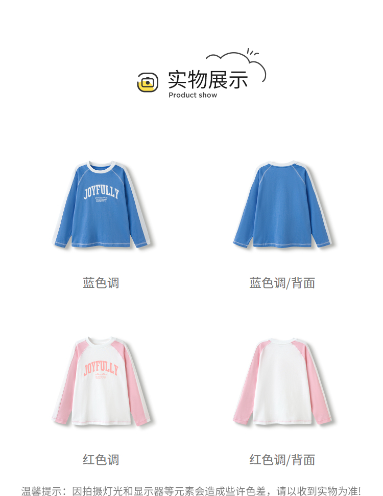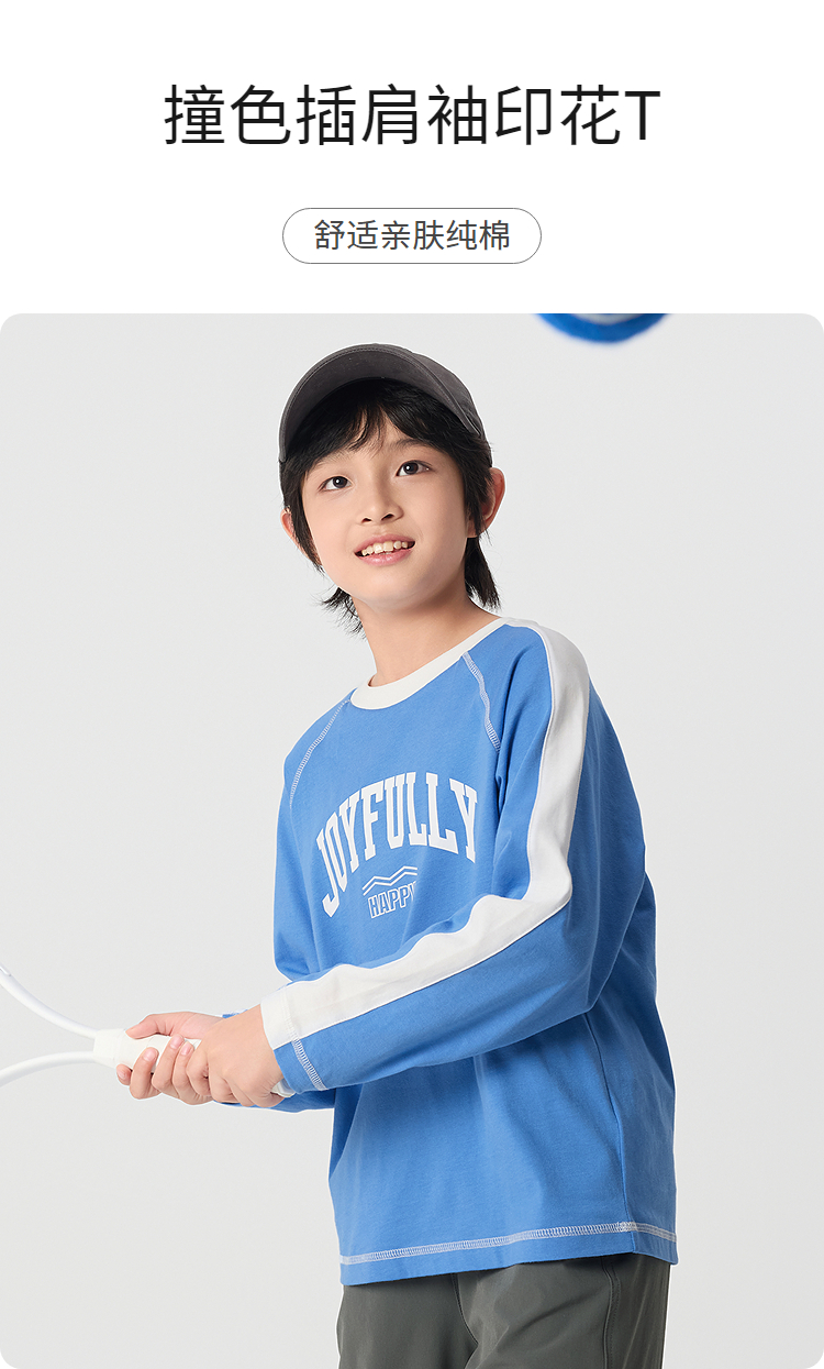 巴拉巴拉童装长袖儿童t恤男童女童2025新款春圆领打底衫简约透气T