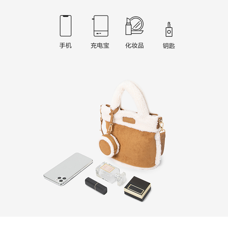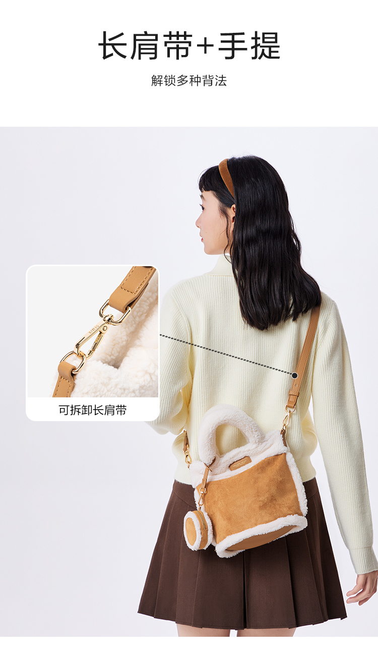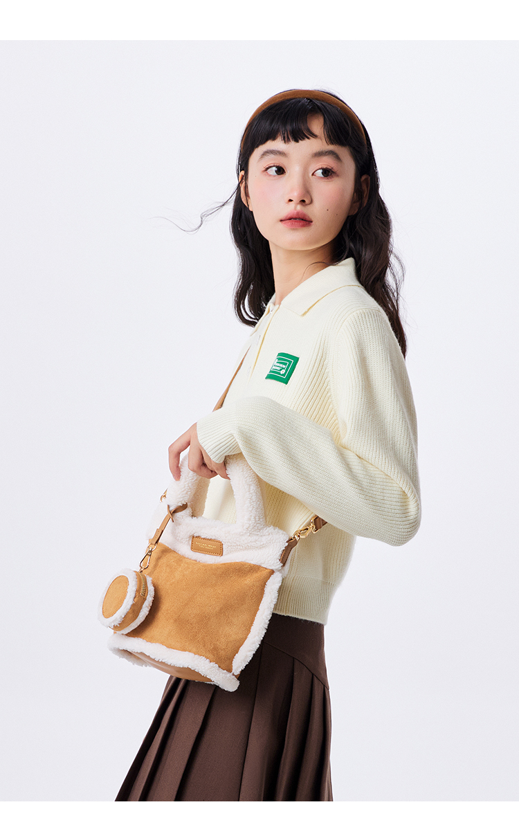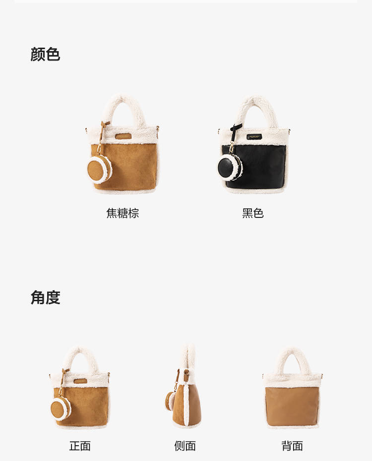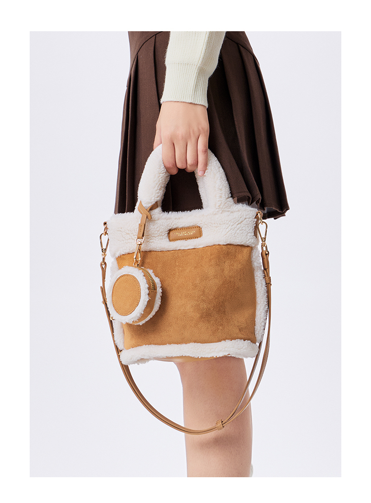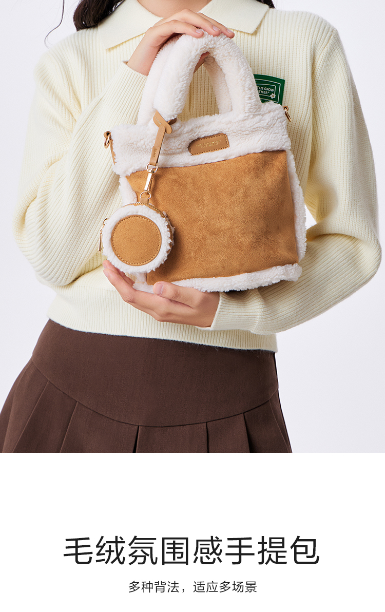 森马包包手提包女2023新款时尚毛绒拼接秋冬氛围感女包单肩斜挎包