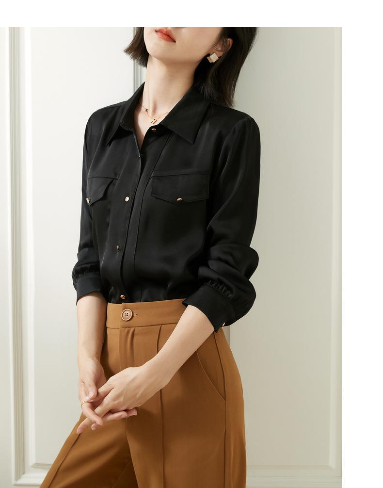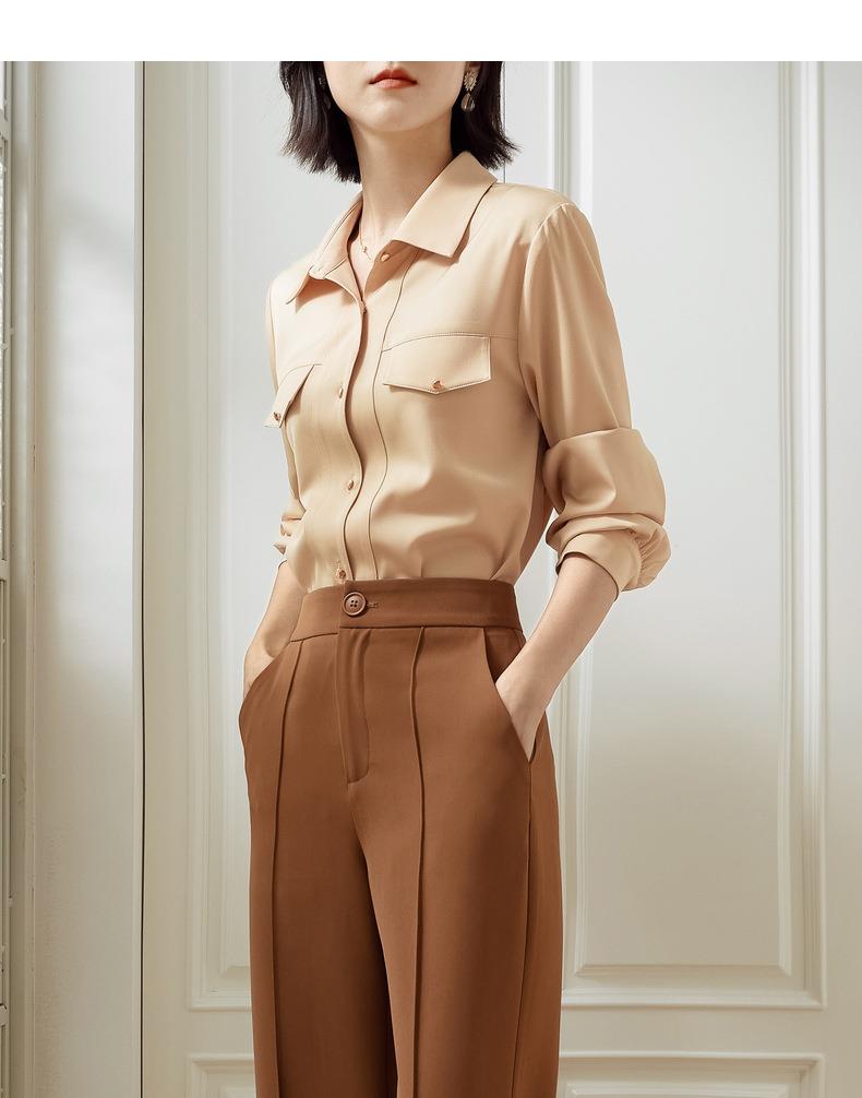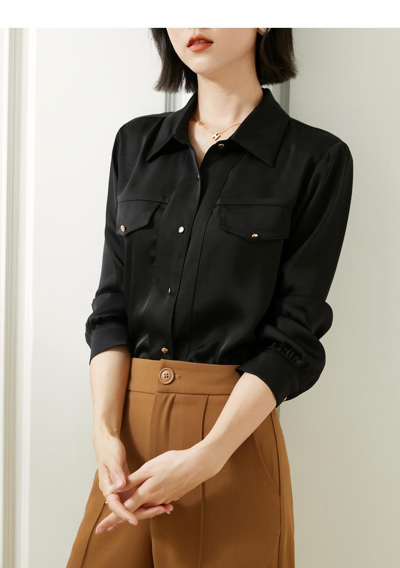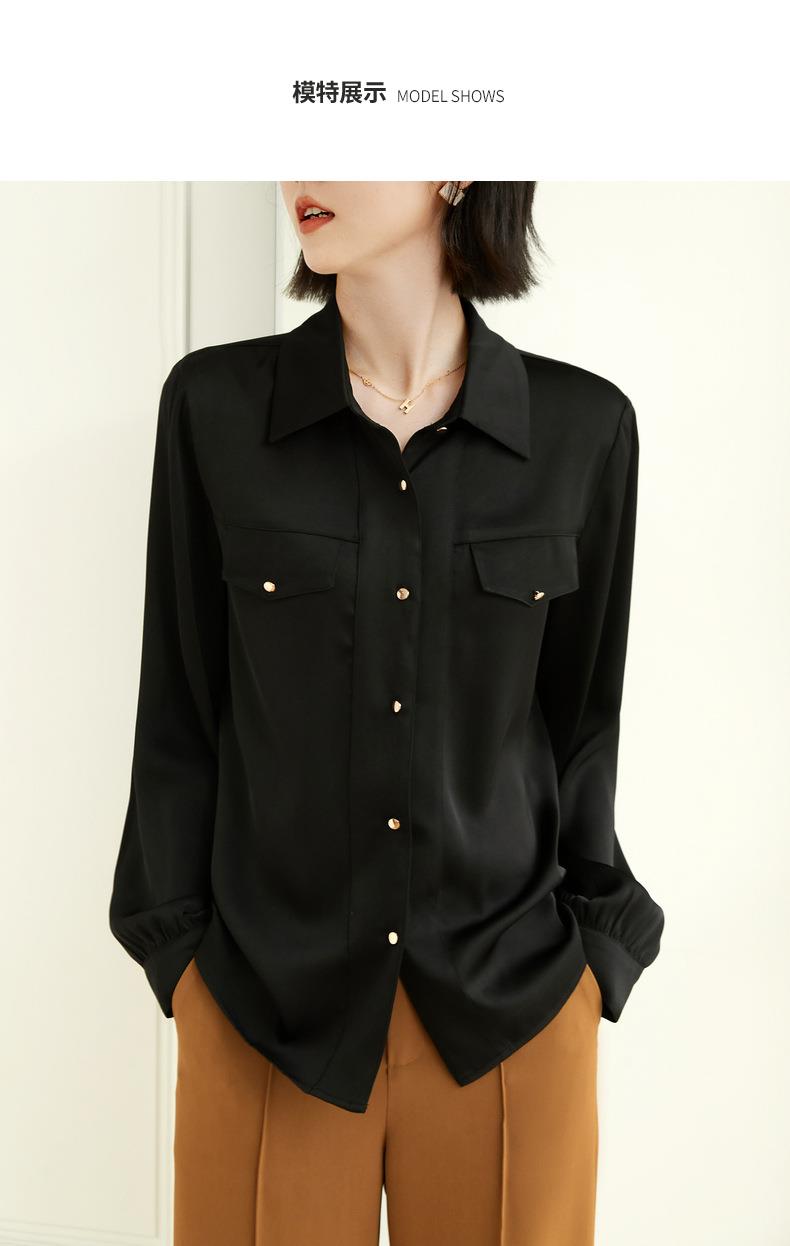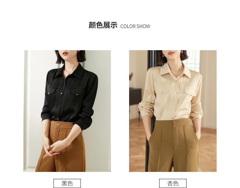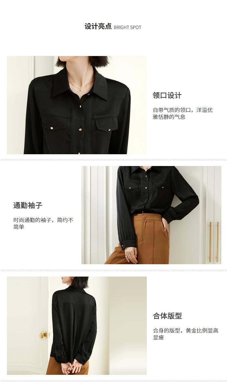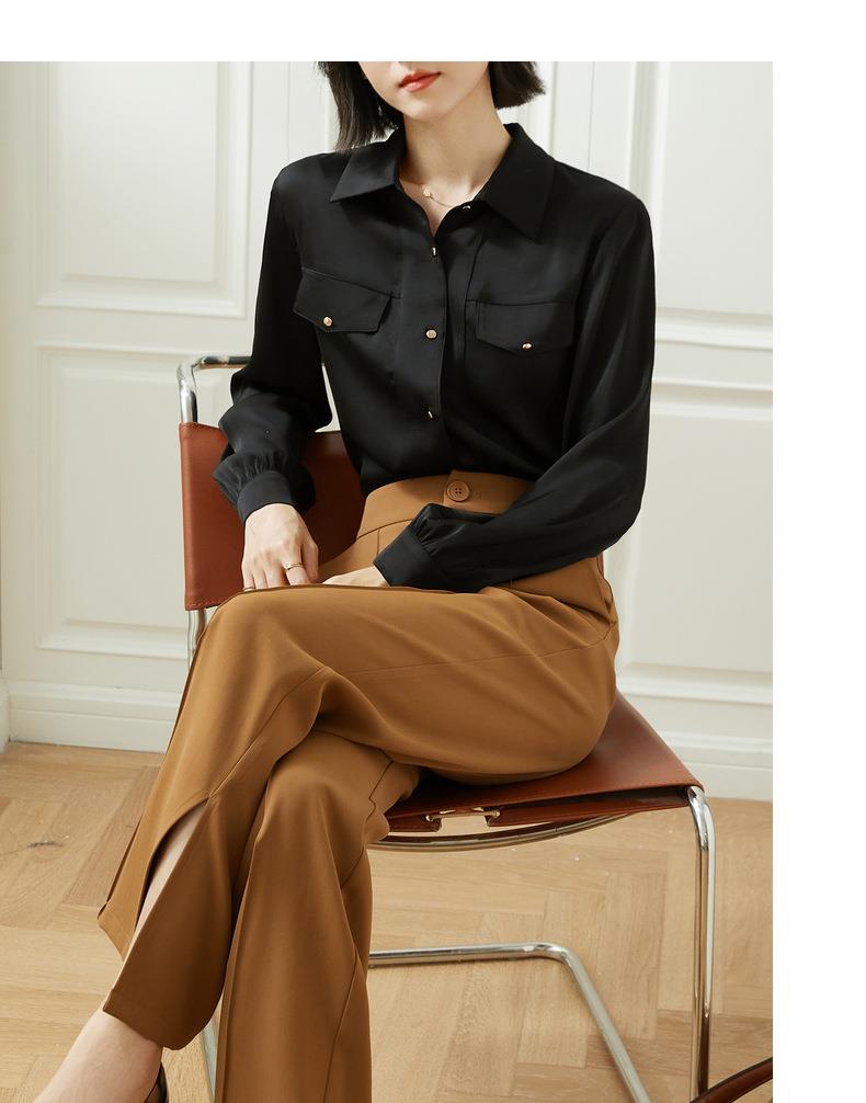百姿 职业衬衫女长袖2023秋季新款纯色开衫大口袋气质通勤衬衣