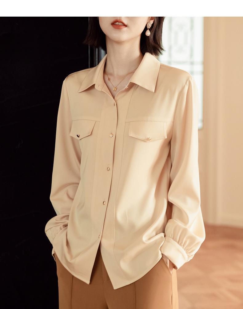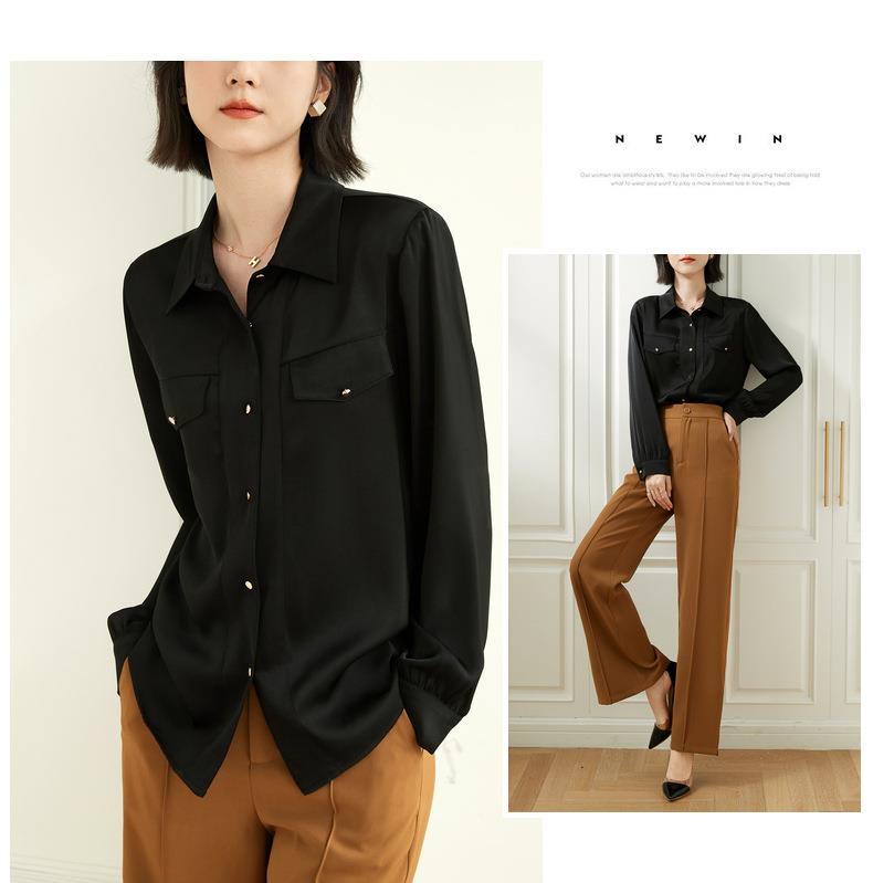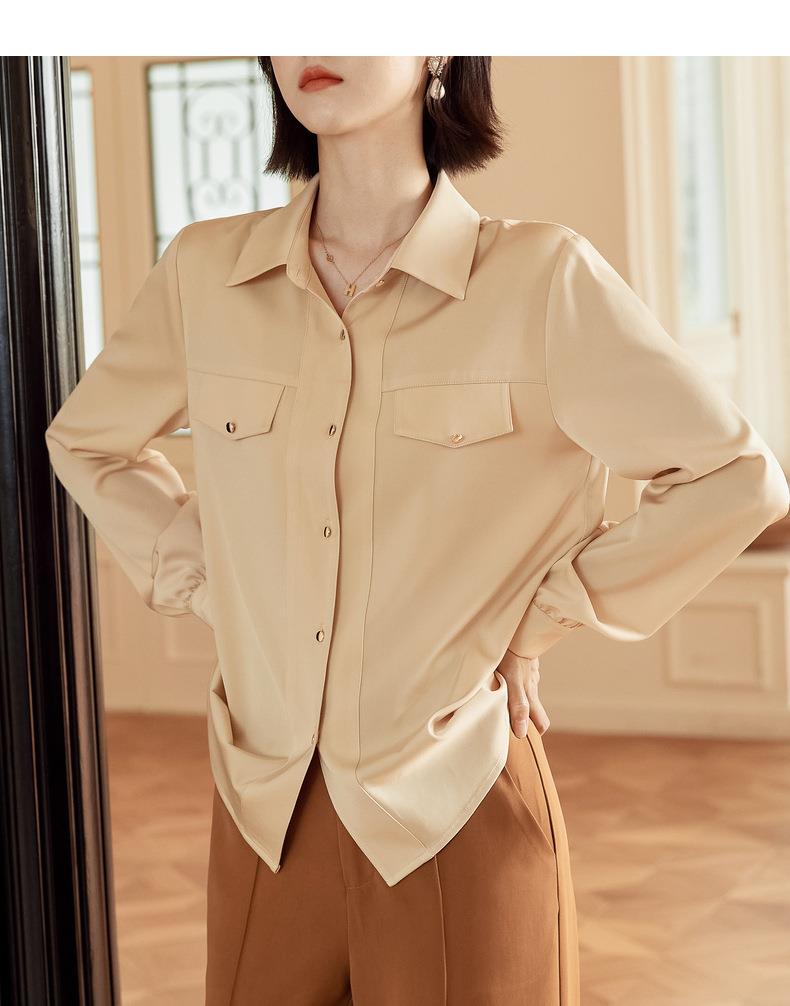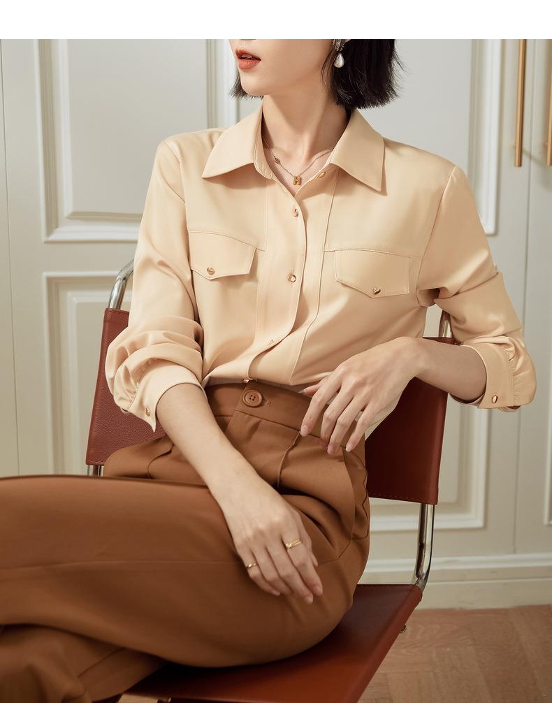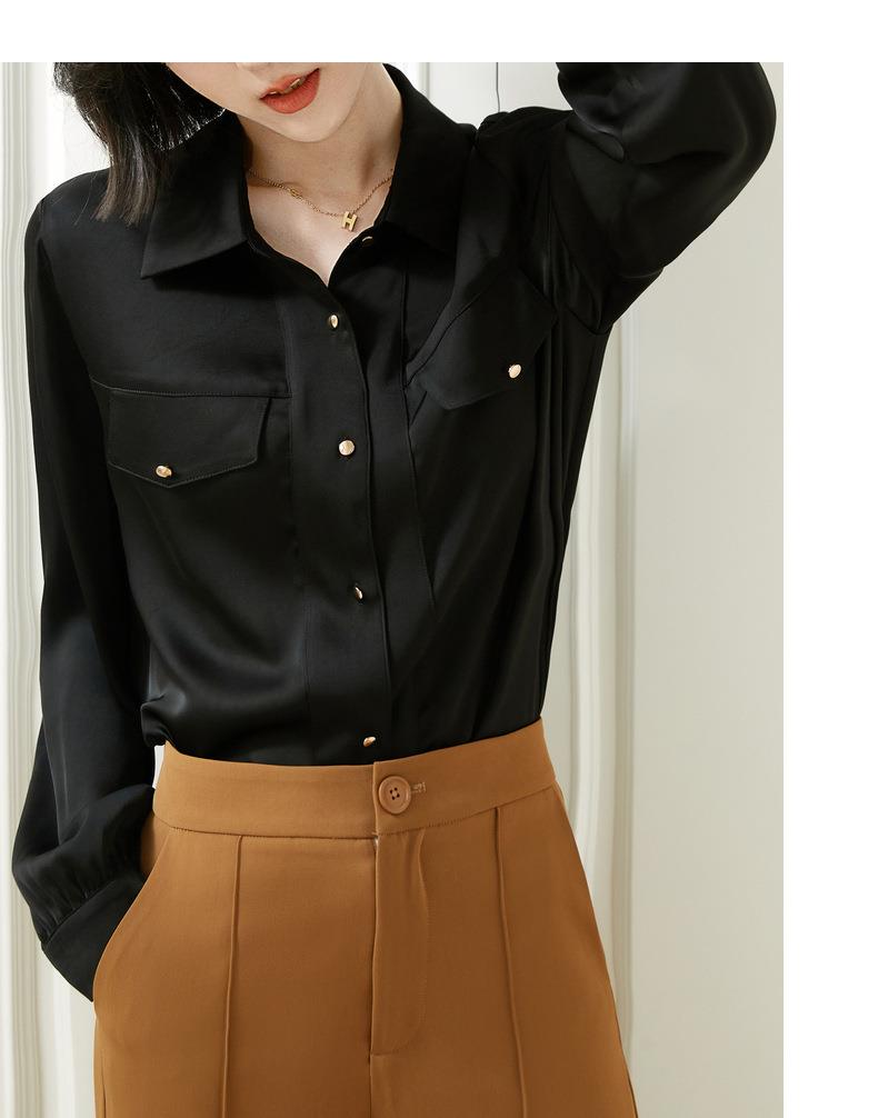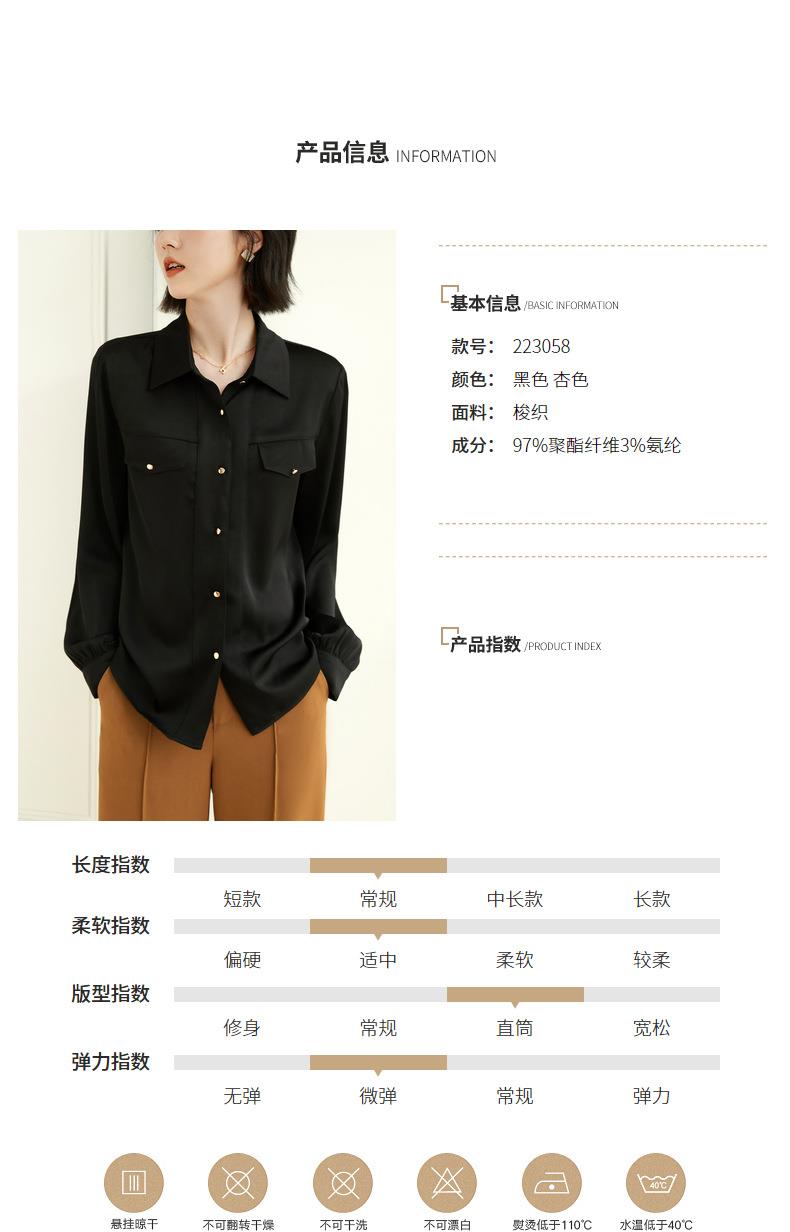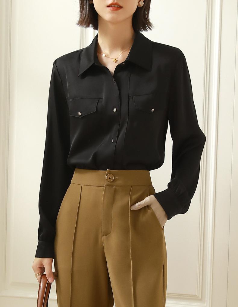 百姿 职业衬衫女长袖2023秋季新款纯色开衫大口袋气质通勤衬衣