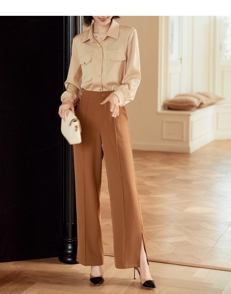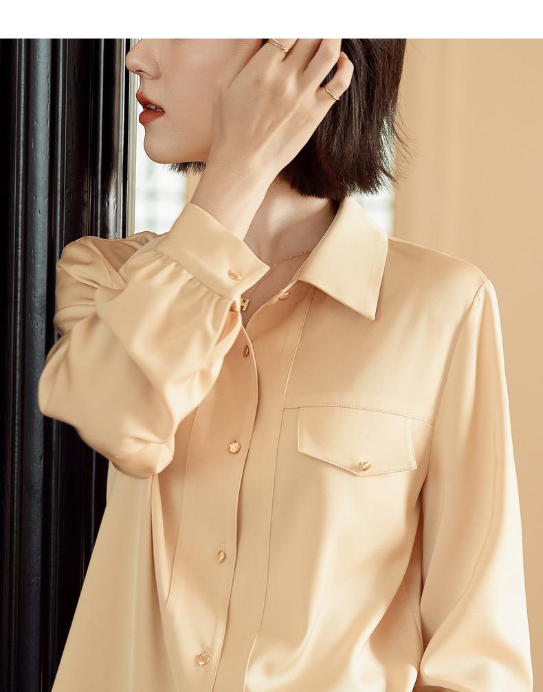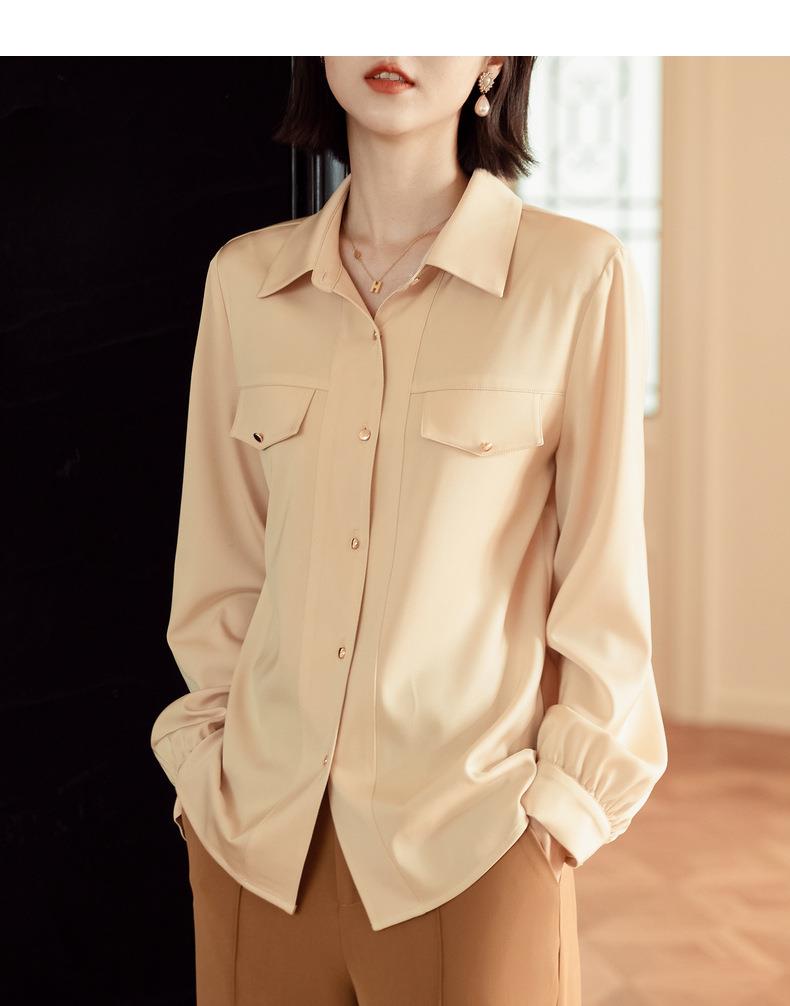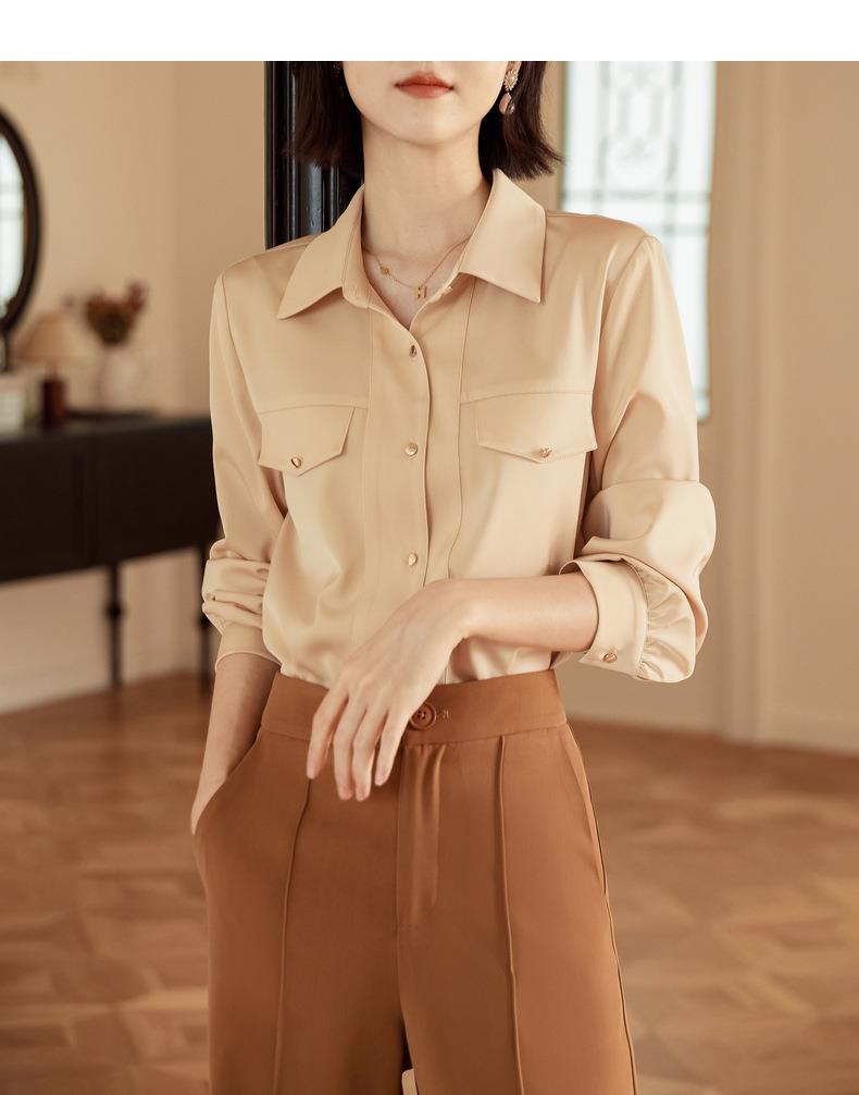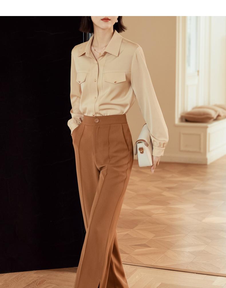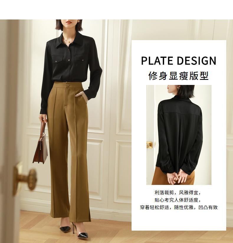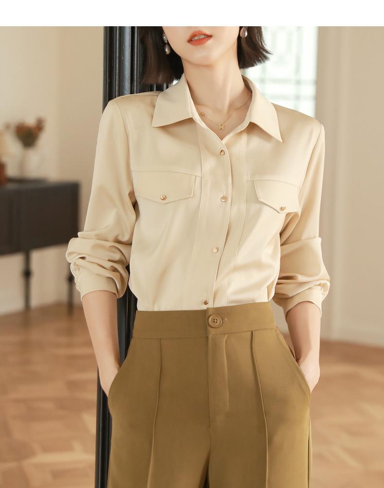 百姿 职业衬衫女长袖2023秋季新款纯色开衫大口袋气质通勤衬衣