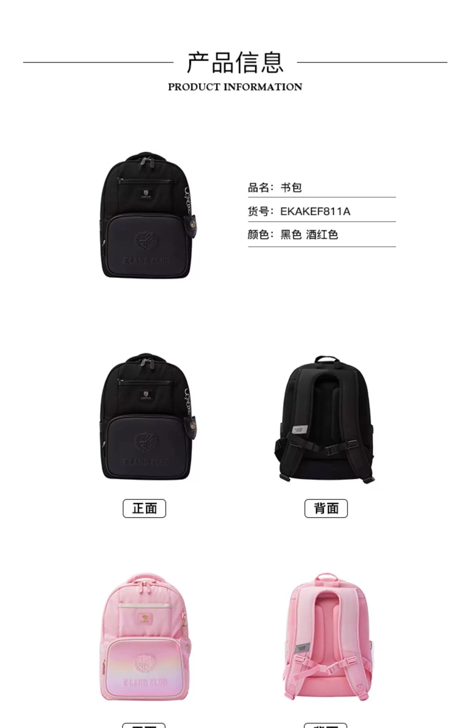 eland kids衣恋童装书包小学生男女童1-3年级防泼水大容量书包