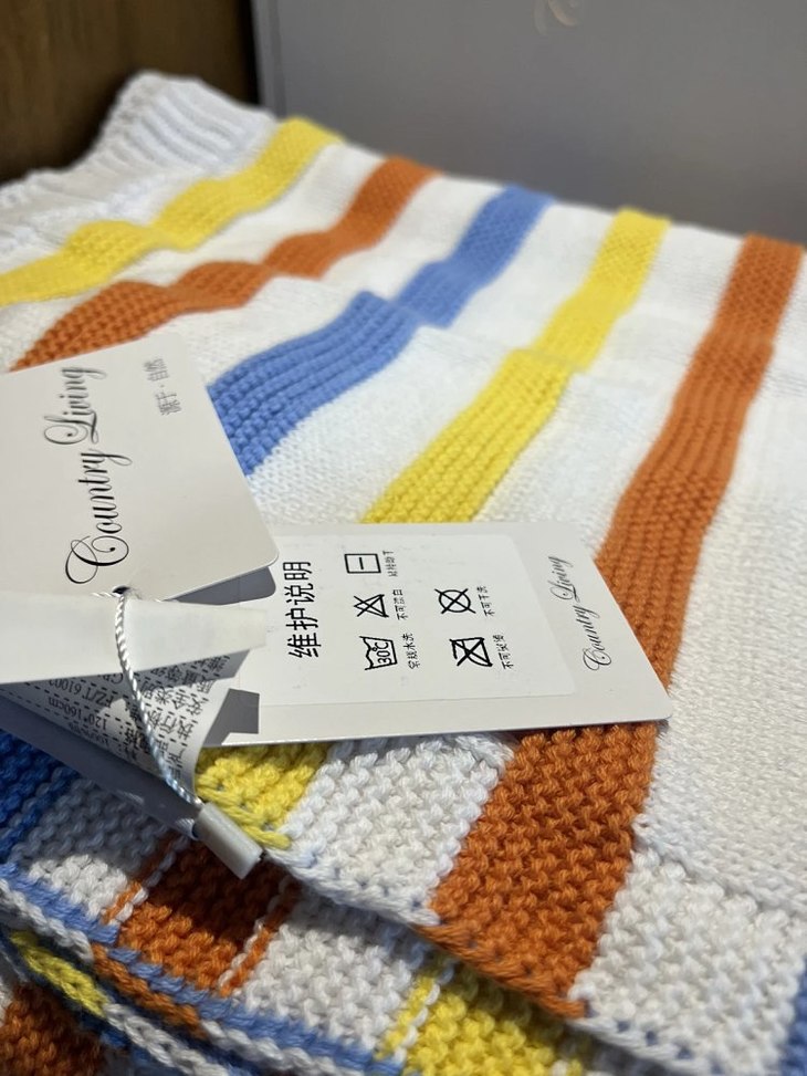 出口北欧转内销!【纯棉针织毯】每一根纱线都经过精梳工艺,触感细腻亲肤;采用针织工艺编织,条纹纹理清晰立体!WD