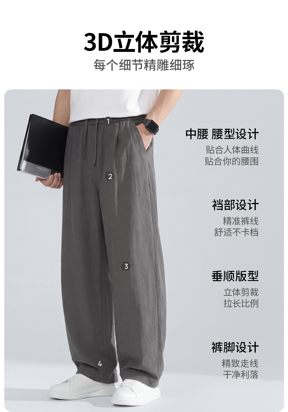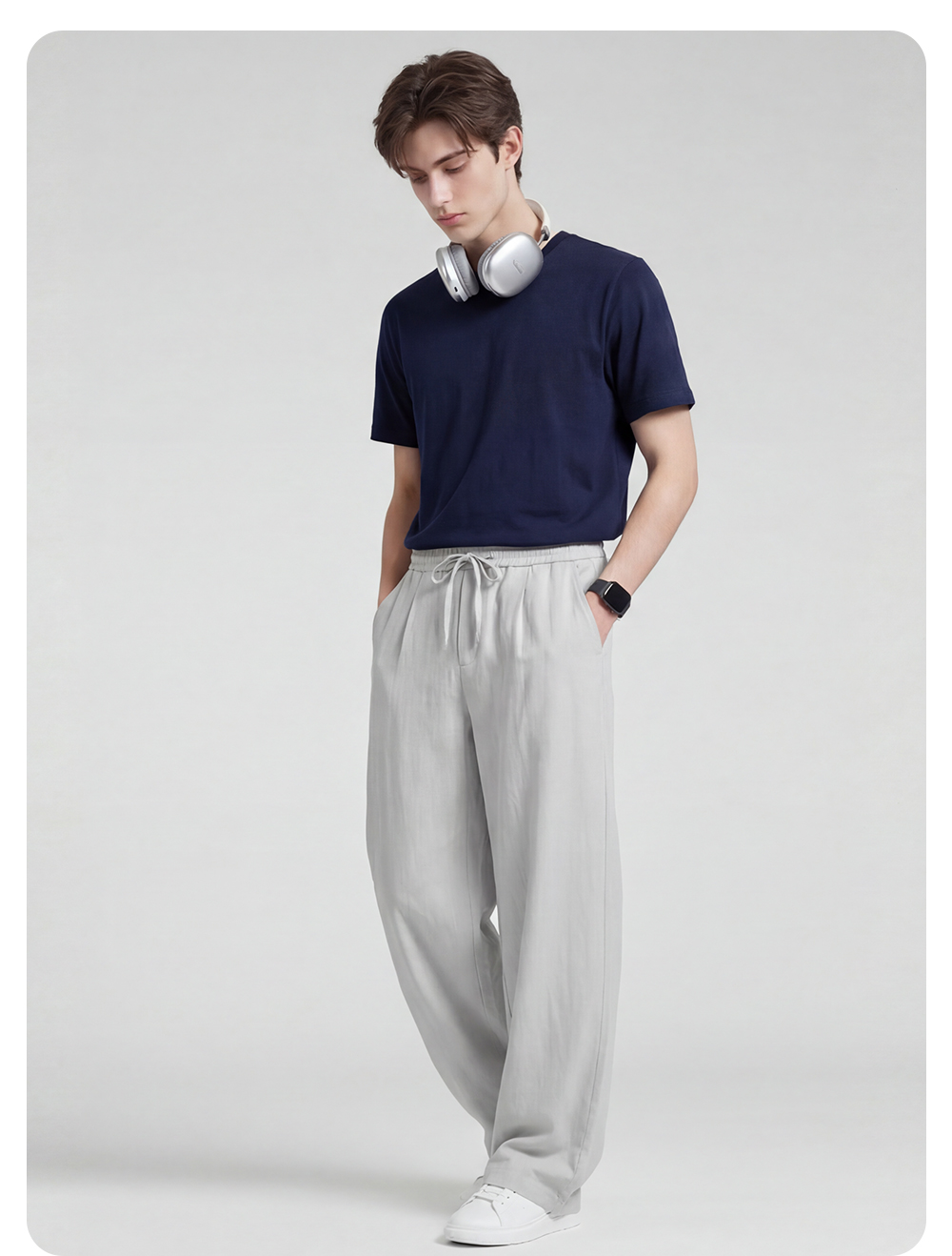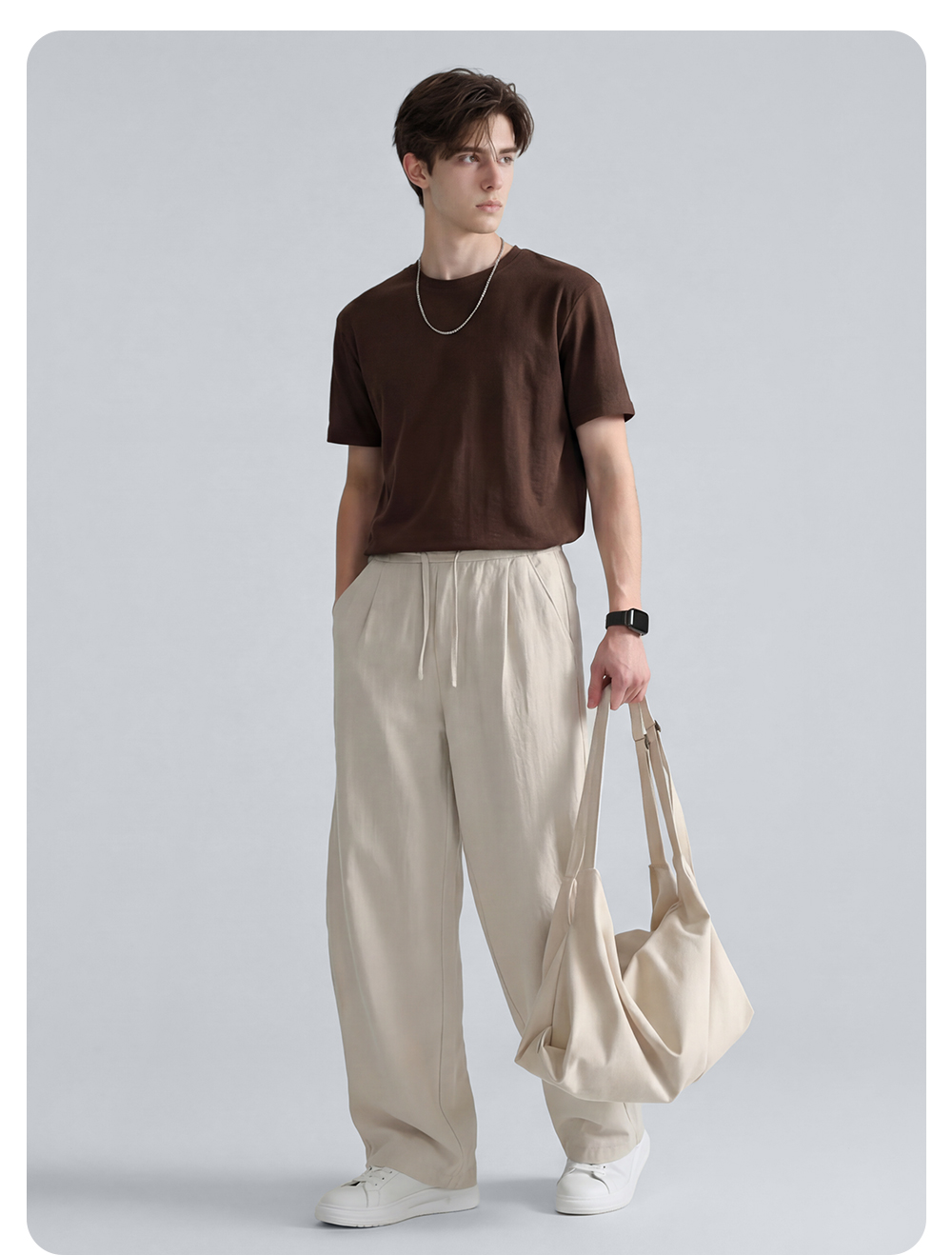 【含莱赛尔&含亚麻】圣得西裤子休闲裤男26年春季宽松慵懒弯刀裤