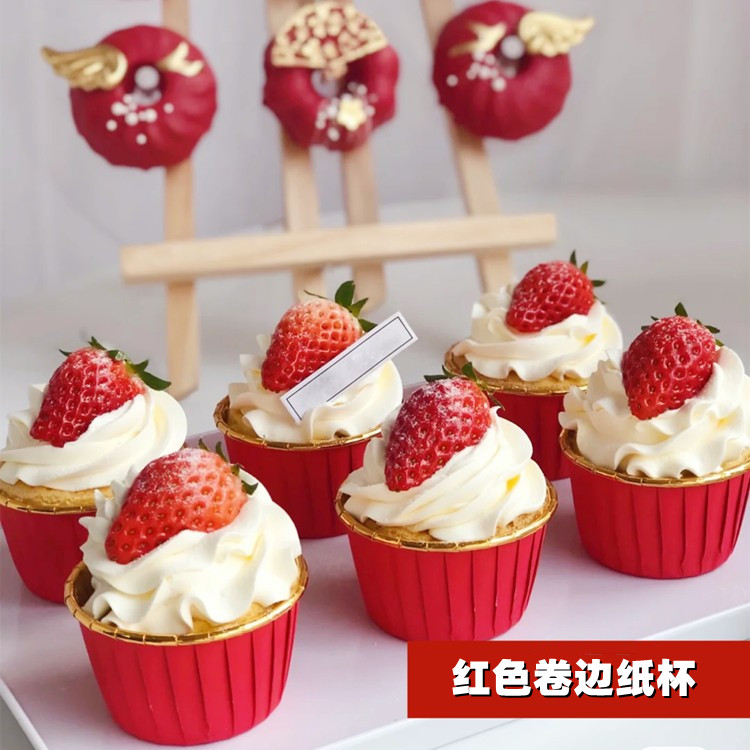 红色金卷边纸杯 马芬蛋糕纸杯 喜庆婚礼春节大红色纸杯 蛋糕纸杯