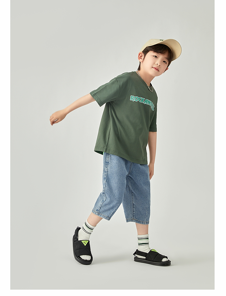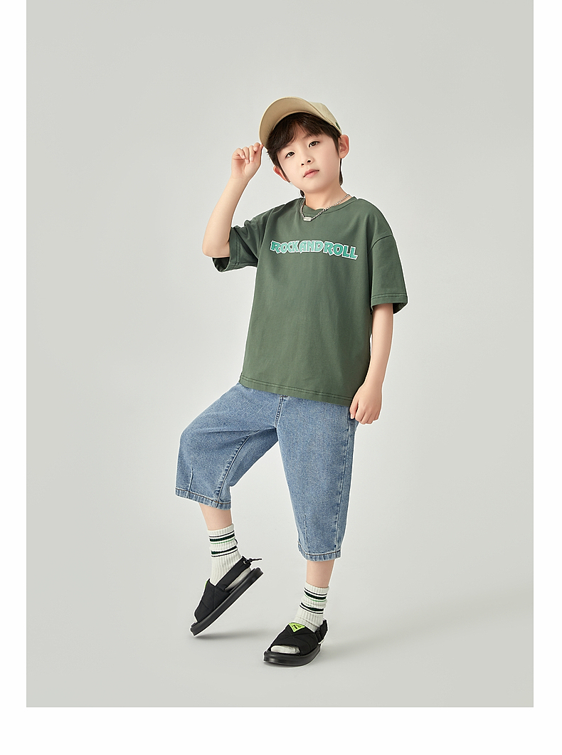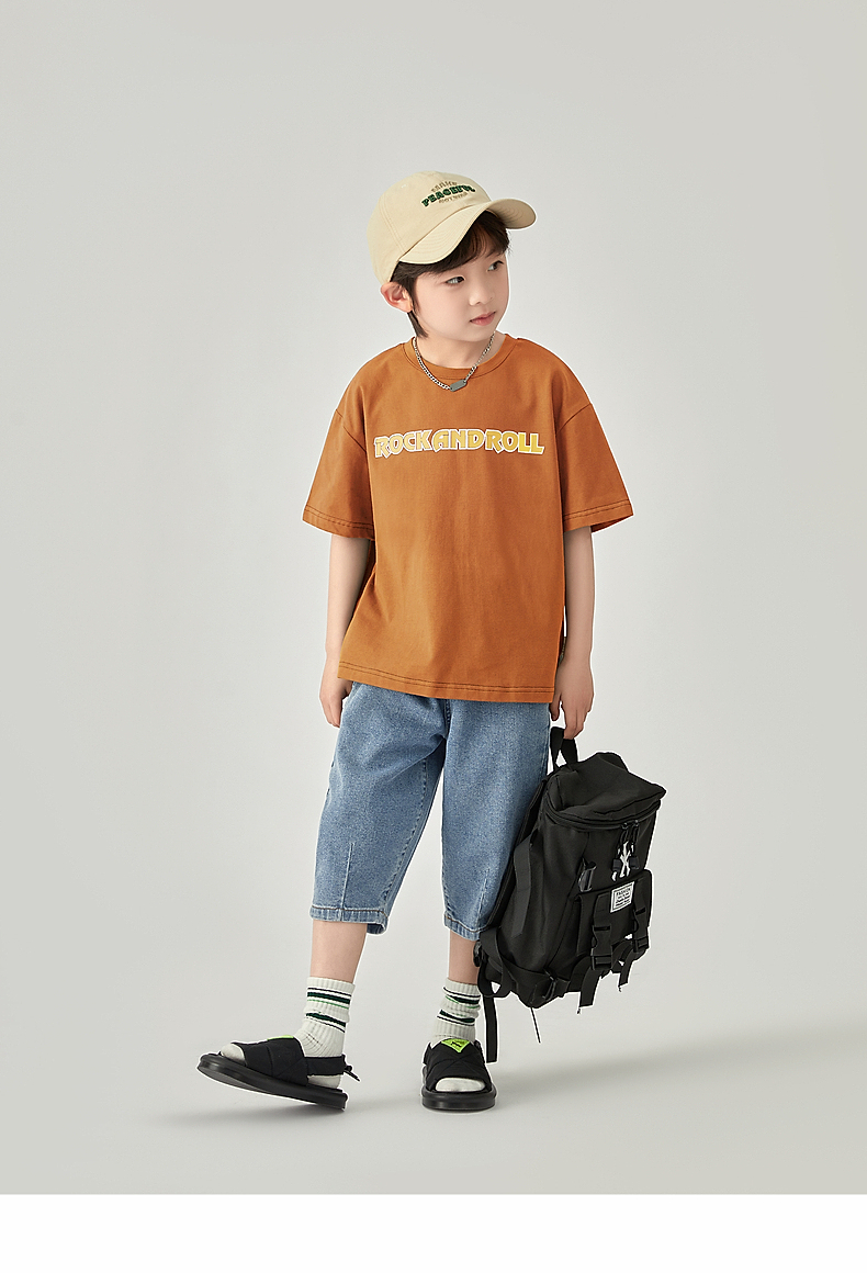 【团购19.9元】多多家 男童短袖T恤2024夏装新款儿童中大童凉感印花半袖上衣洋气9345