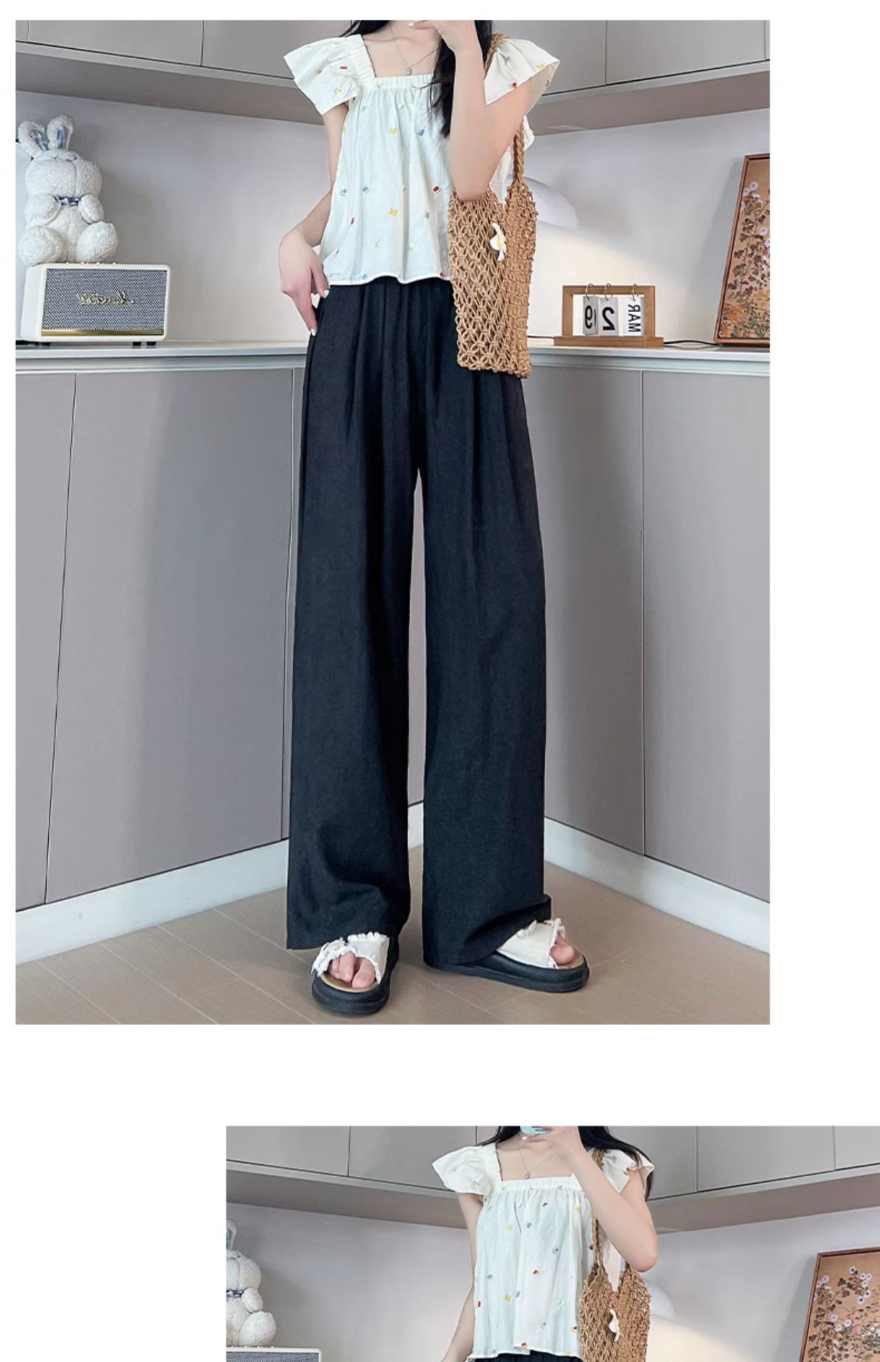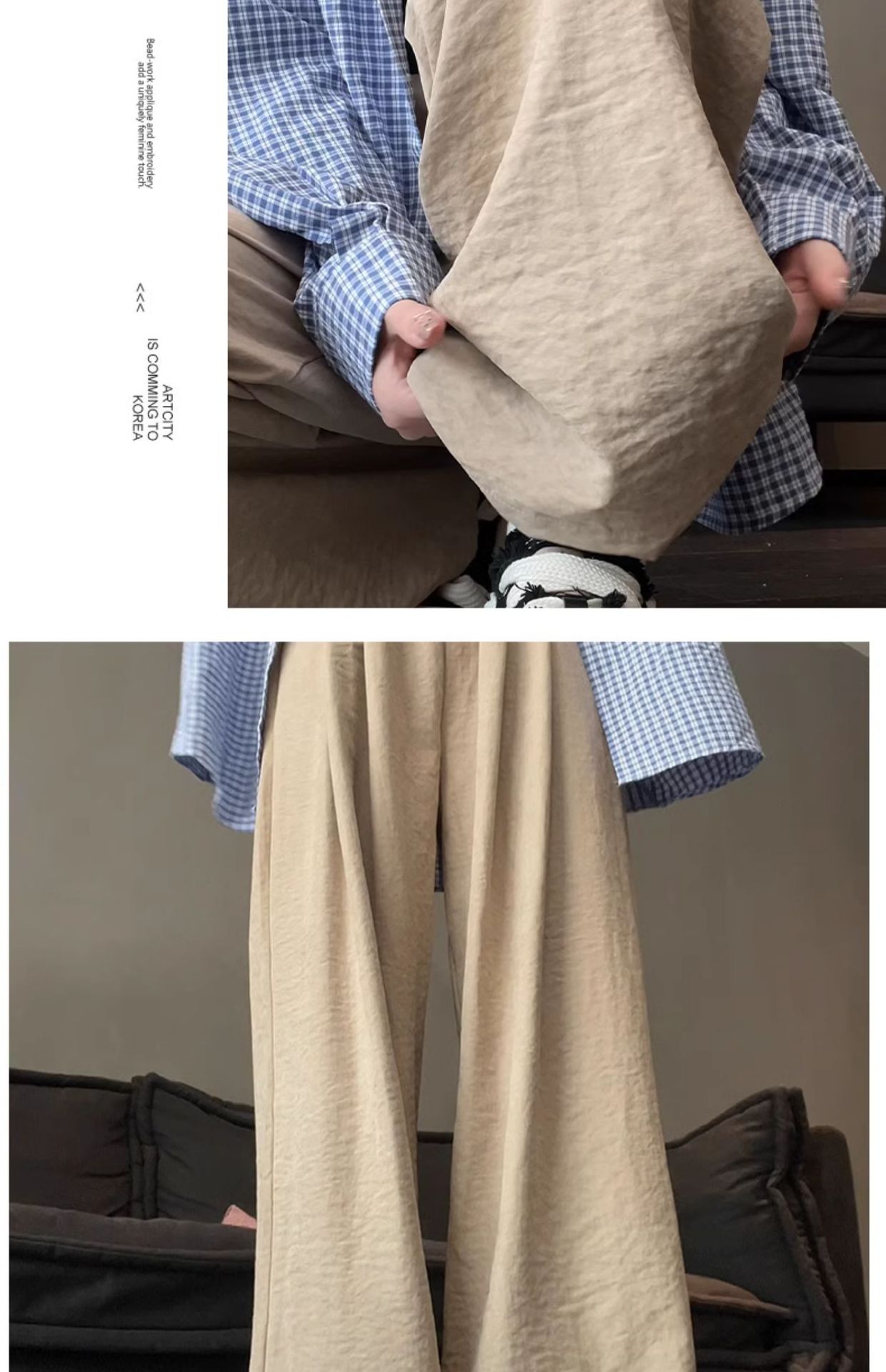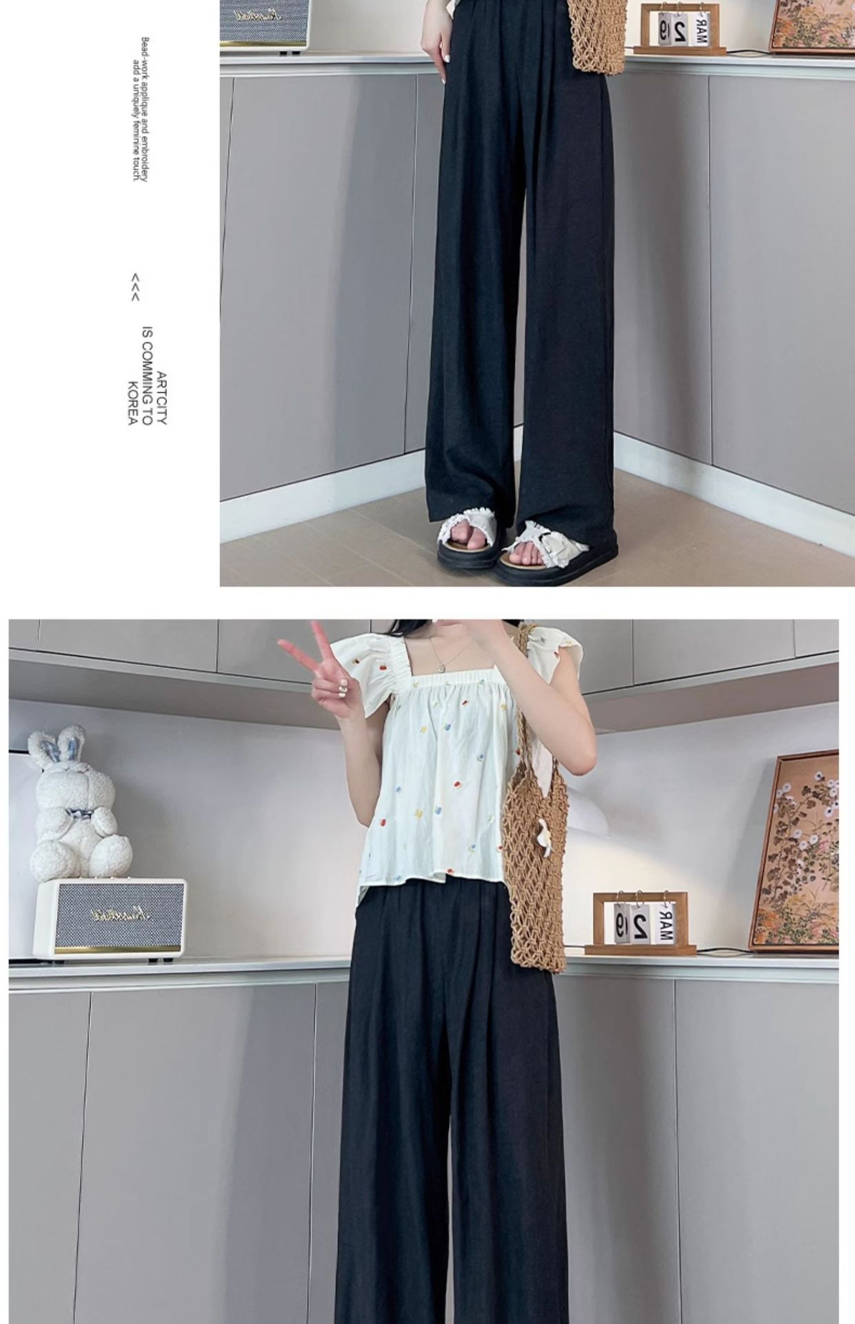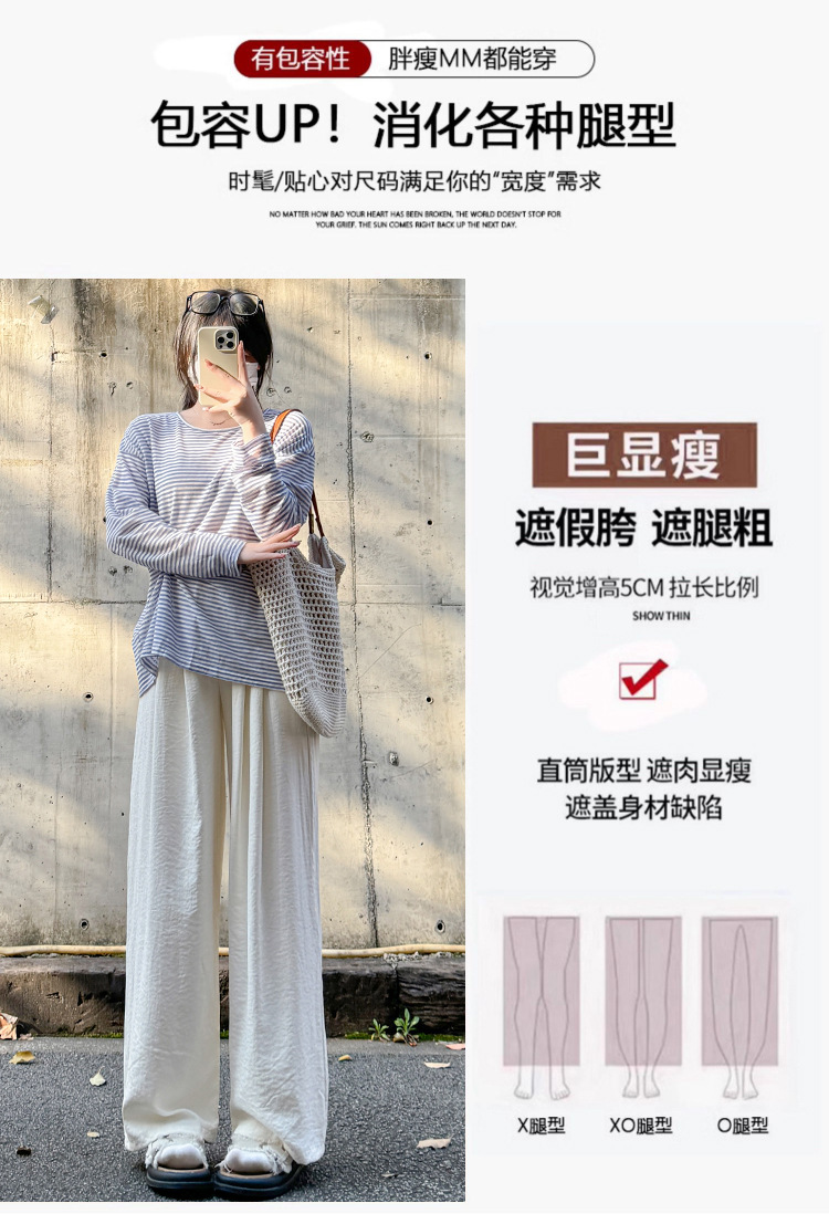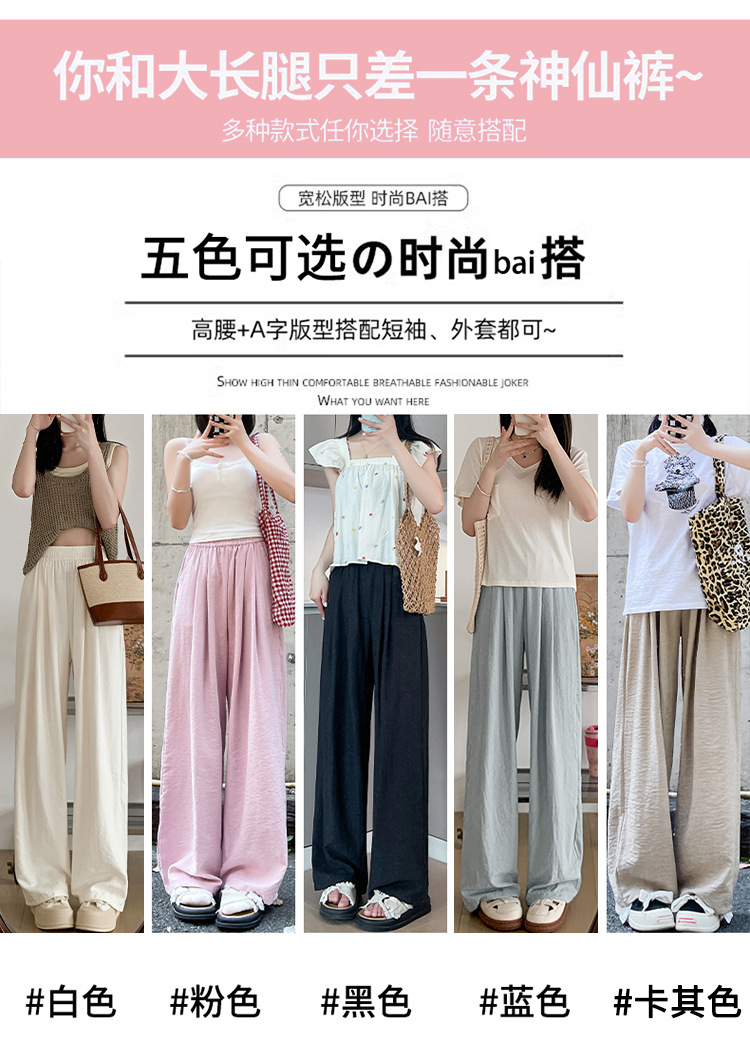 「五色可选!冰丝奶芙山本裤」女夏季薄2024新款休闲小个子肌理感慵懒白色阔腿裤