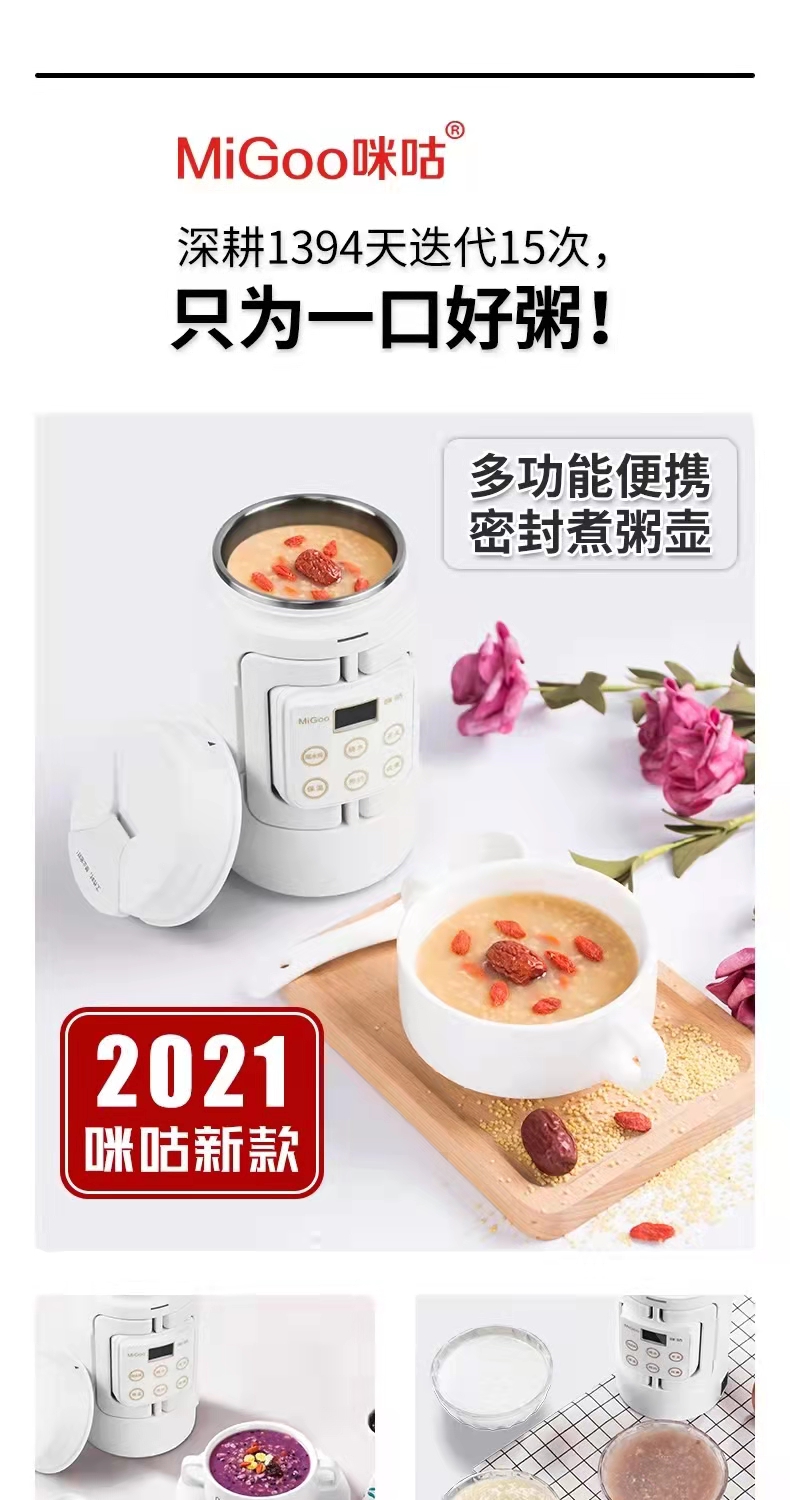 migoo咪咕便携式煮粥多功能保温烧水杯(+隔水炖款)