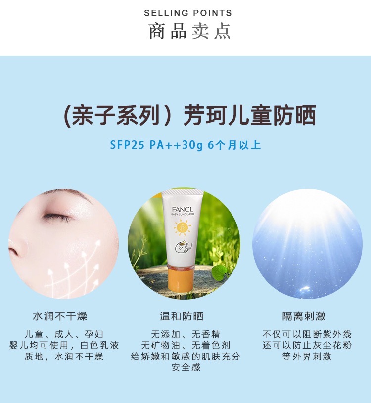 FANCL芳珂婴幼儿防晒乳 宝宝儿童物理防晒霜SPF25+ 30ml