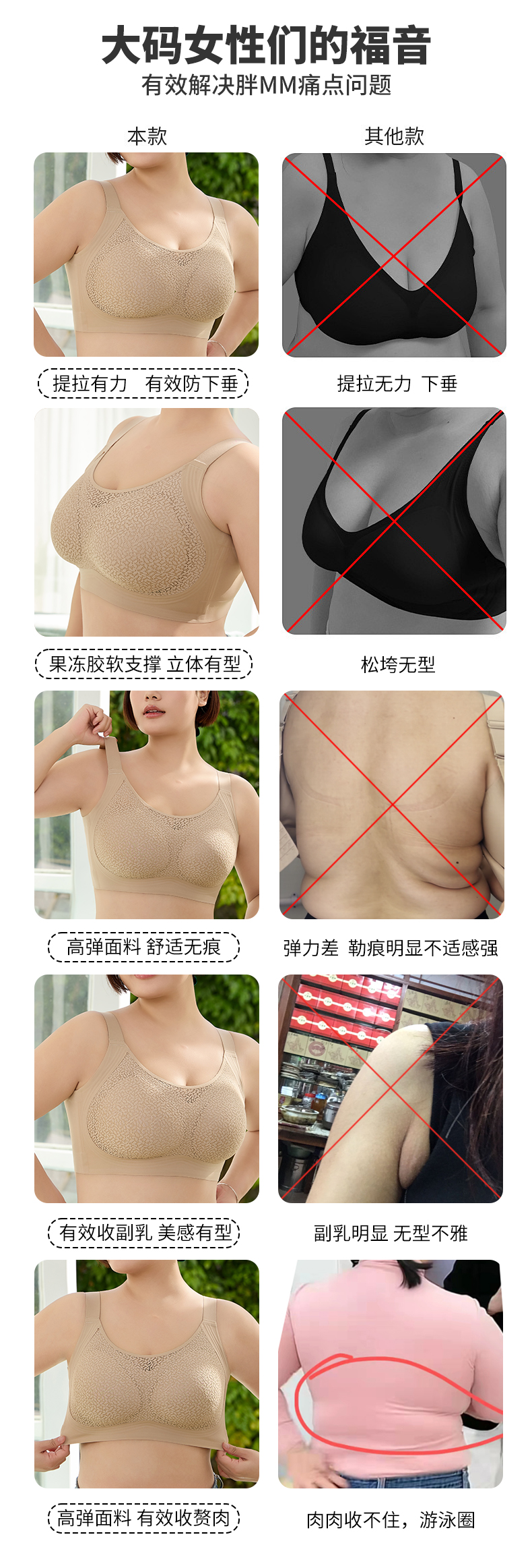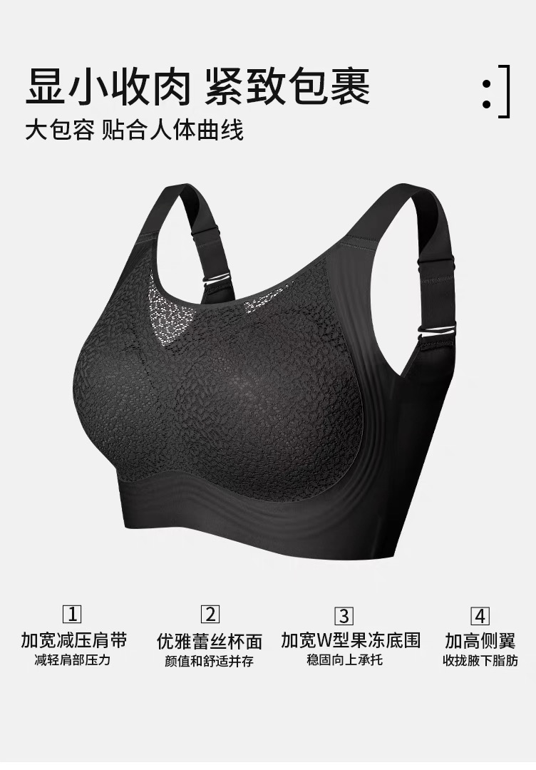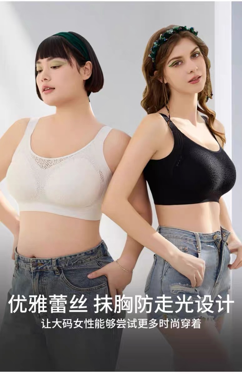 【大码】三重提拉蕾丝防走光抹胸内衣文胸(卡码请拍小一码, 按身高+体重选尺码,小胸平胸不拍会空杯) #W2411