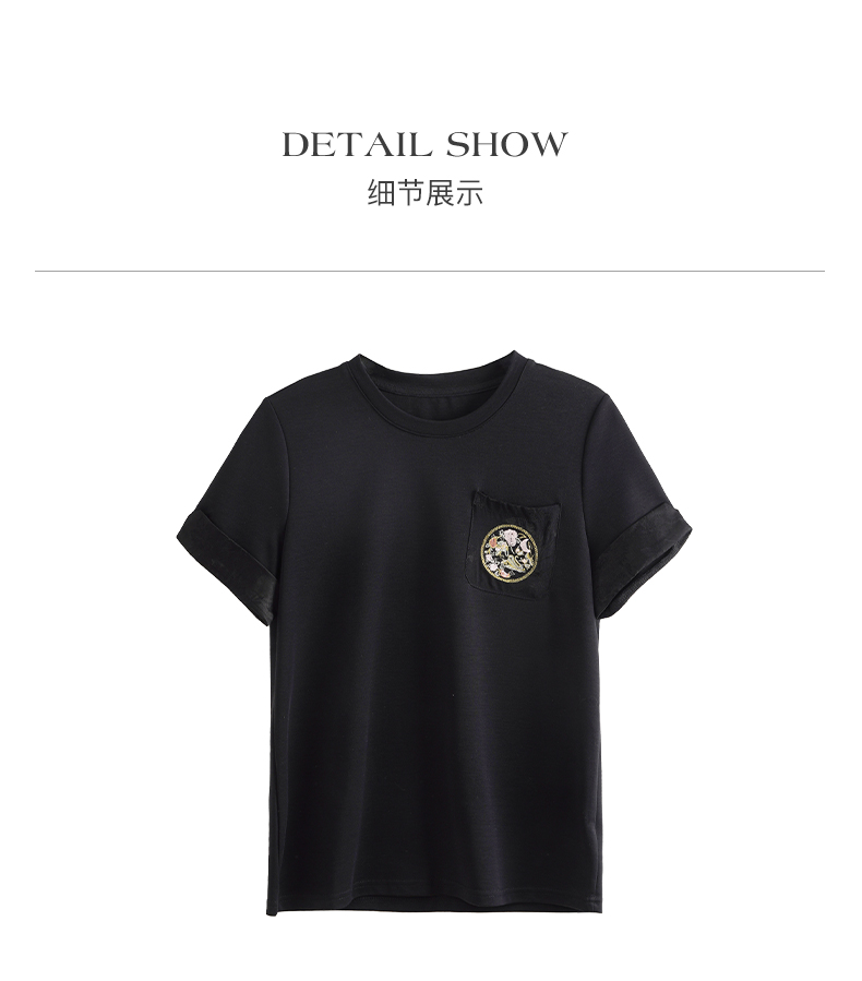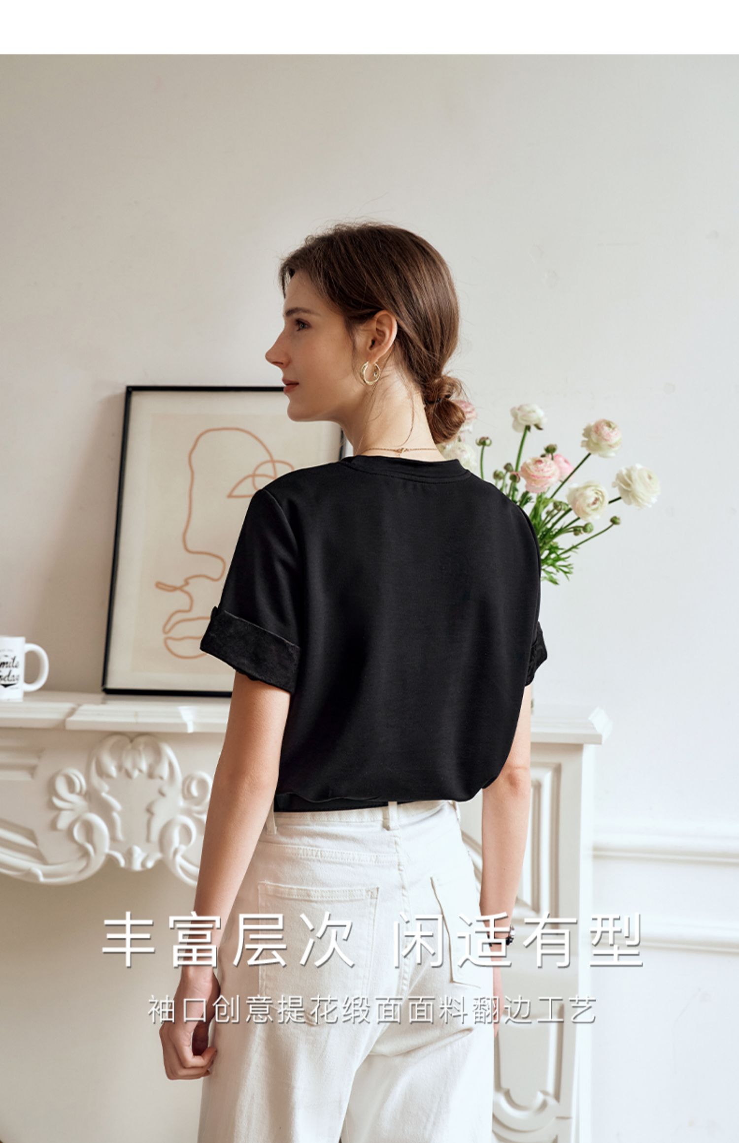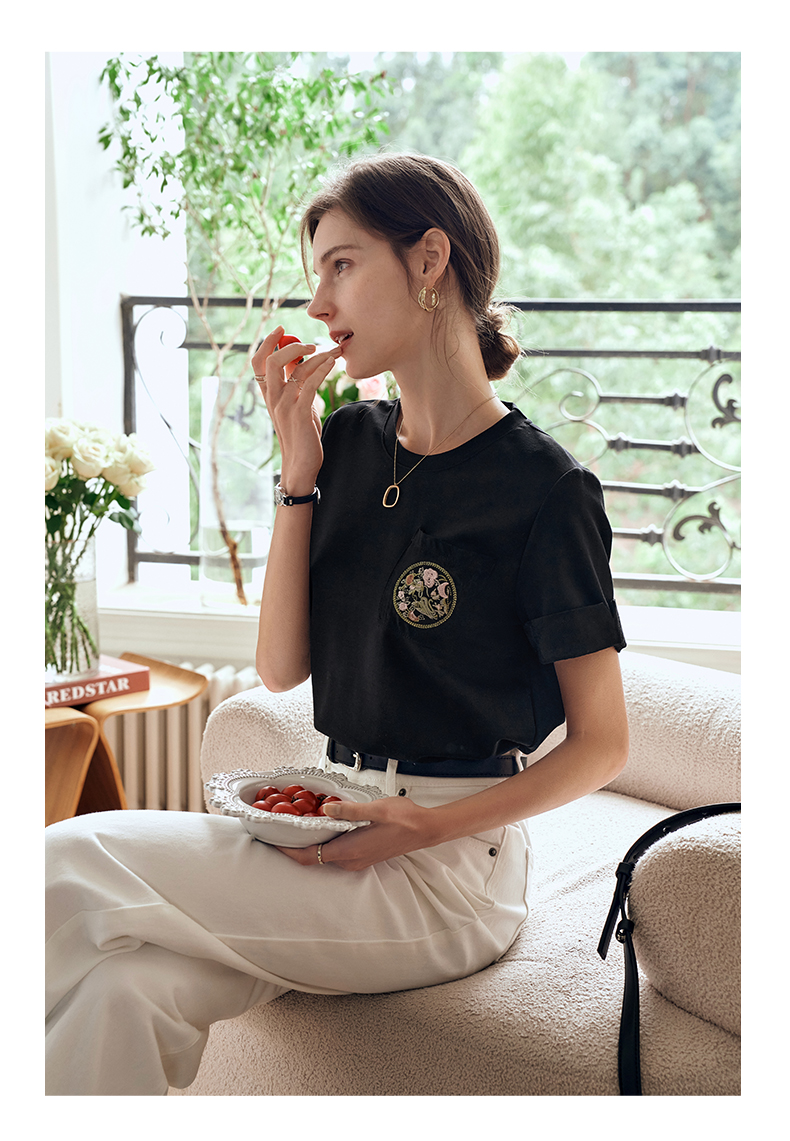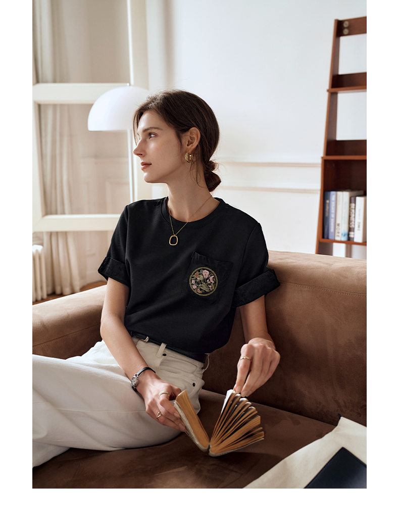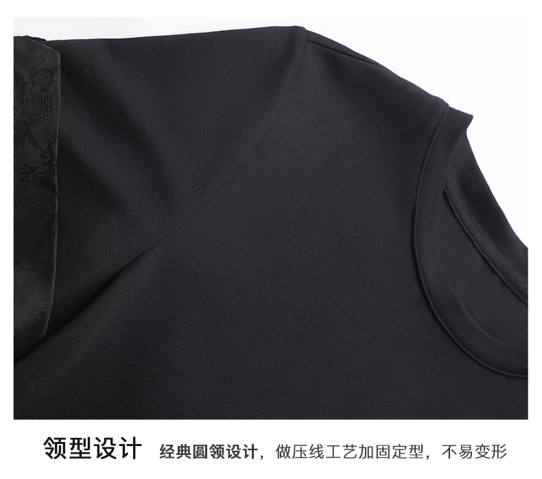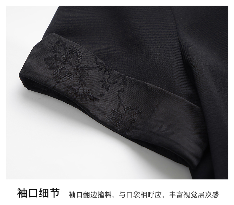 OLrain欧芮儿新中式黑色T恤女夏季2024年新款宽松刺绣短袖上衣