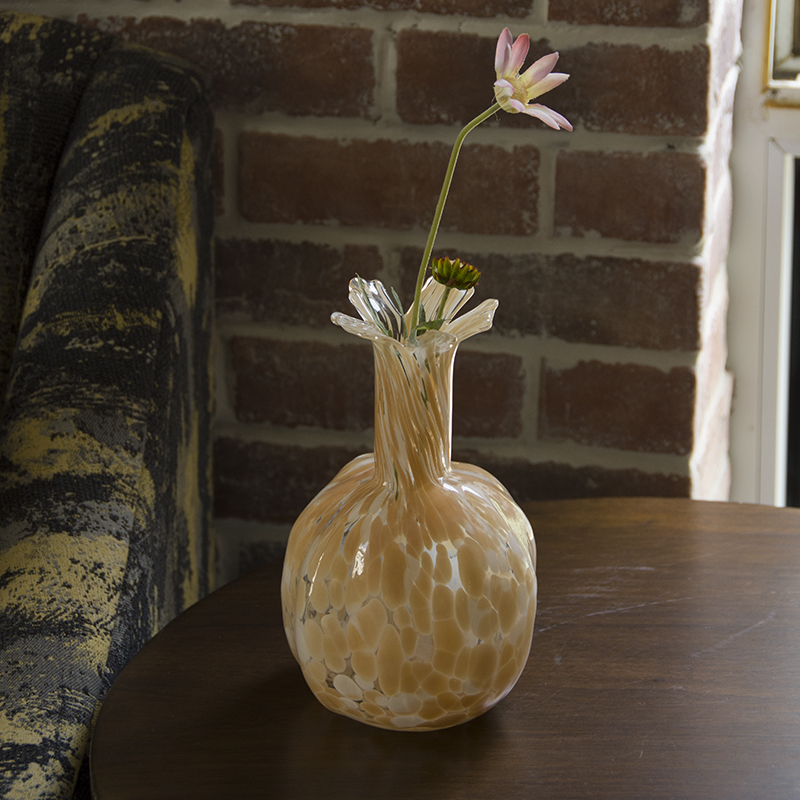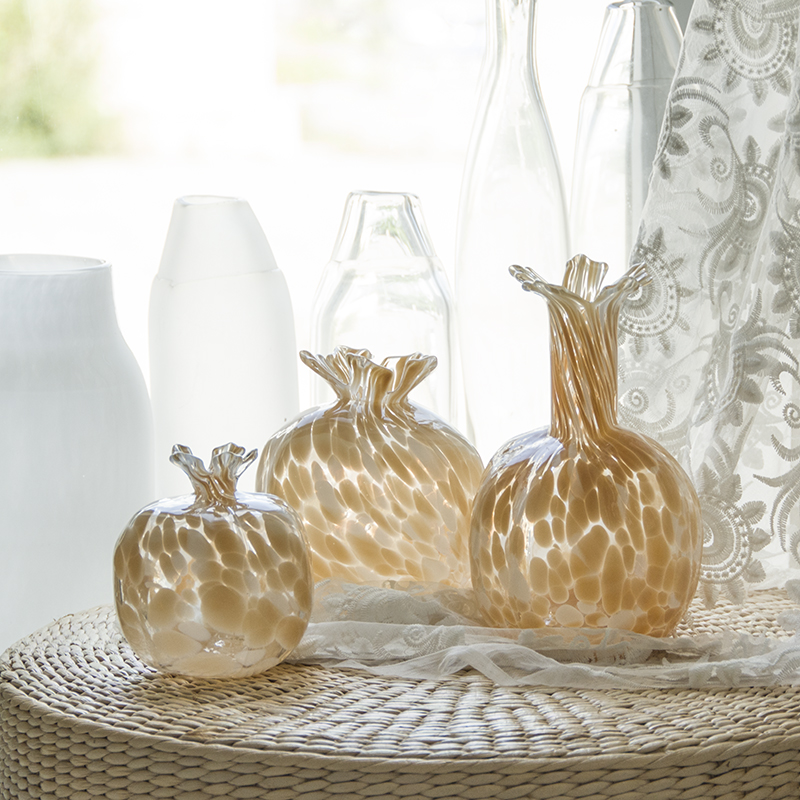 奶油花点石榴玻璃花瓶小口花器摆件工艺品