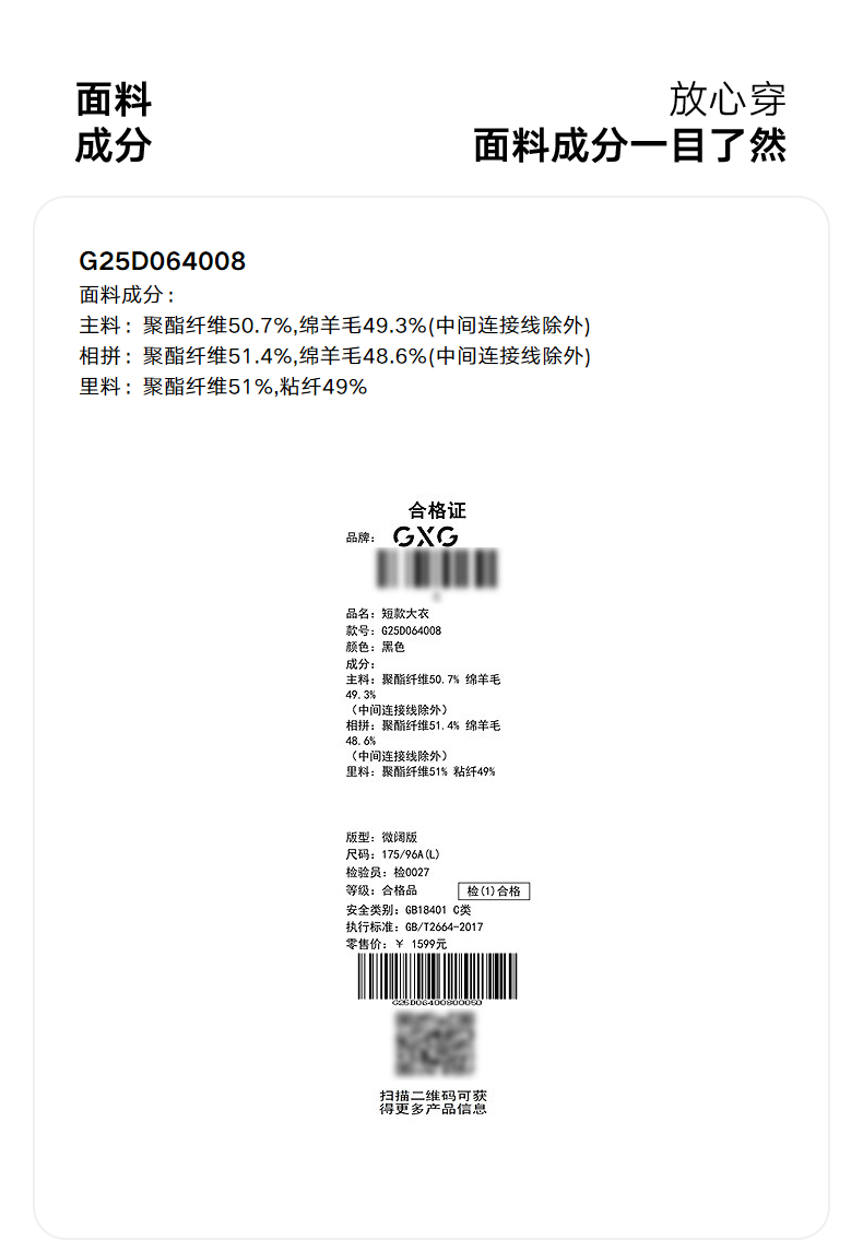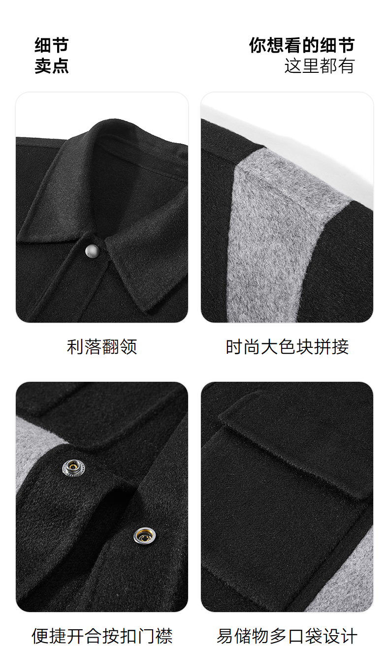 GXG男装 经典羊毛撞色格纹拼接短大衣夹克外套 25年冬季热卖