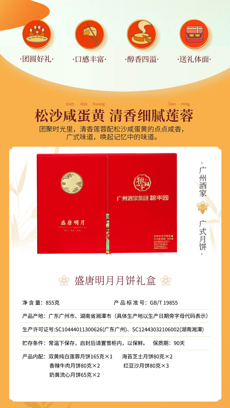 2025年中秋【广州酒家】盛唐明月855g 咸甜辣兼具 多种口味可选
