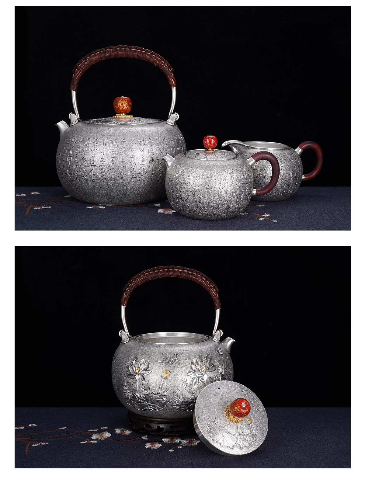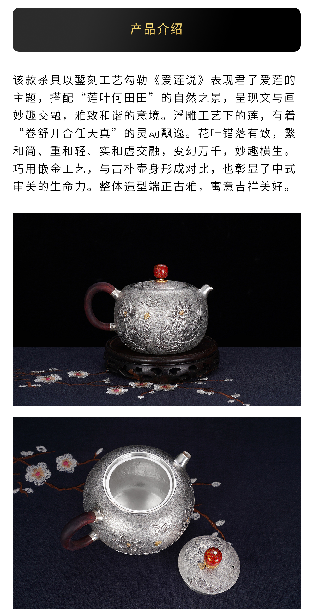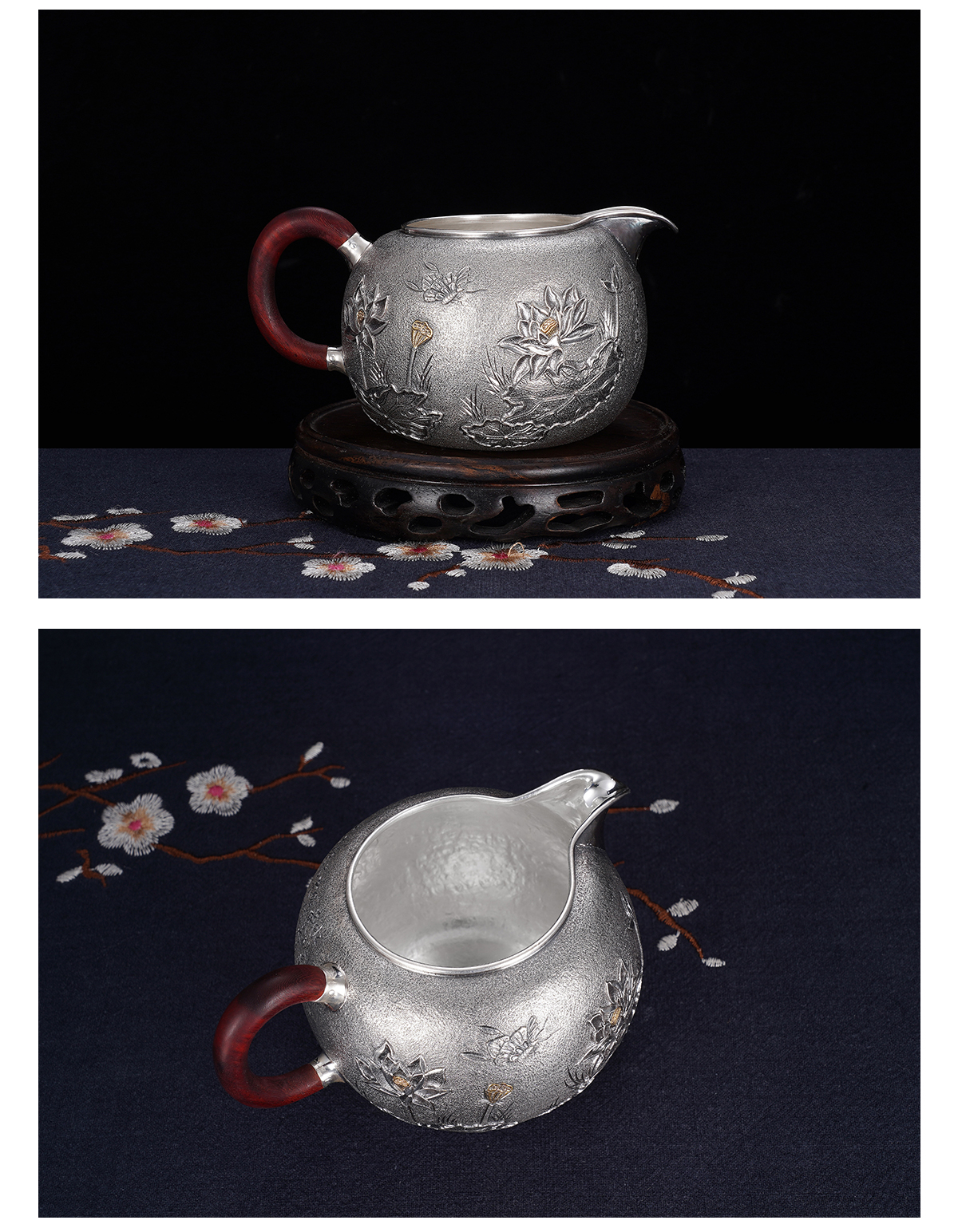 子佩集S990银【君子爱莲】提梁壶小茶壶公道杯摆件茶具套装【HY001】【HY002】【HY003】原创作品2311