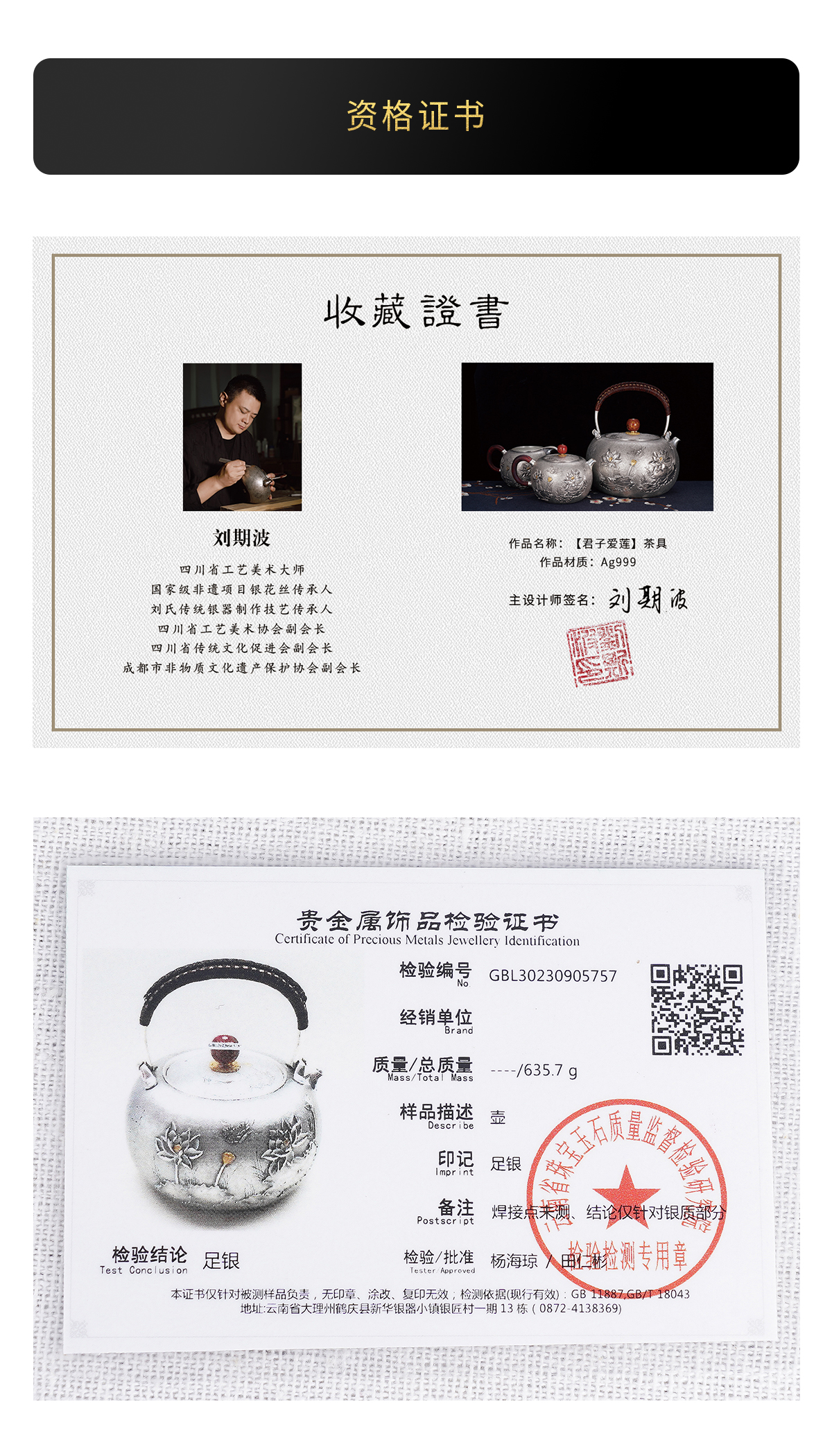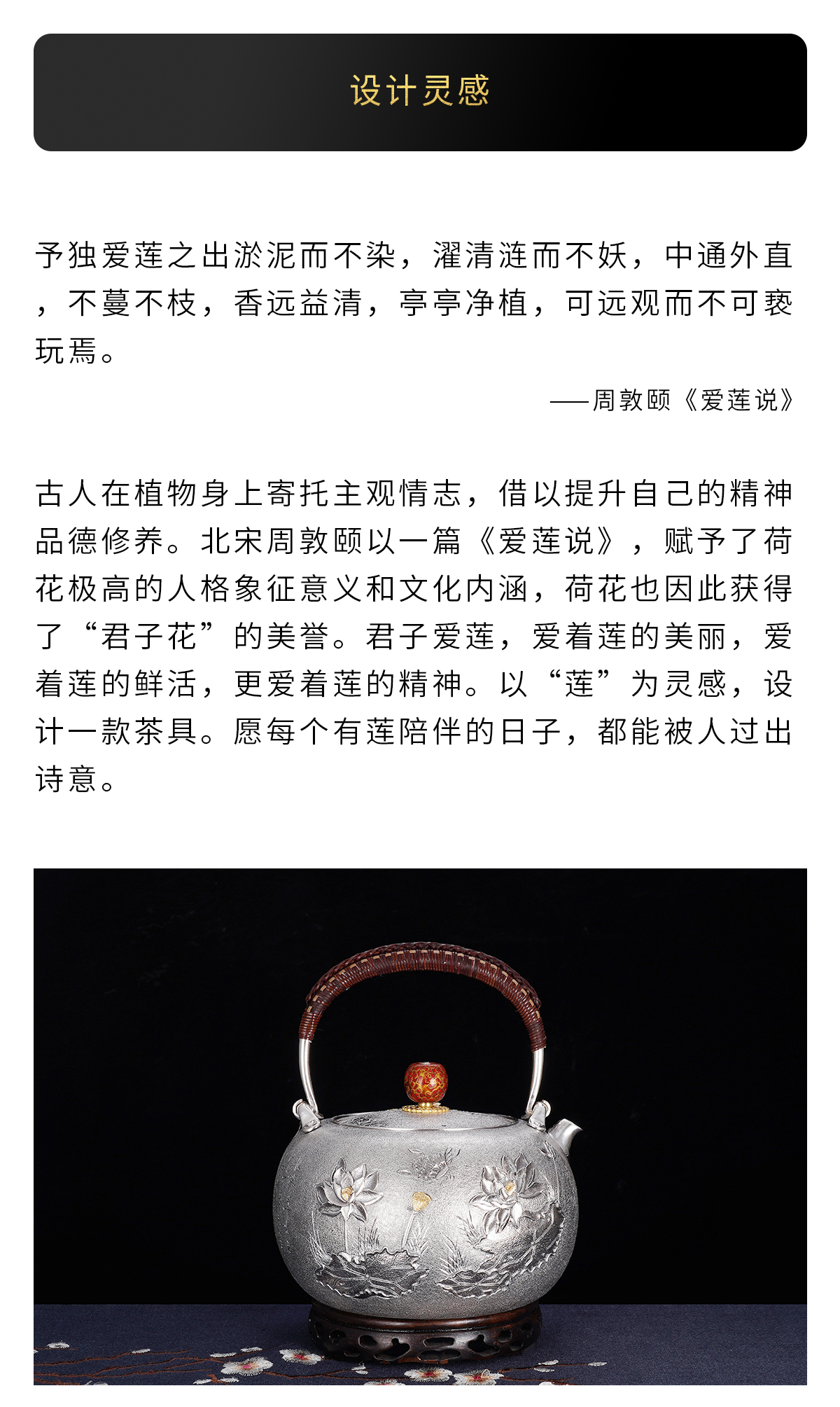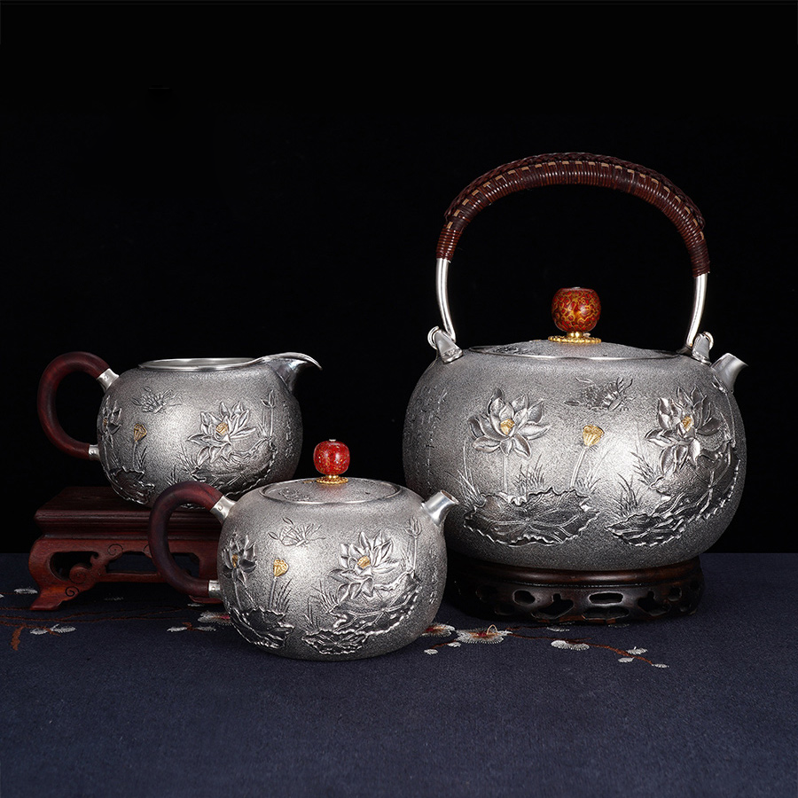 子佩集S990银【君子爱莲】提梁壶小茶壶公道杯摆件茶具套装【HY001】【HY002】【HY003】原创作品2311