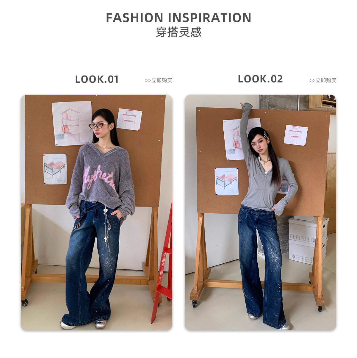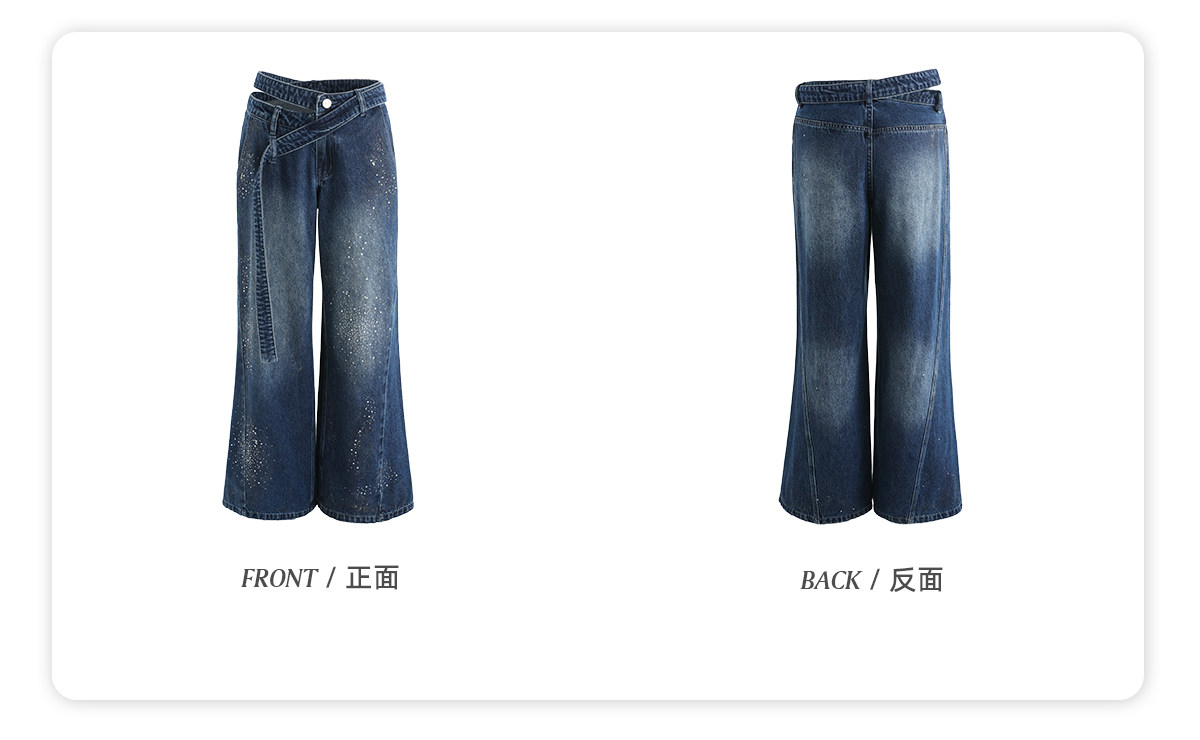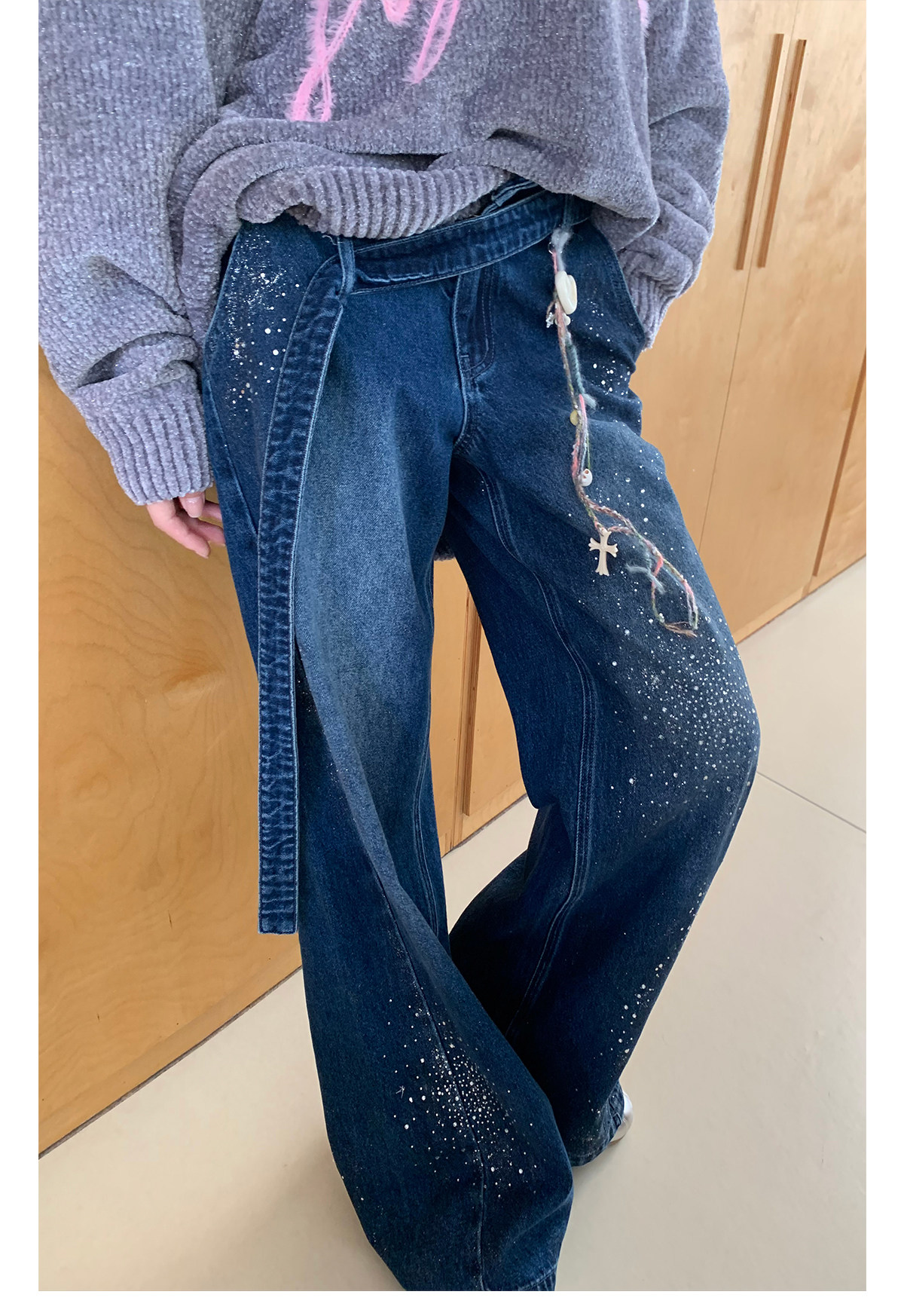 FTT FlyTheTruth『银河丹宁』 重工烫钻牛仔裤女秋季设计感阔腿裤